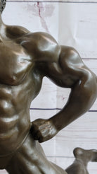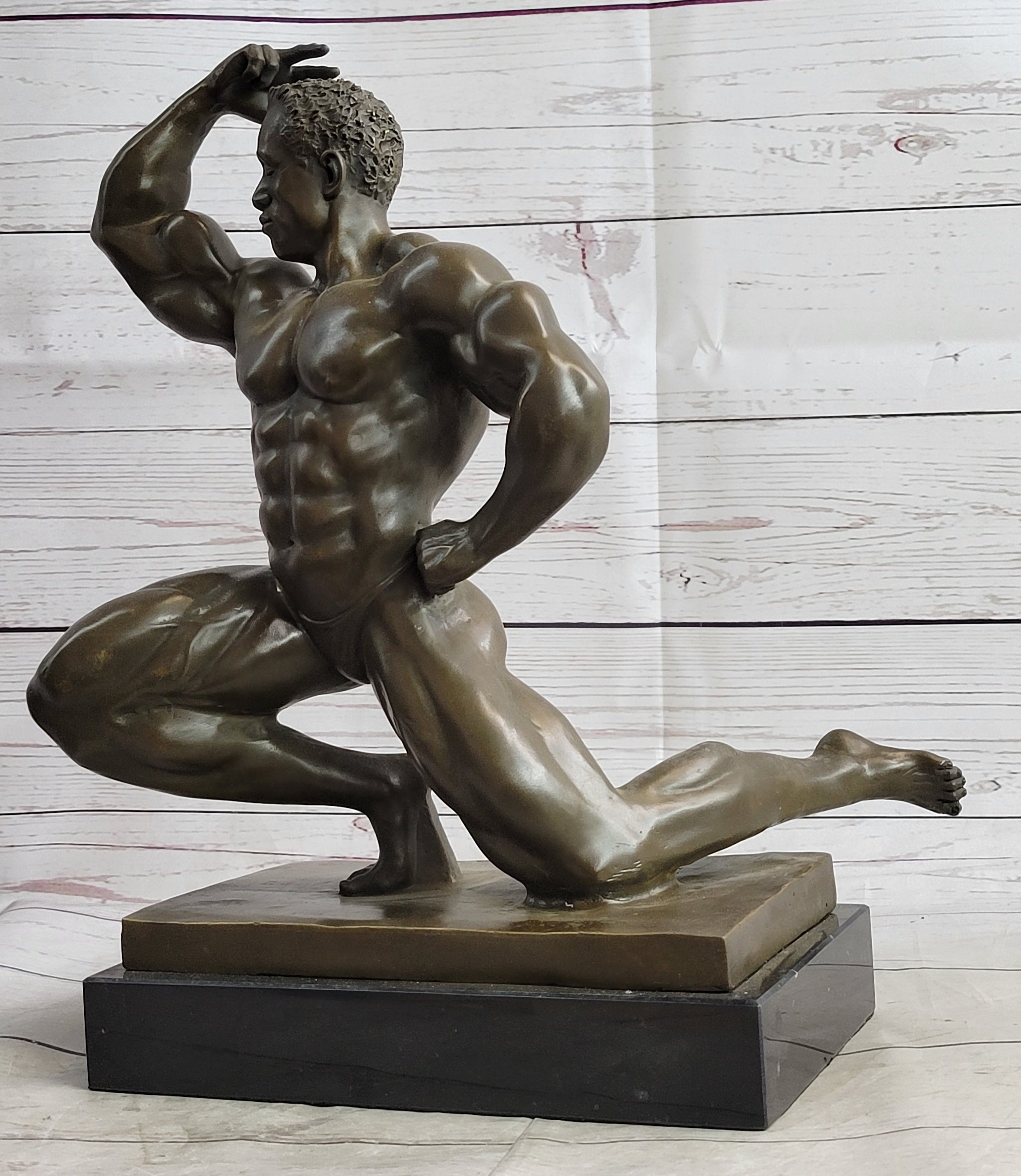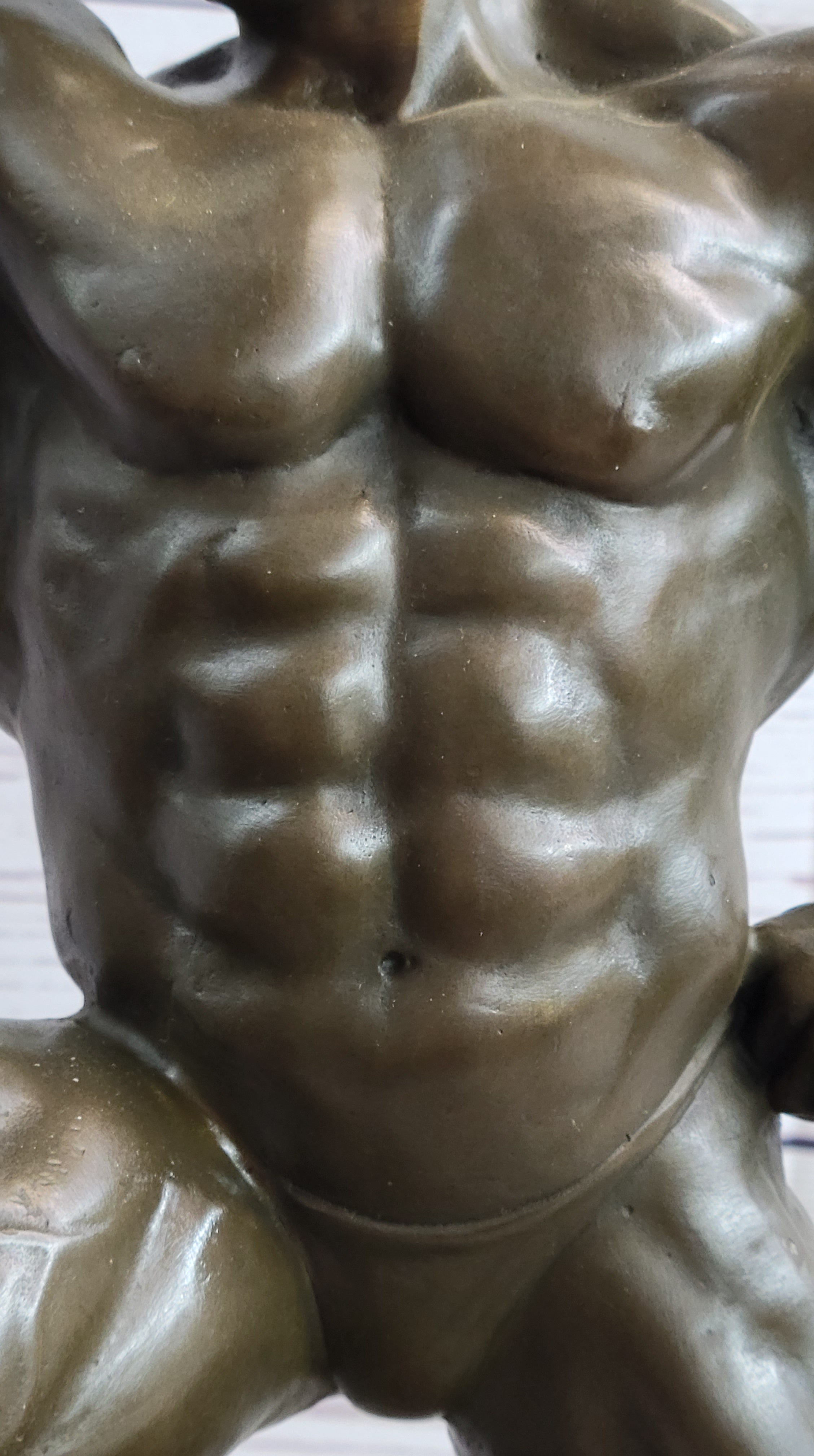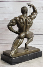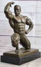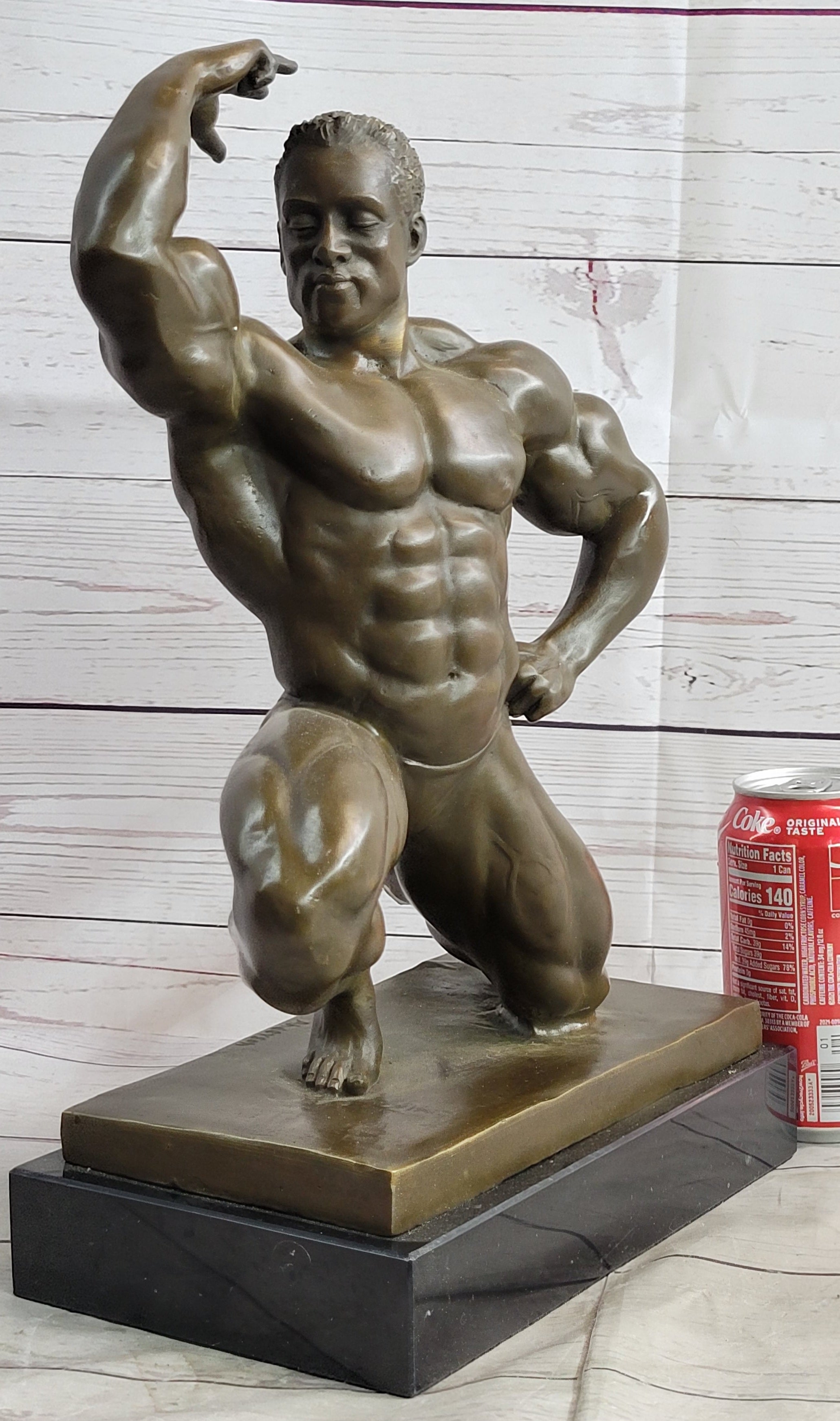 Iron Man Muscular Bodybuilder Posing Flexing Bronze Sculpture Statue Trophy Figure