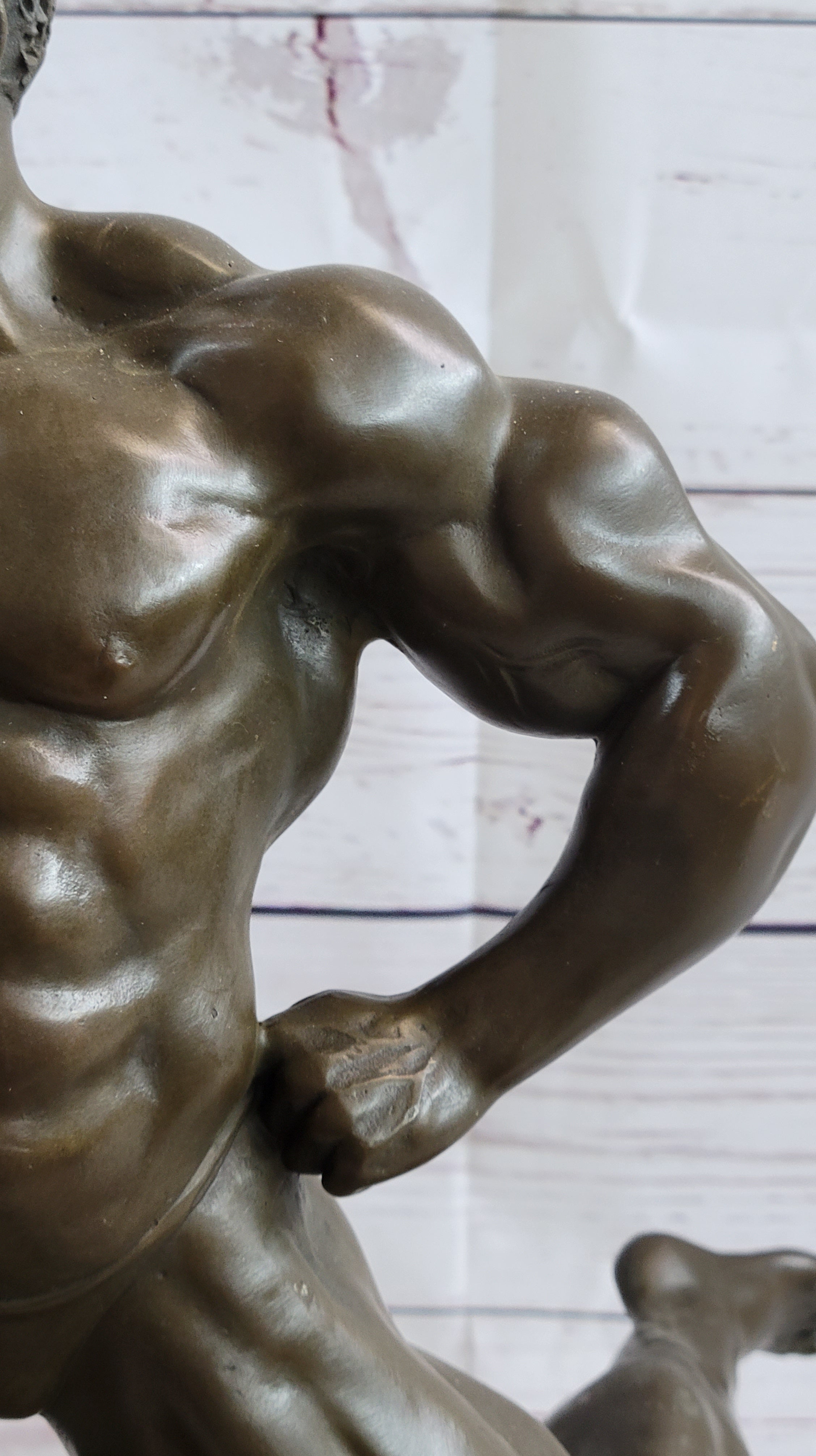 Beyond its artistic value, this bronze Iron Man statue serves as a powerful symbol of determination, commitment, and the rewards of hard work. Whether displayed in a gym, fitness studio, or the personal space of a fitness enthusiast, it stands as an inspiring reminder of what can be achieved through perseverance. Signed by the American artist Anderson, this sculpture is not only a unique work of art but also a collectible piece that resonates with those who appreciate the virtues of physical excellence and dedication.Bronze Dimensions with Marble Base: Height 14" X Width 14.5"