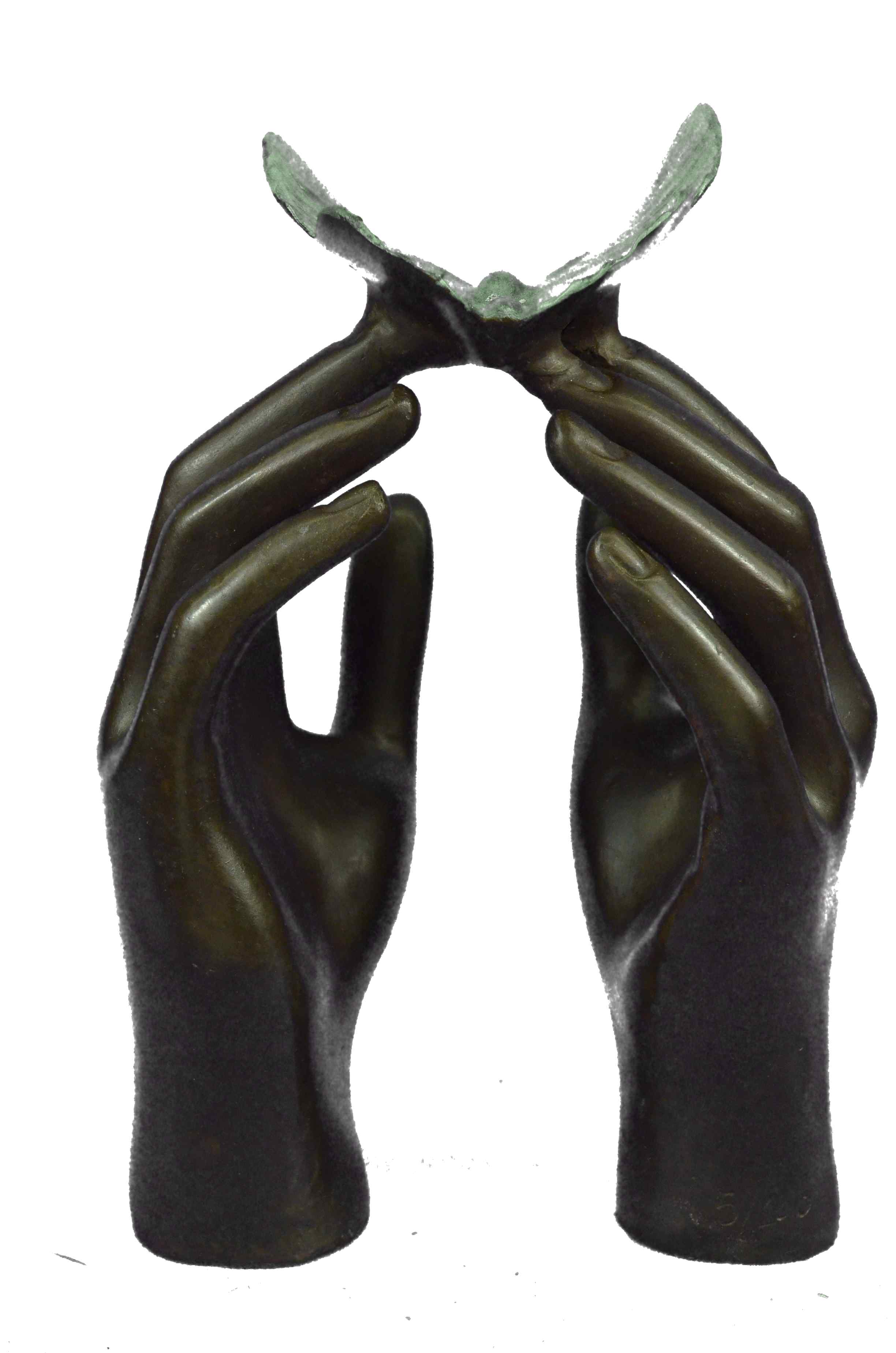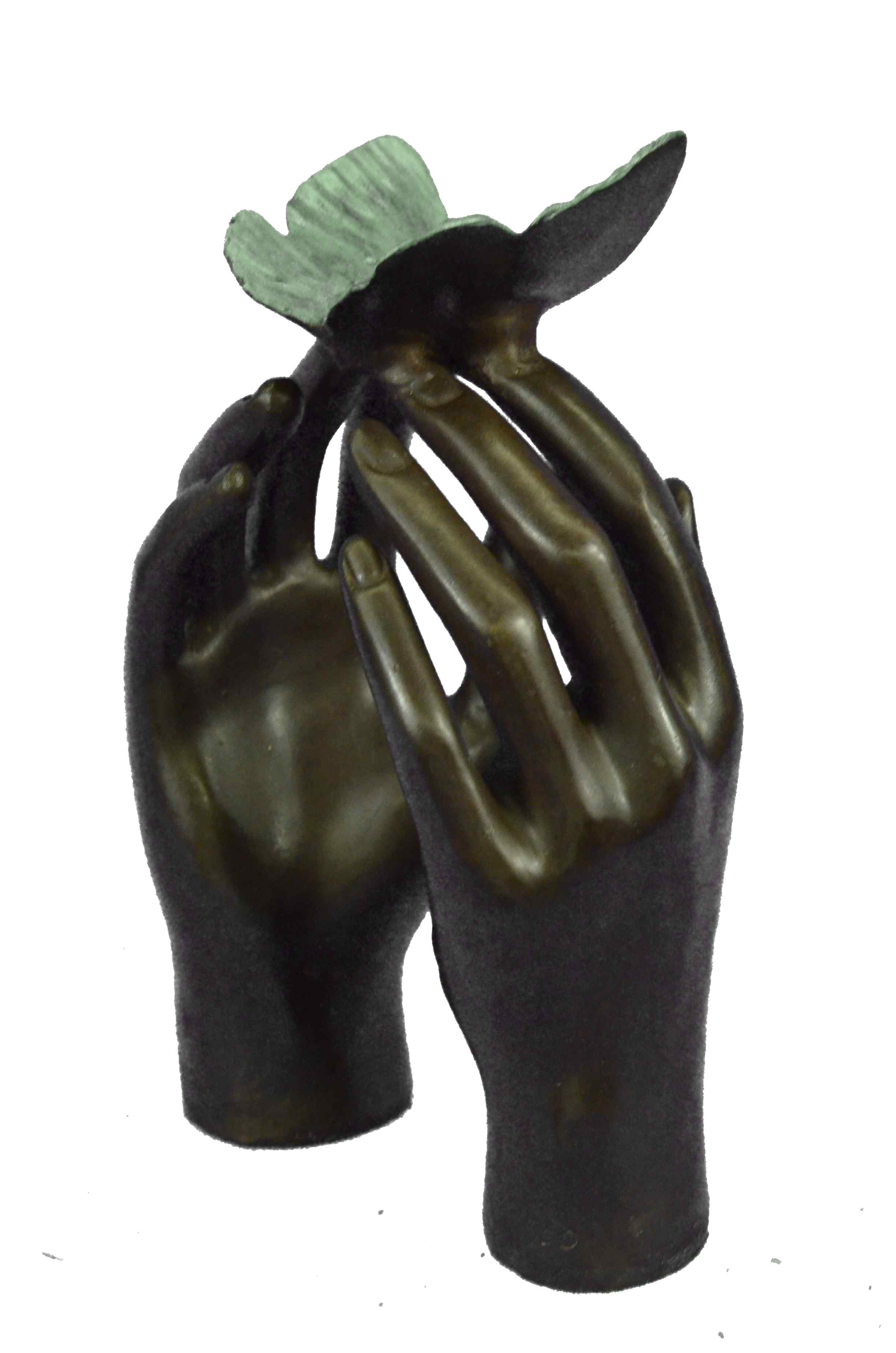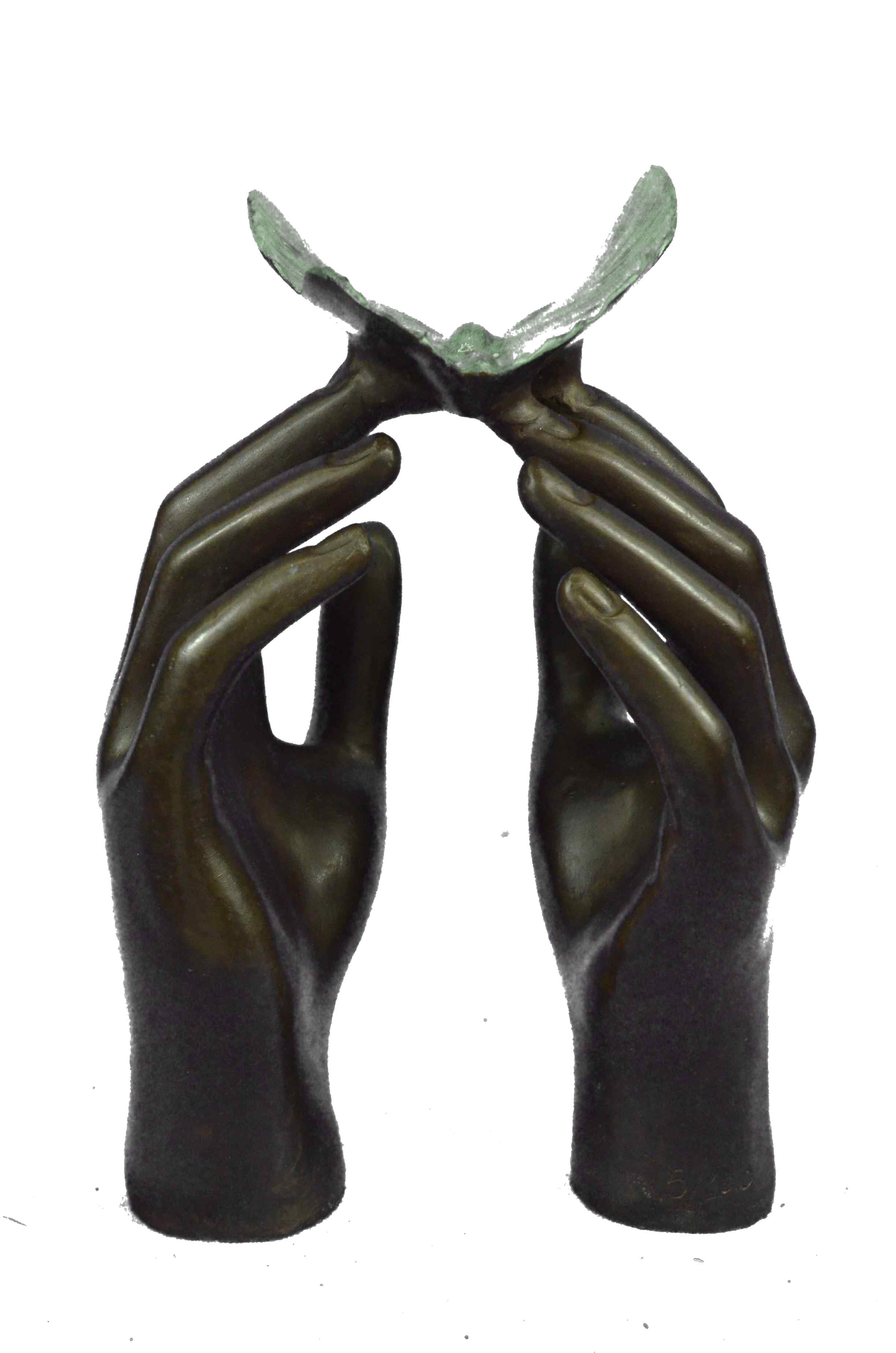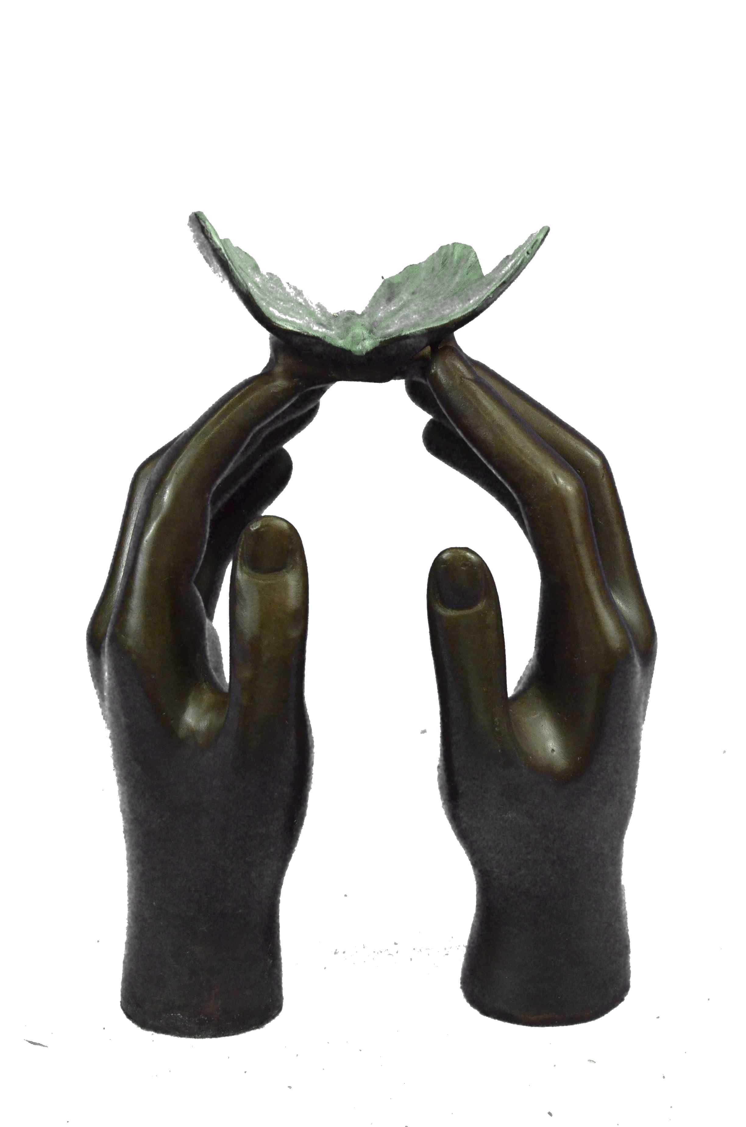 Limited Edition Numbered Milo Two Hands and a Blue Butterfly Bronze Sculpture St