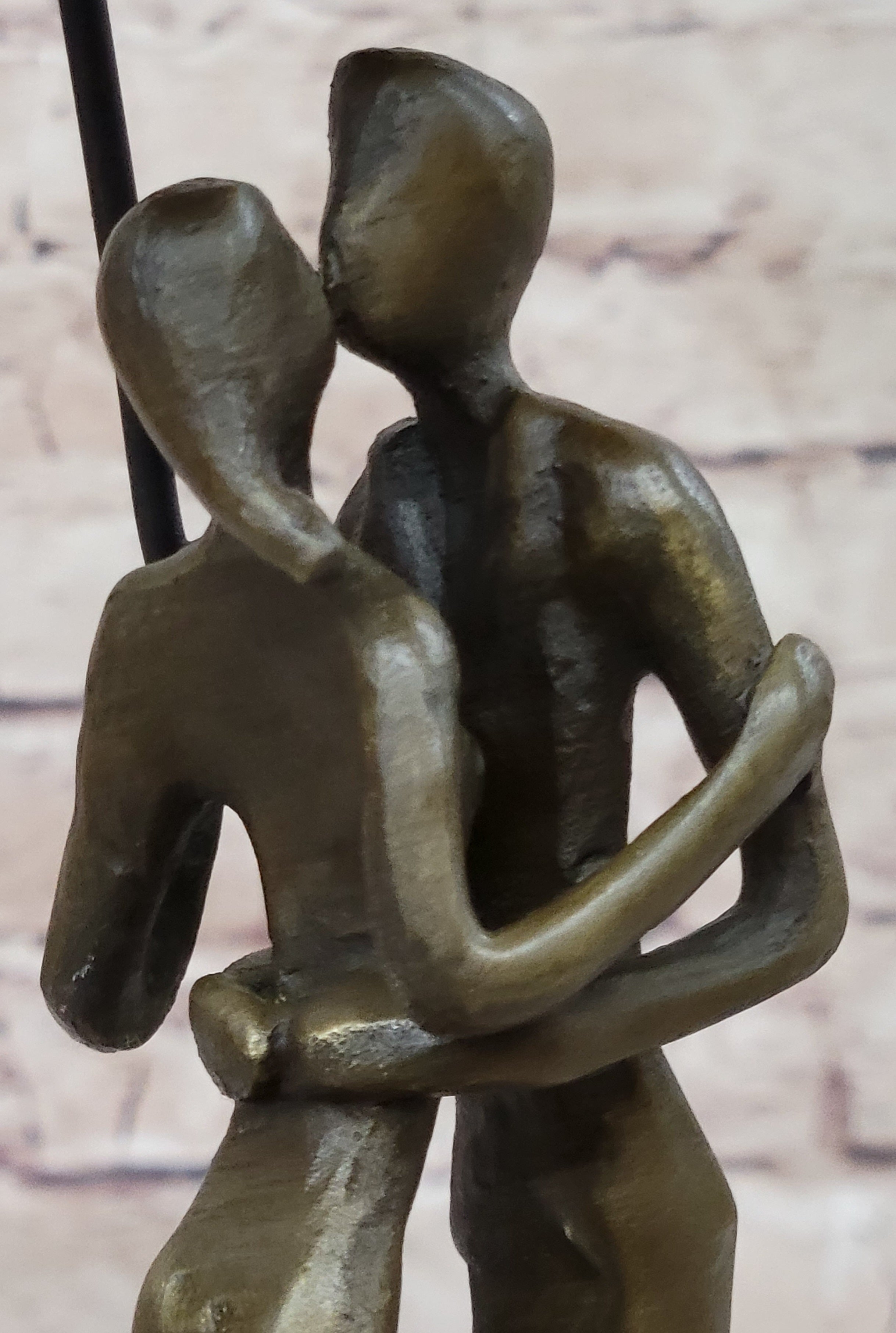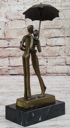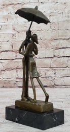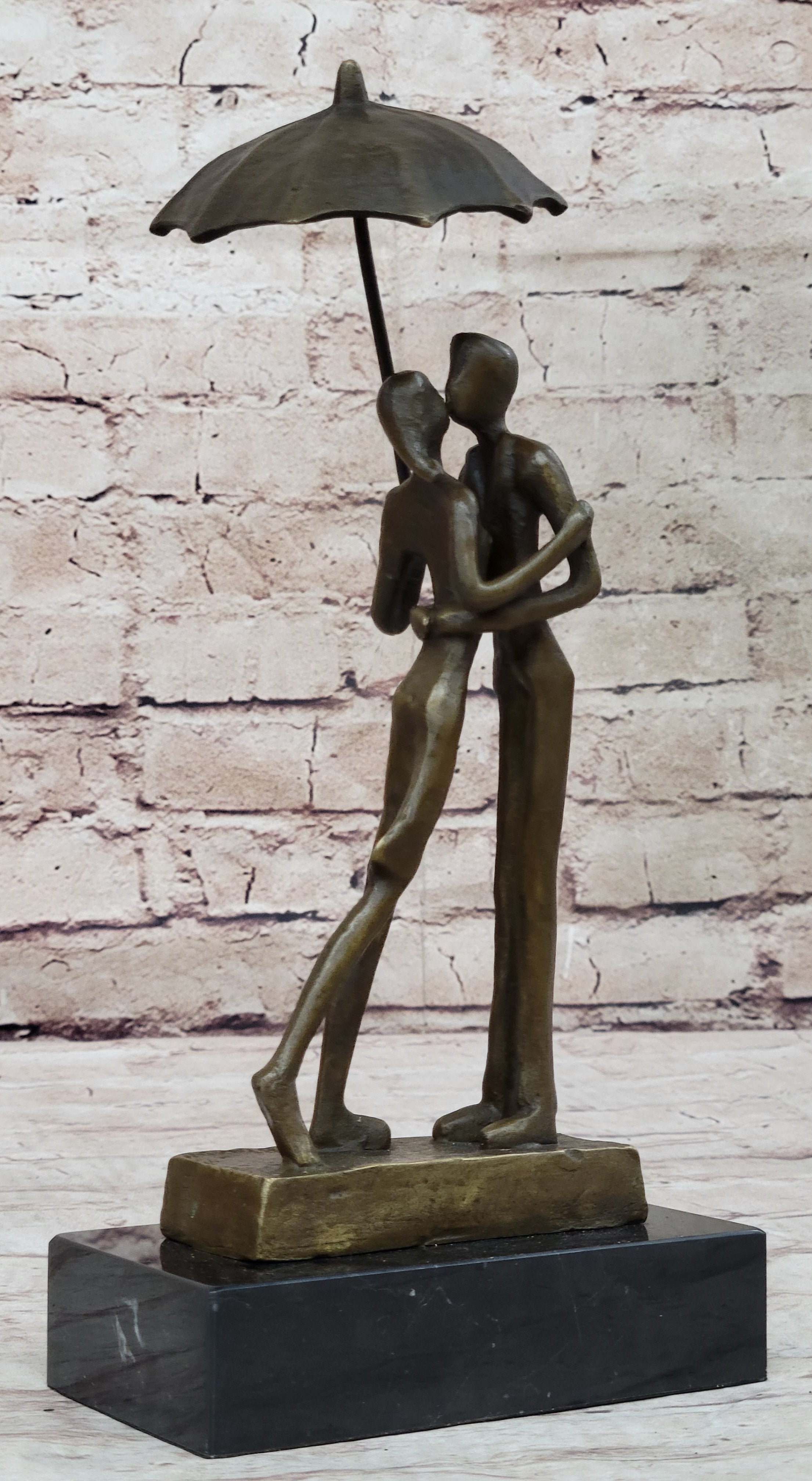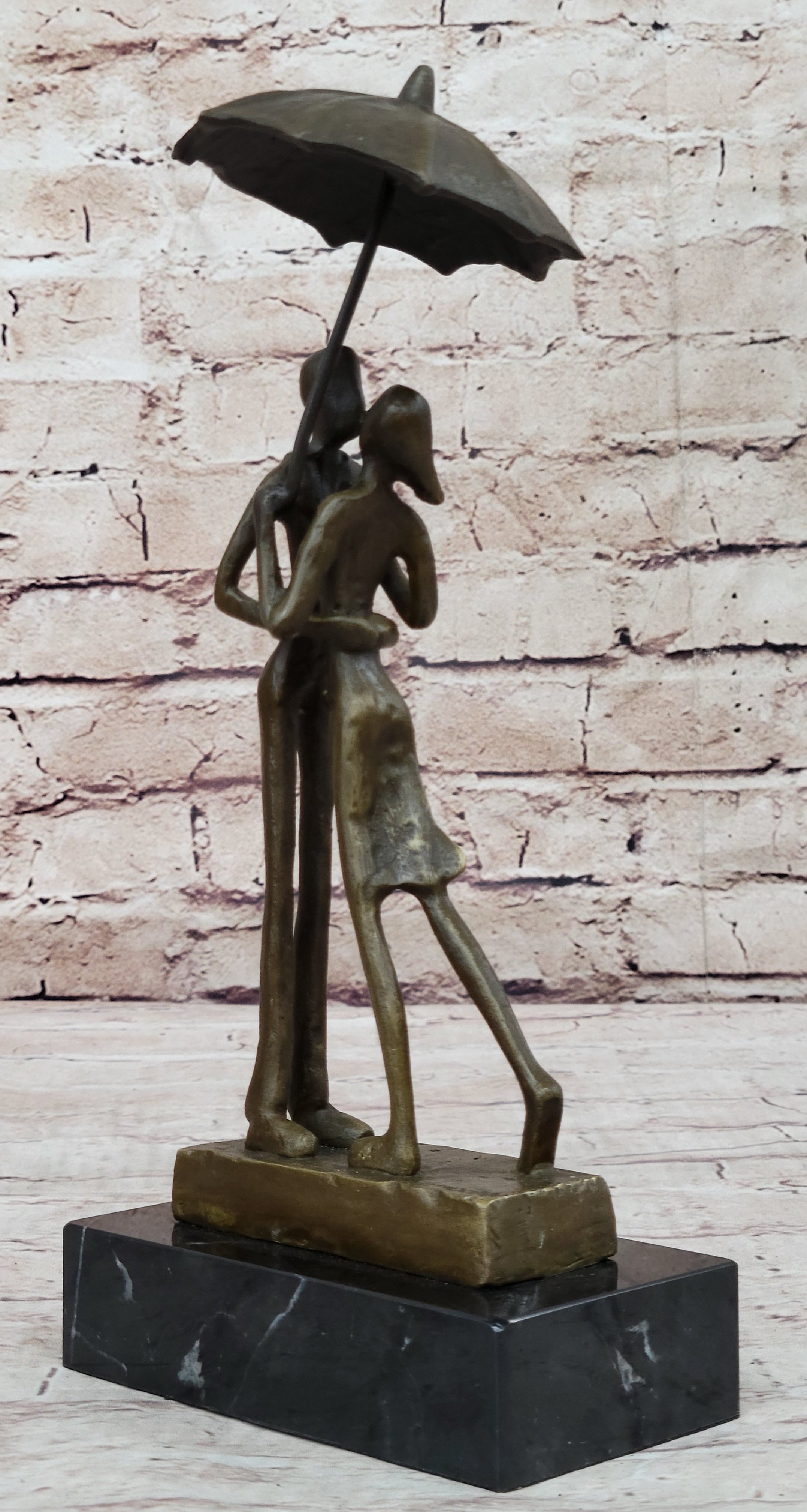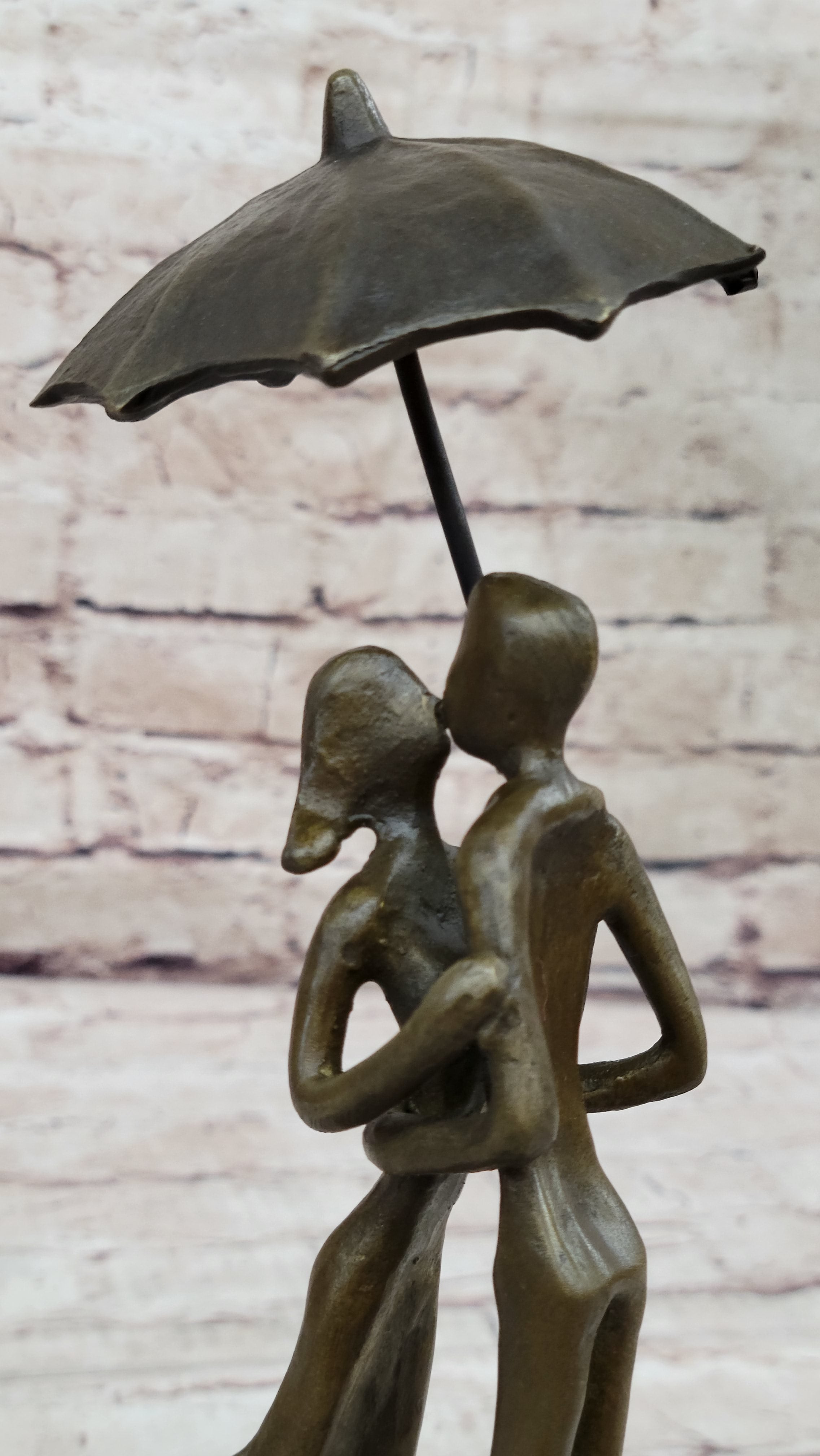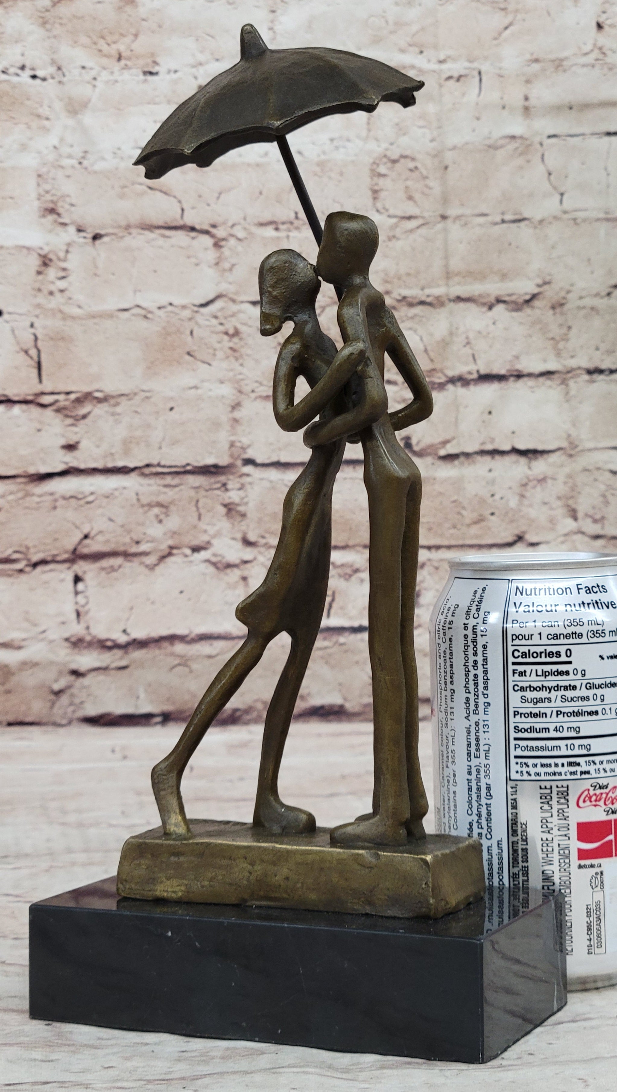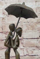 Lovers Romantic Kiss Under Umbrella Abstract Bronze Sculpture Figurine Original Art