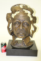 Massive Jean Patoue Albert Einstein on Black Marble Base Bronze Sculpture Statue