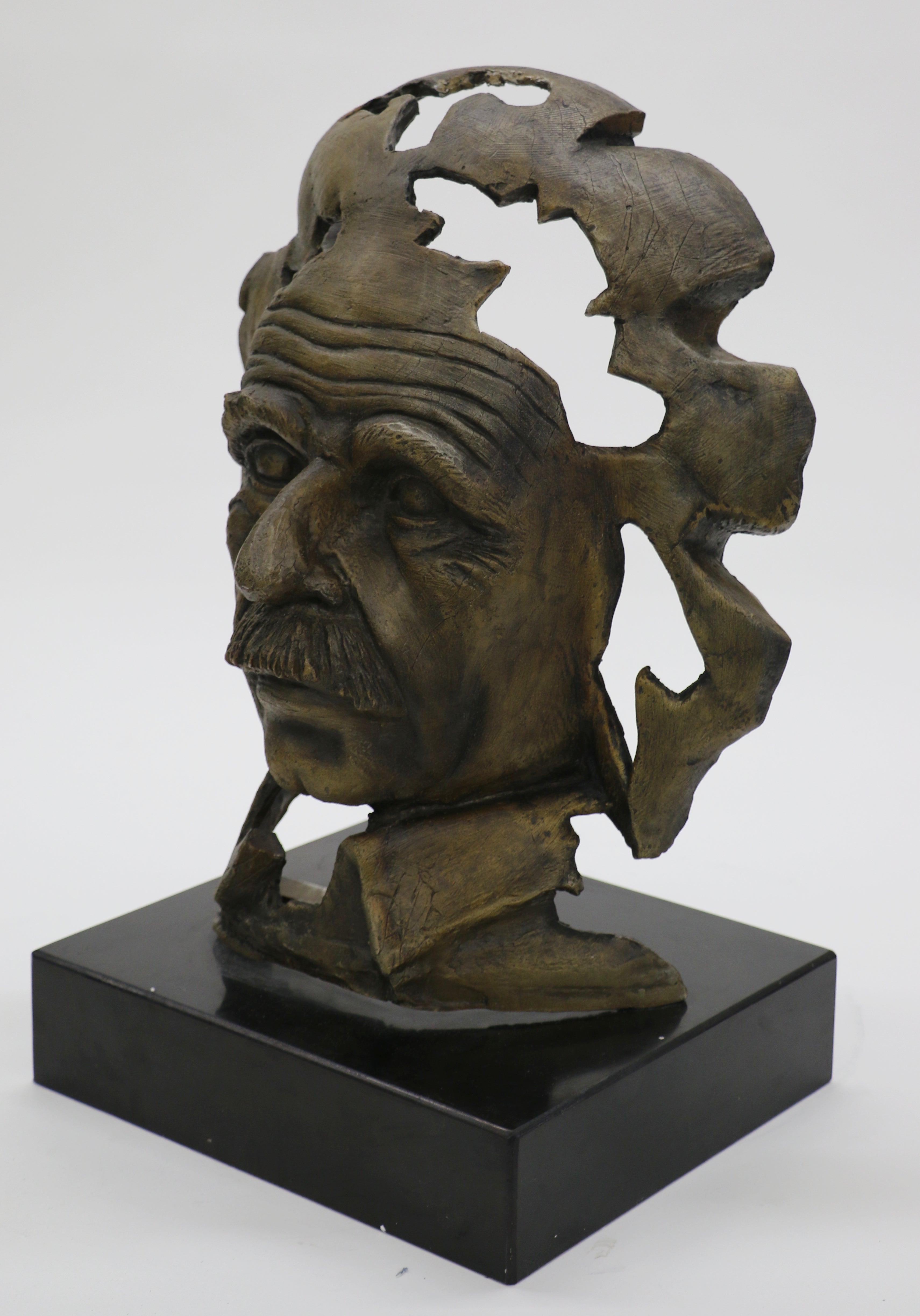 One of the worlds most intelligent and inspirational men, Albert Einstein was known for his achievements in physics and wisdom in writing. He is often regarded as the father of modern physics. The combination of his nonscientific and scientific brilliance can easily earn him the title of "genius" as well. This Collector edition bust of Albert Einstein was crafted using the lost wax method. It supported by a black marble base. It is desiged by the french artist Jean Patoue.