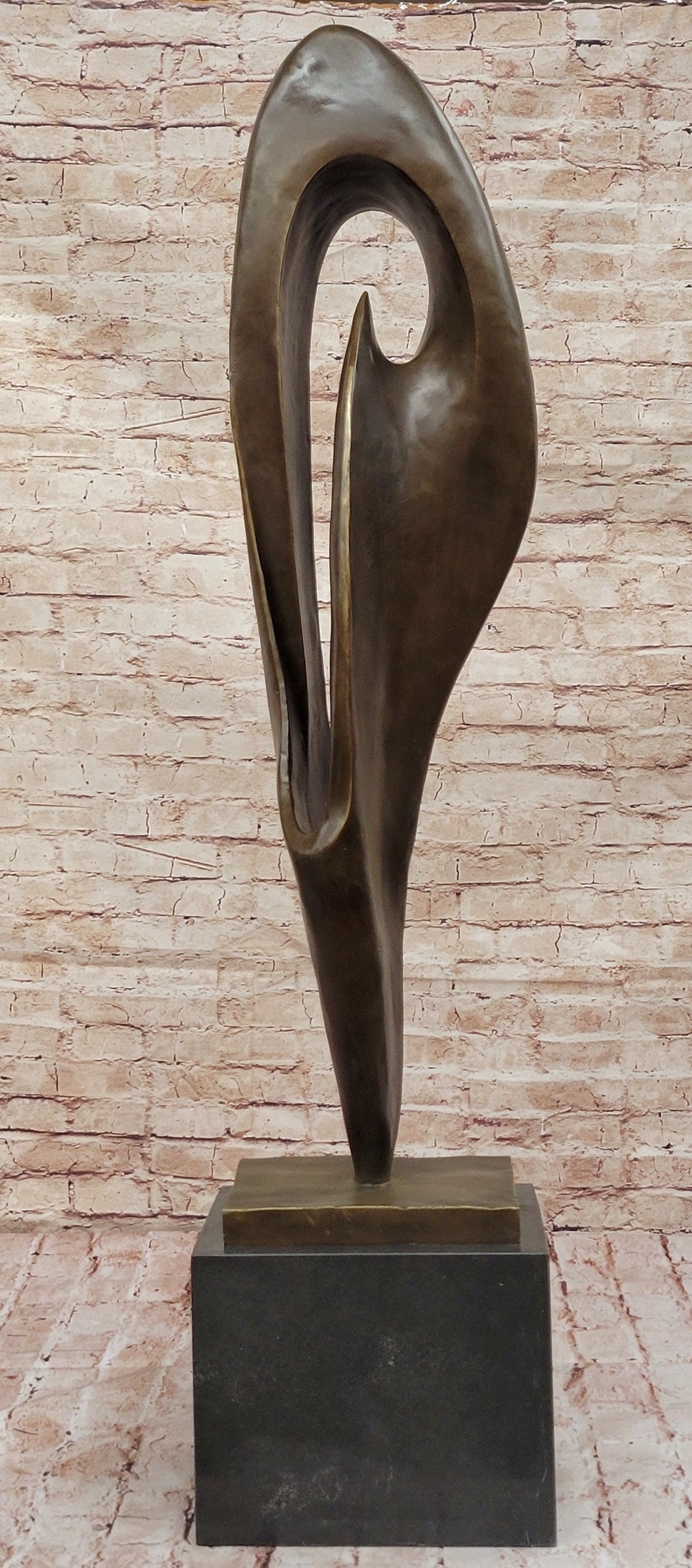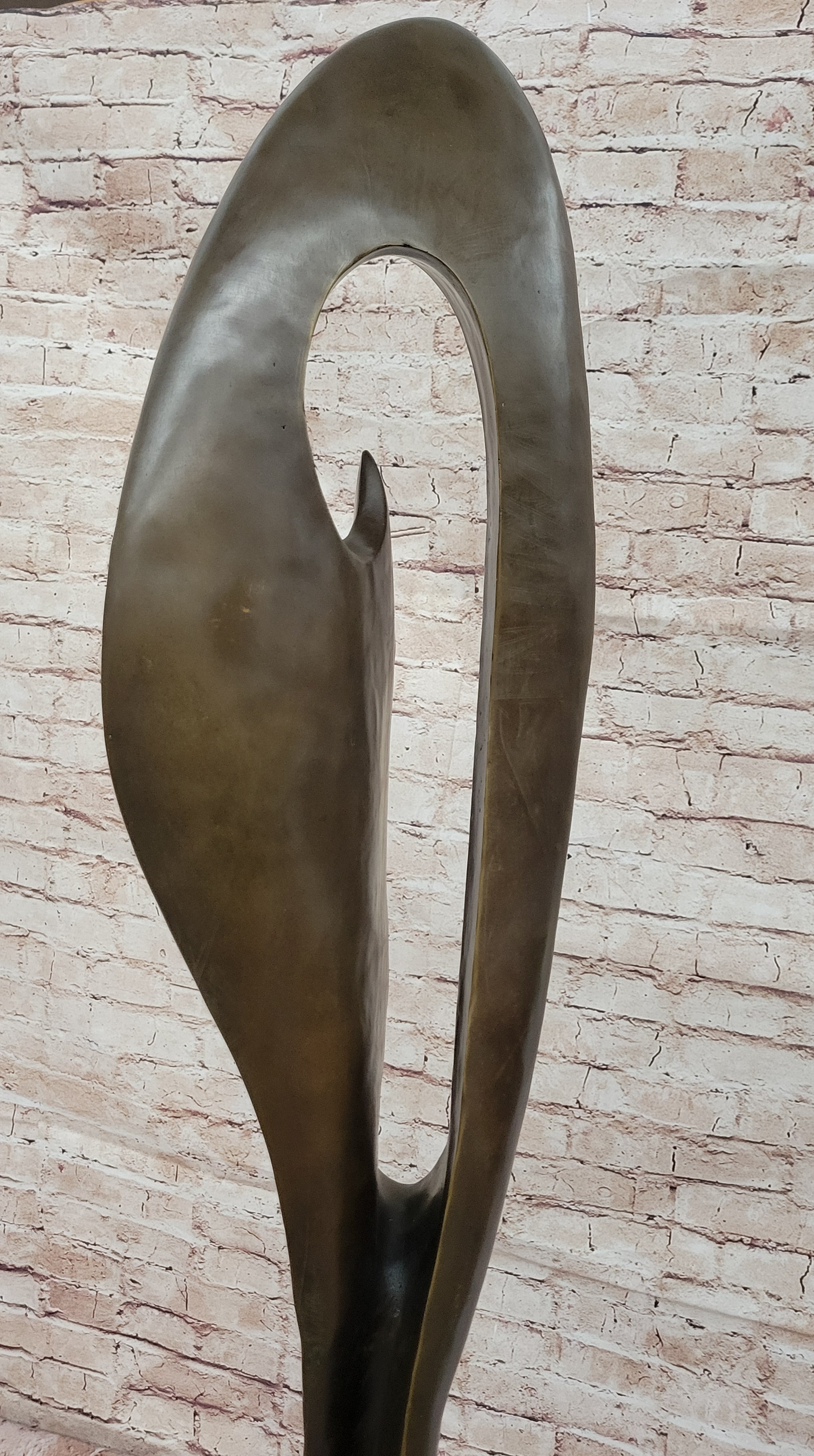 Resting on a solid black marble base, the sculpture commands attention while offering stability and refinement. As a limited edition piece, it holds both artistic and collectible value, ideal for those who appreciate bold, thought-provoking design. Whether displayed in a home, office, or gallery, this modern abstract sculpture is a statement of creativity, craftsmanship, and contemporary elegance.Bronze Dimensions with Marble Base: Height 43" X Width 10"