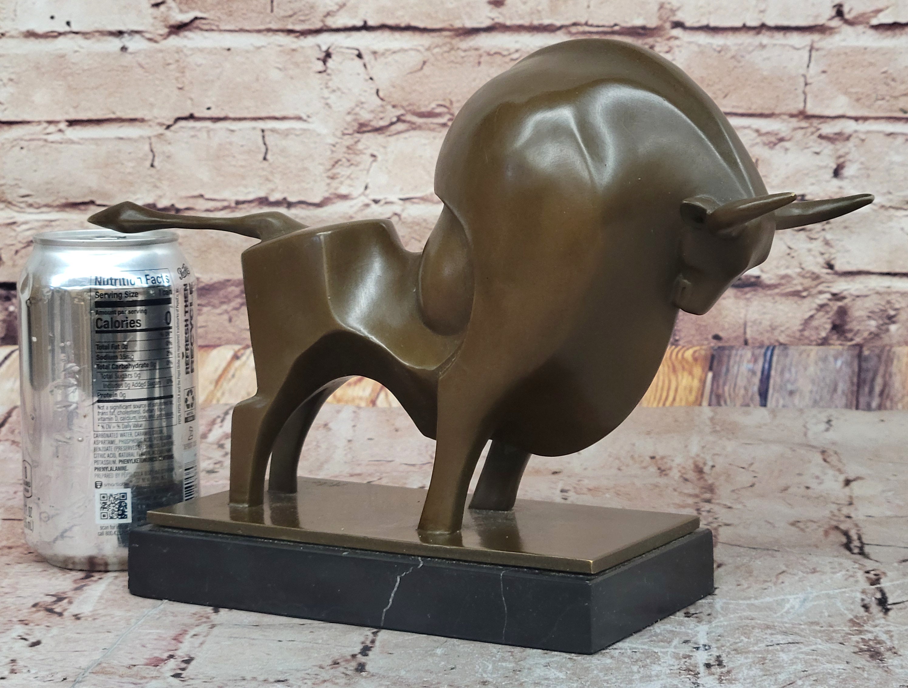 Expertly crafted using the traditional lost-wax method, this handmade sculpture features a rich brown patina that enhances its depth and detail. The bull stands proudly atop a black marble base, adding elegance and stability to the composition.