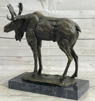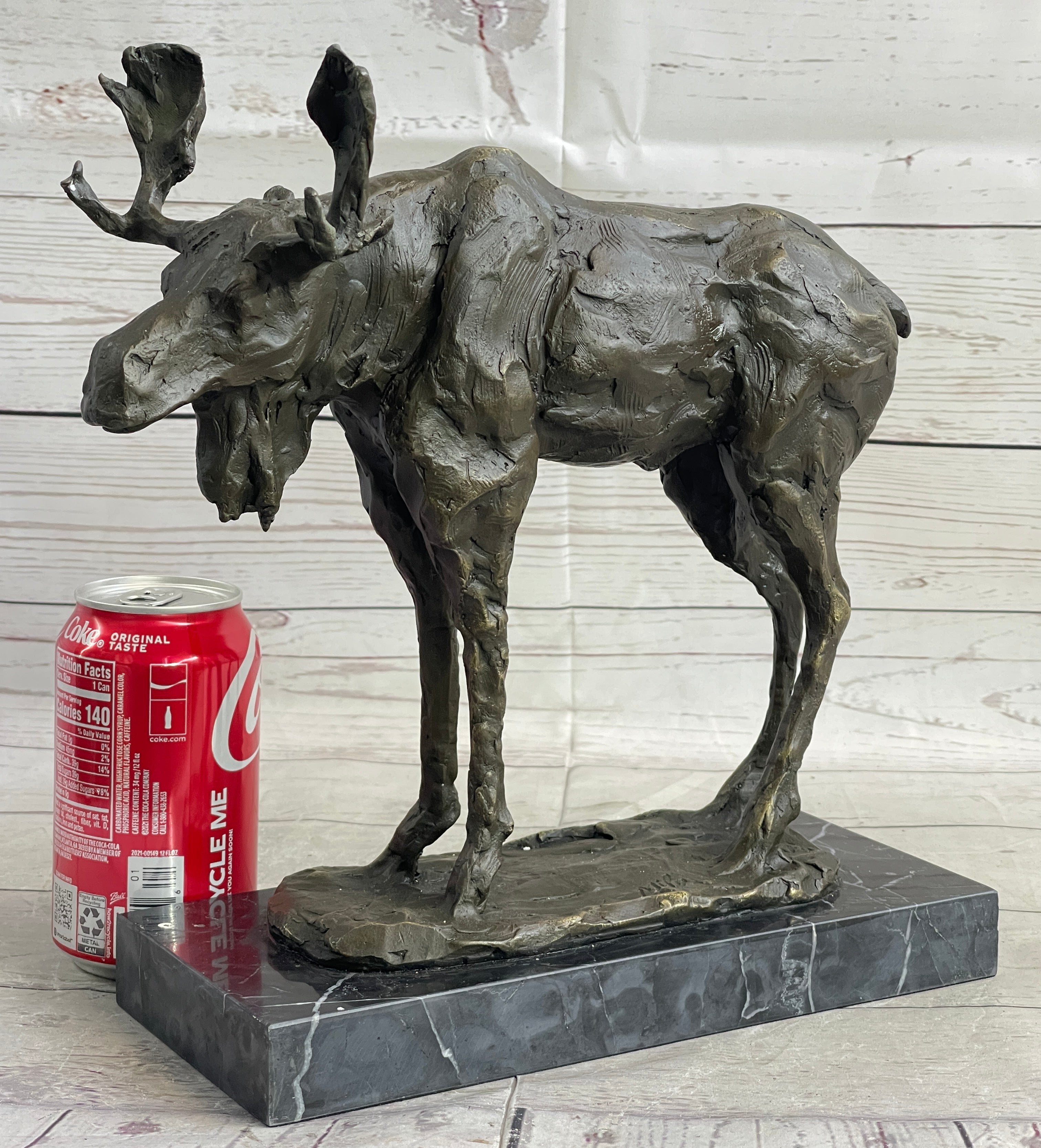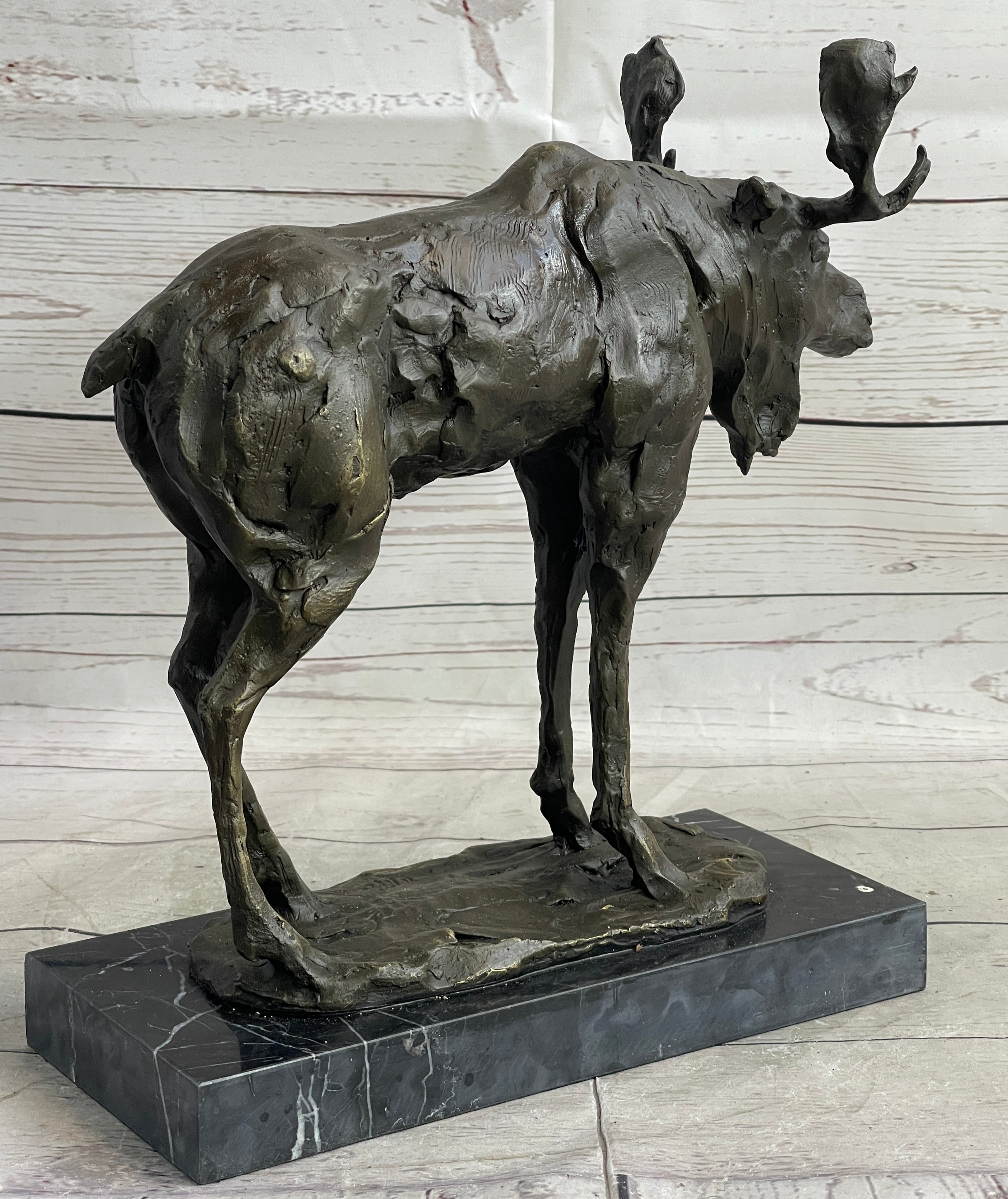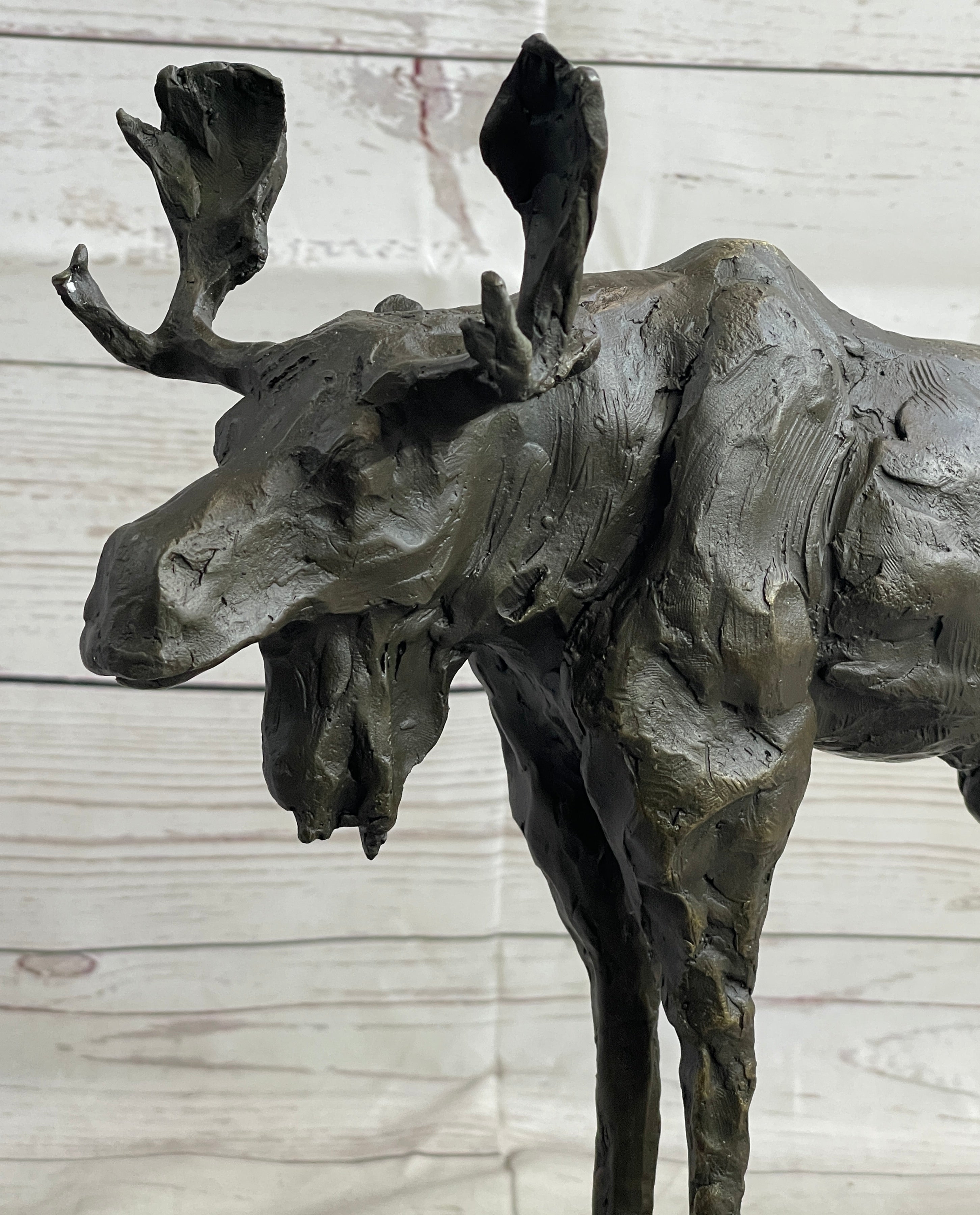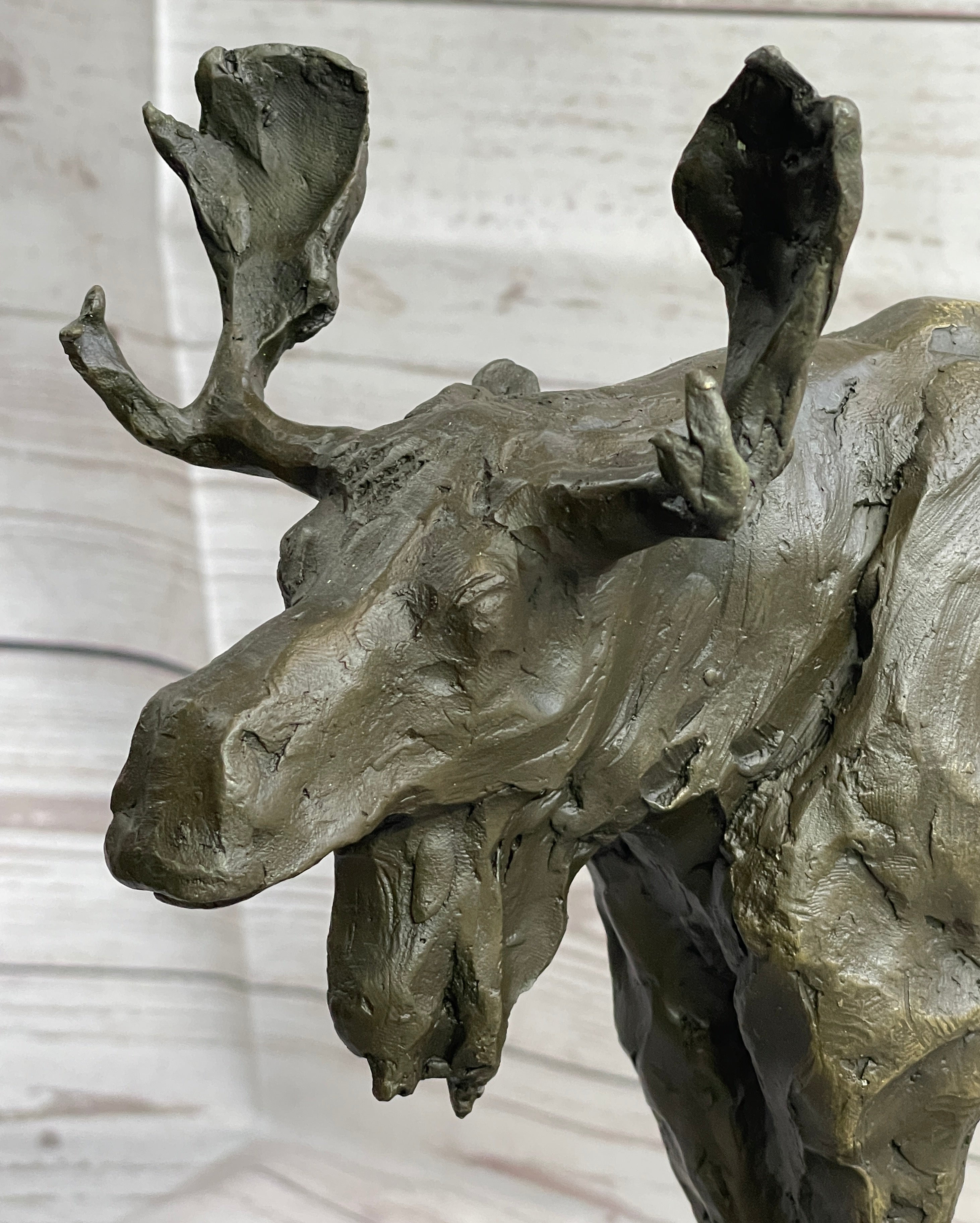 Milo Moose Bronze Sculpture – Rustic Wilderness Art on Marble Base