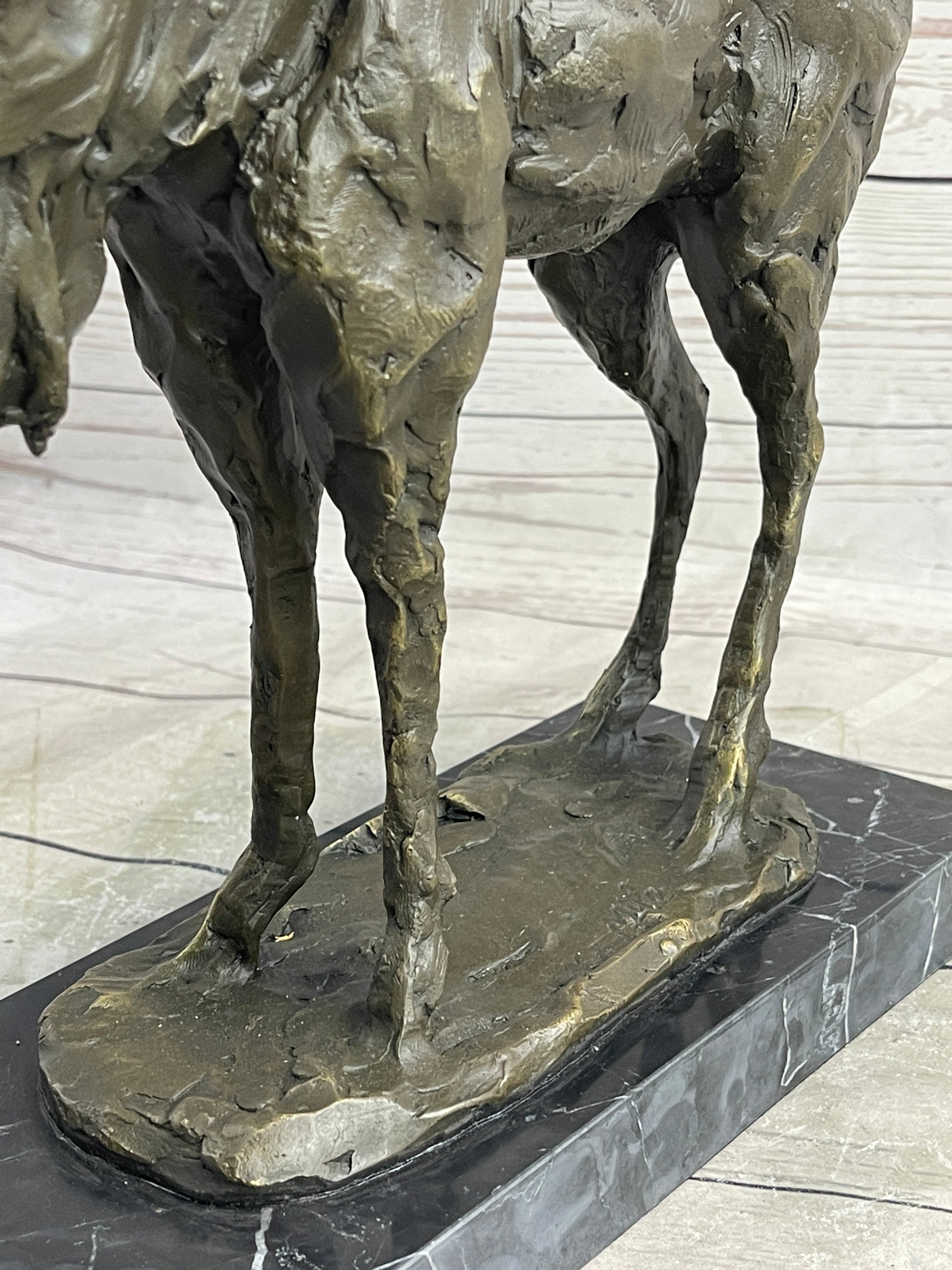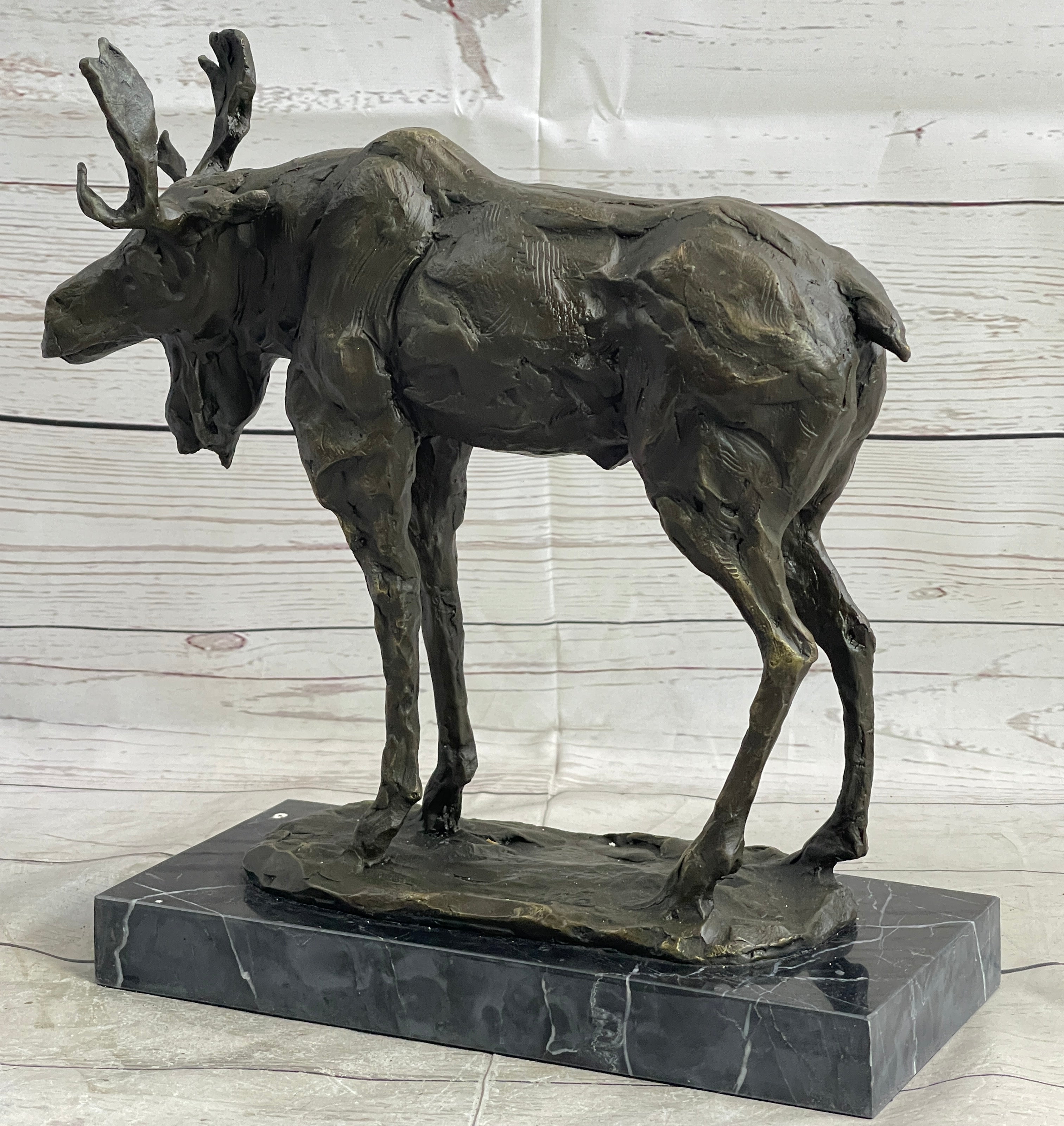 The moose, known as the North American moose or the Eurasian elk in Europe, is characterized by the distinctive palmate antlers of its males. Solitary by nature, these majestic creatures briefly break their solitude during the mating season, which occurs in September and October. The sculpture elegantly captures the moment of stillness in the deep forest, where the bull moose stands with an aura of majesty, breaking the silence with its resonant grunts that can carry for up to 500 meters.