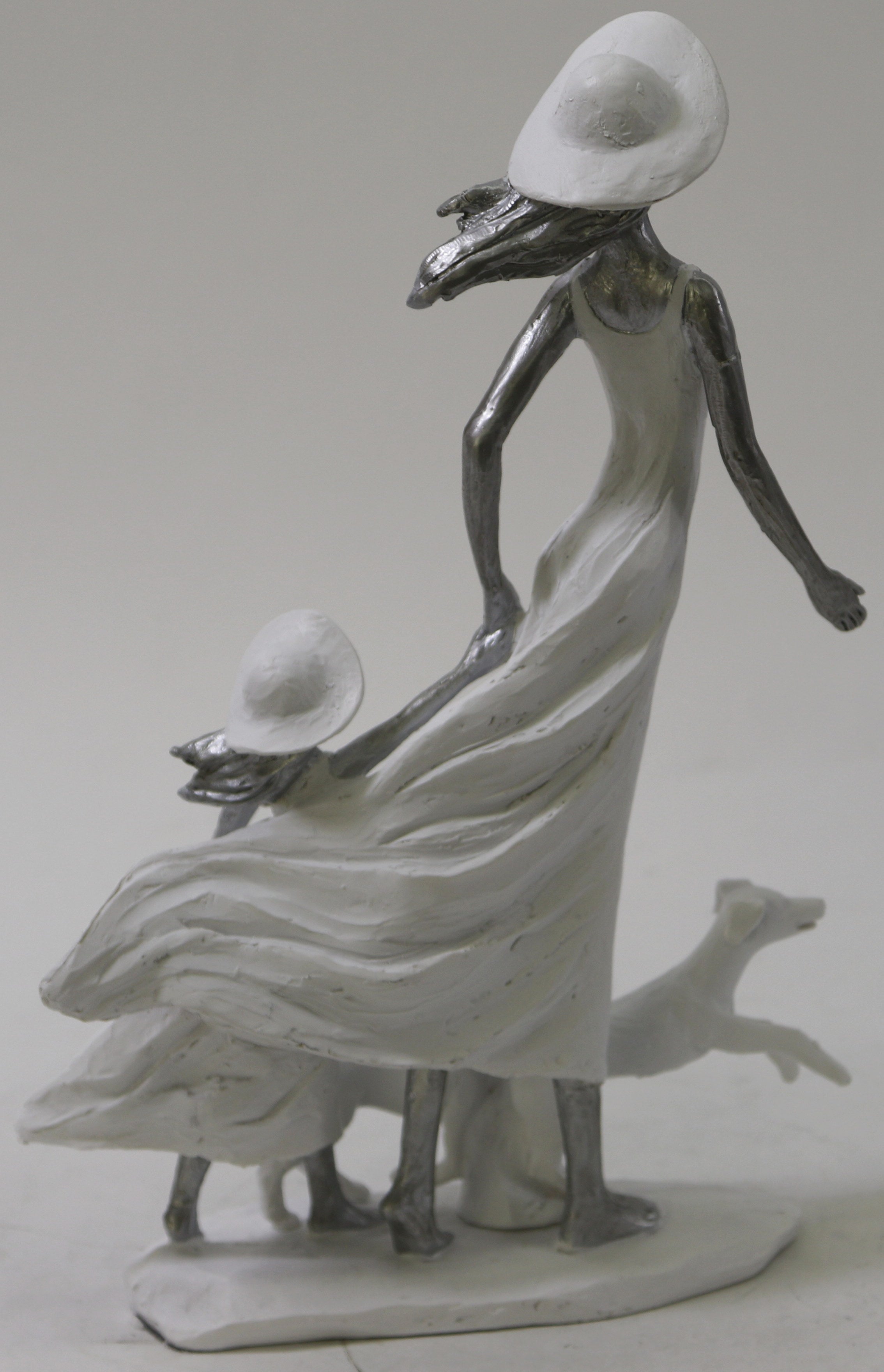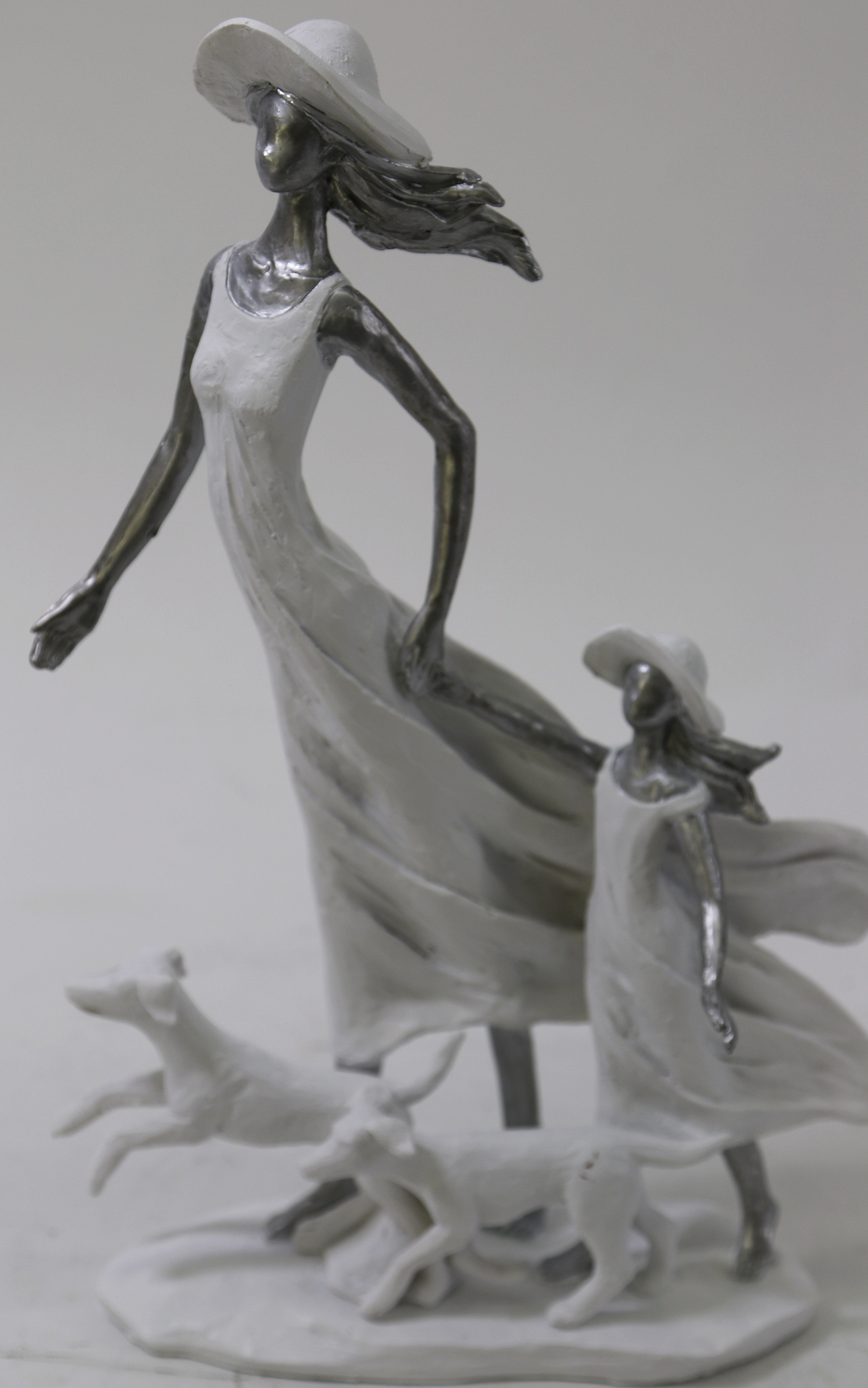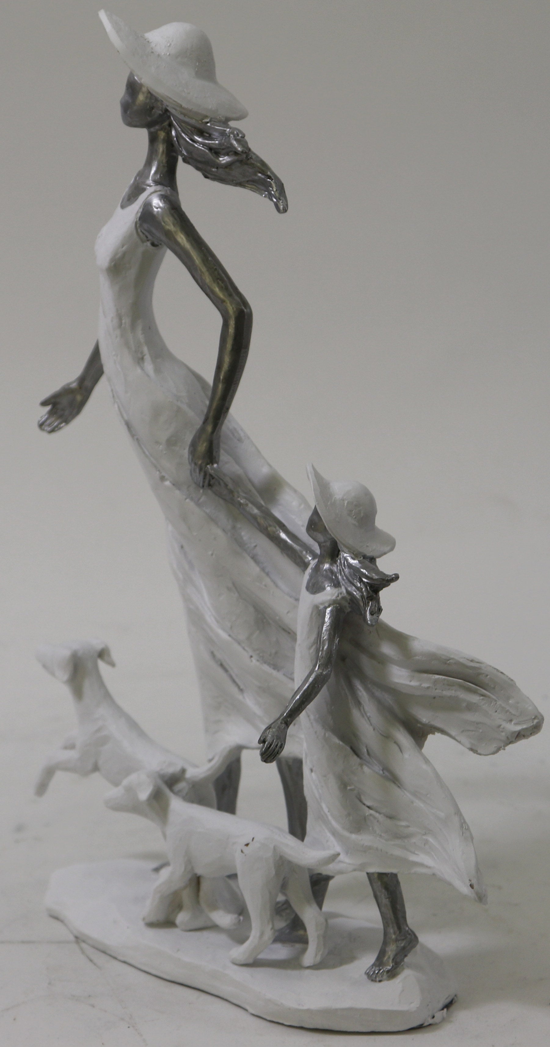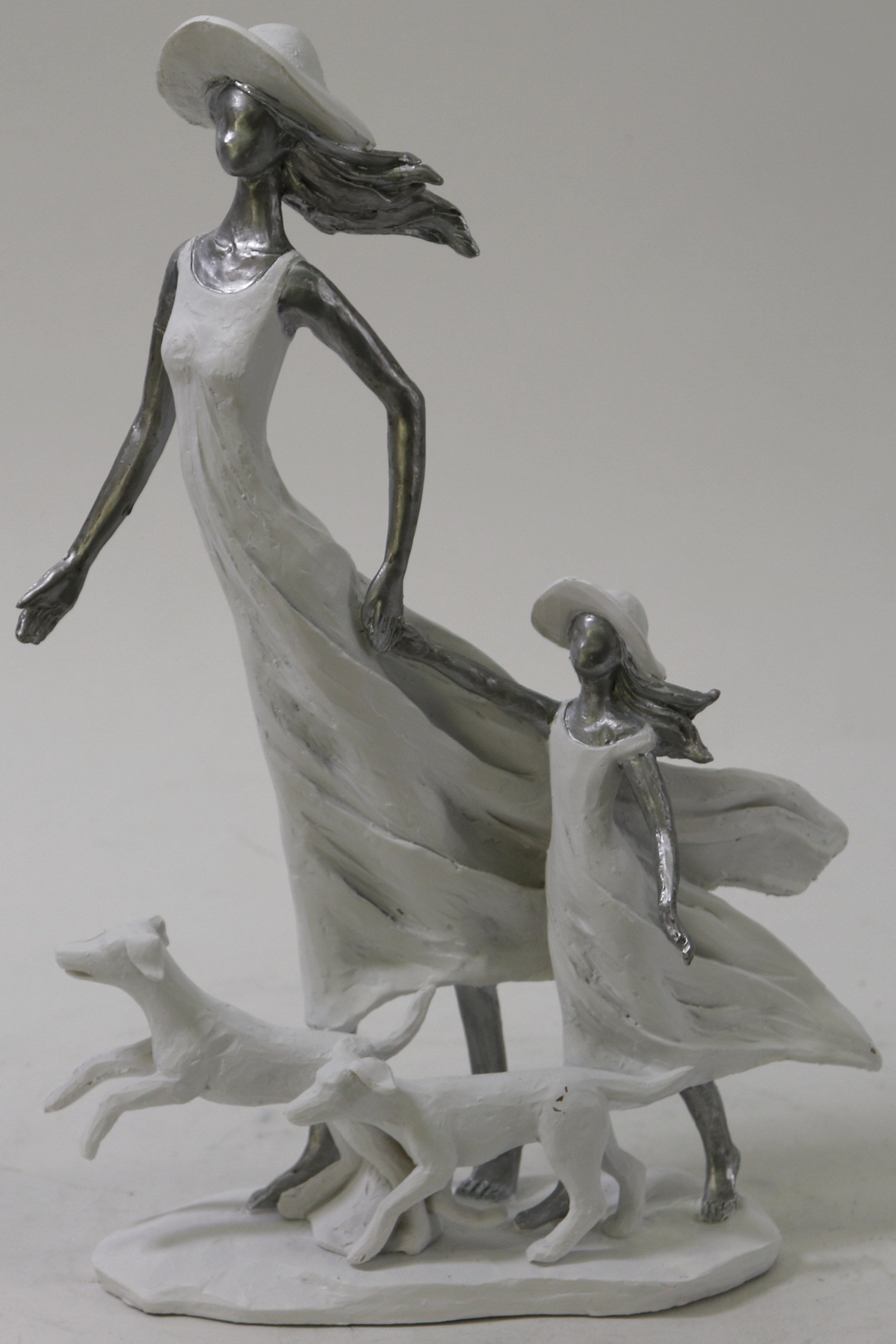 Mother and Daughter with two Loving Dogs Sculpture Figurine Figure