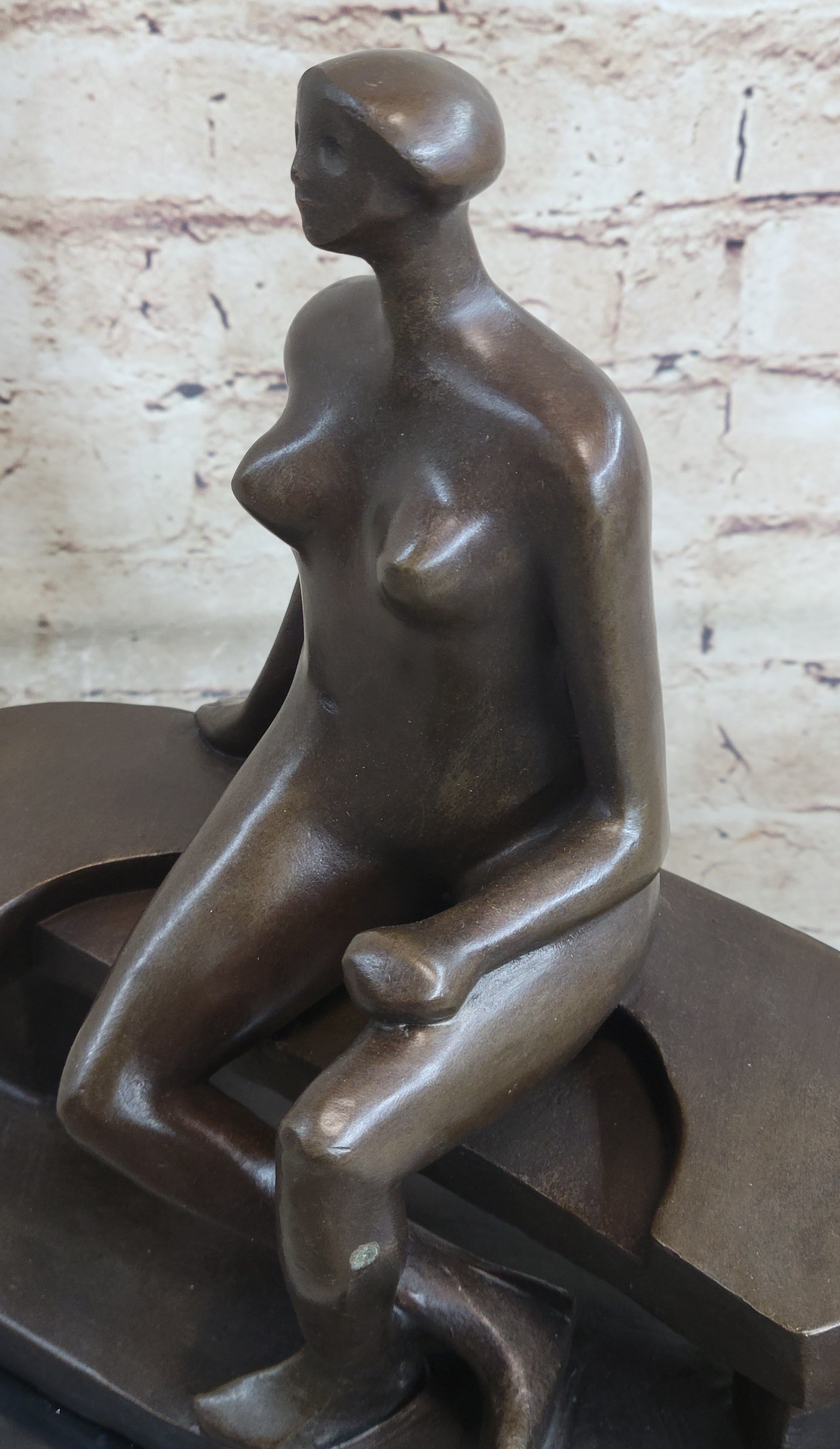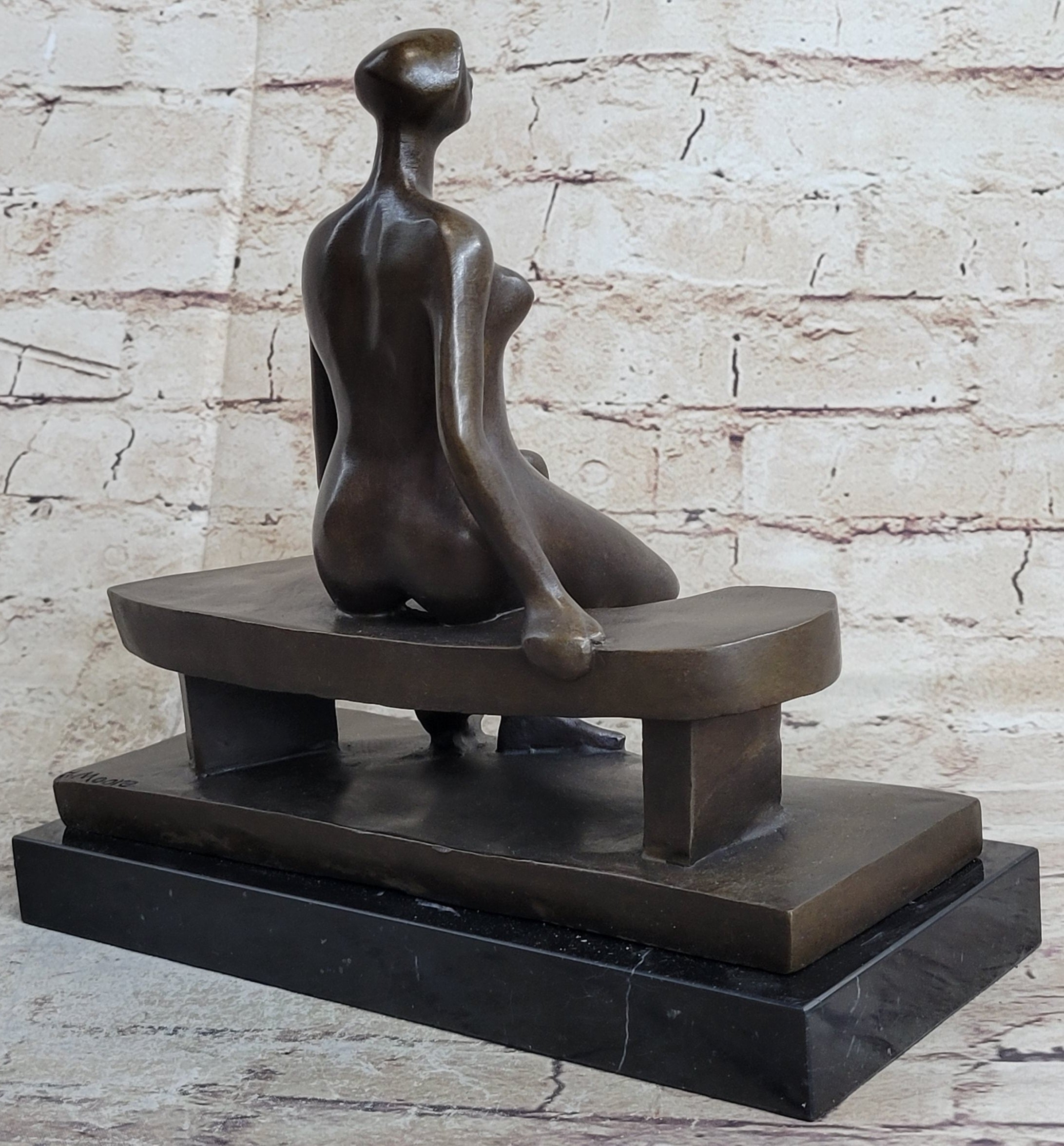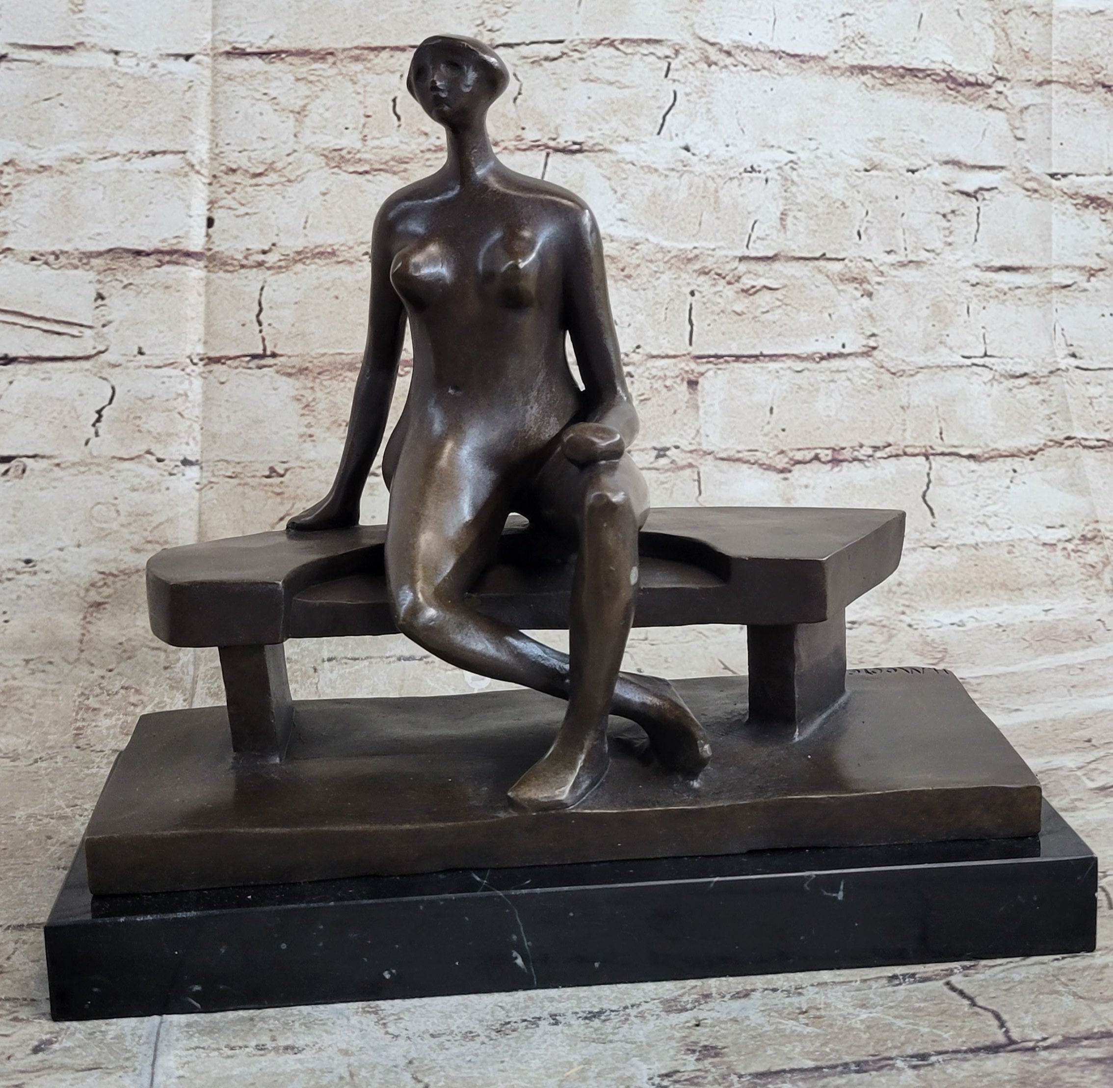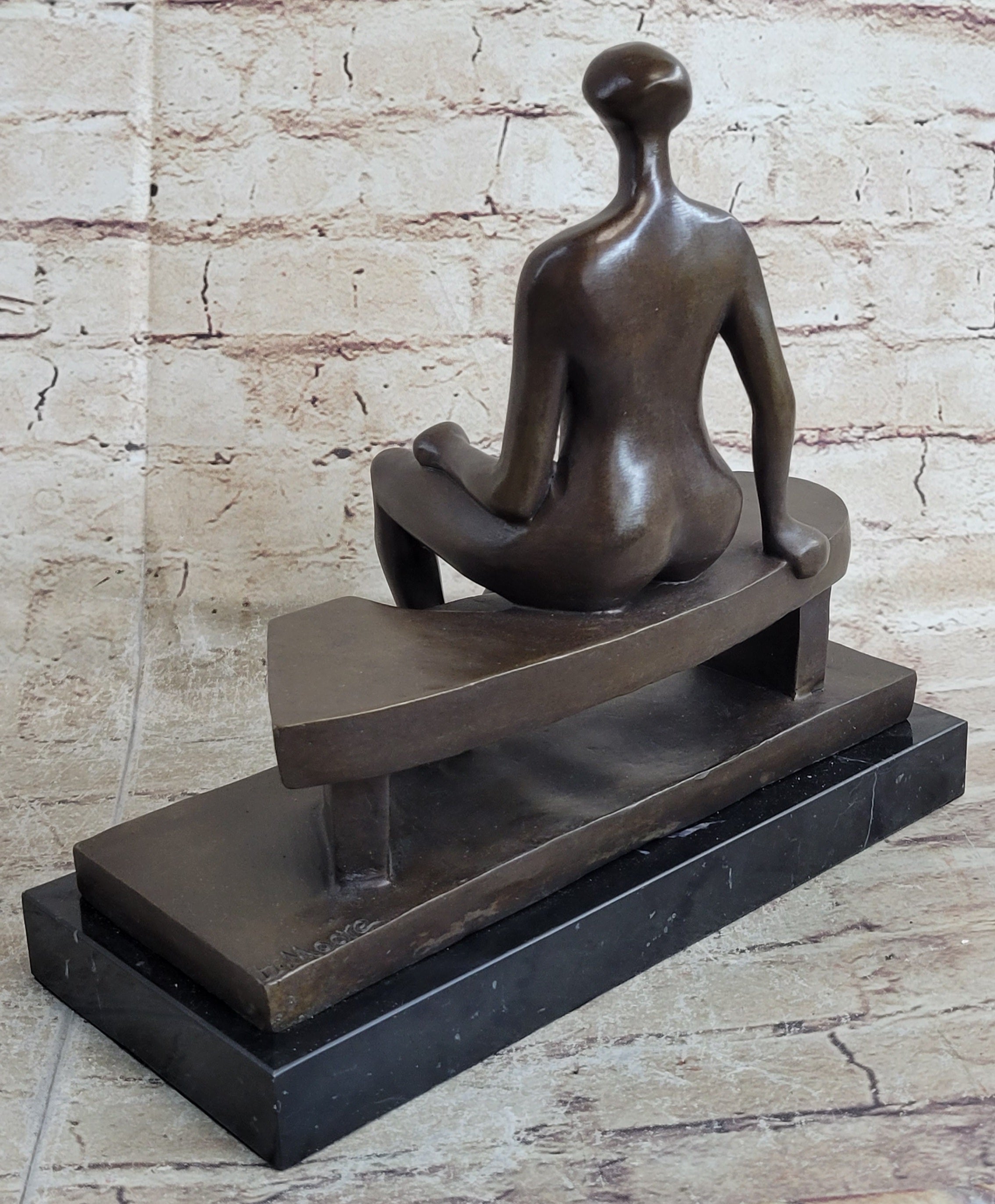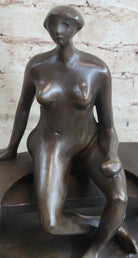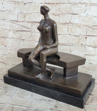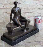 Nude Woman on Park Bench Abstract Bronze Statue Sculpture Figure Henry Moore Art