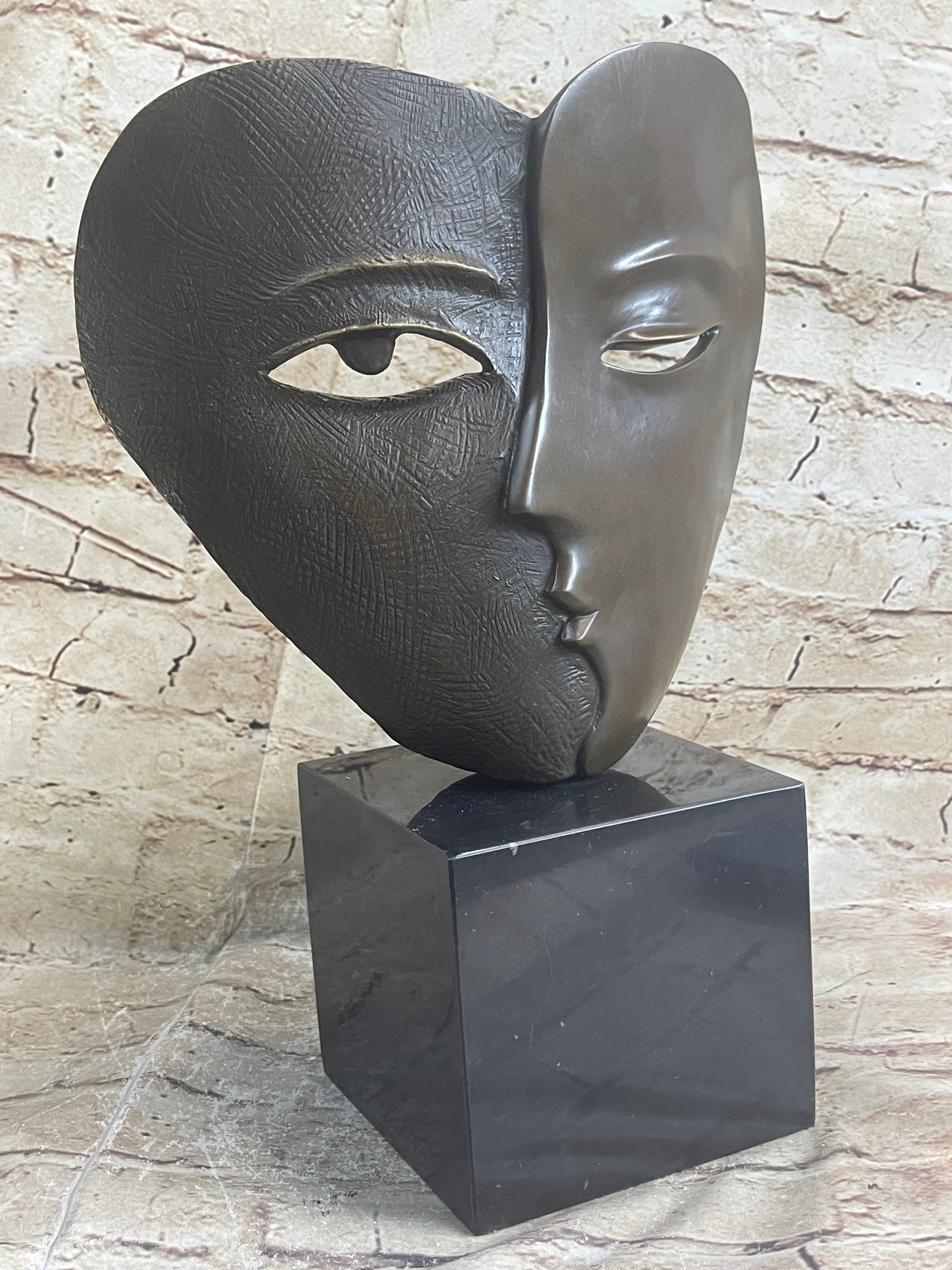 Picasso Dual Face Mask Bronze Statue Sculpture Surreal Modern Art Deco 13" x 9"