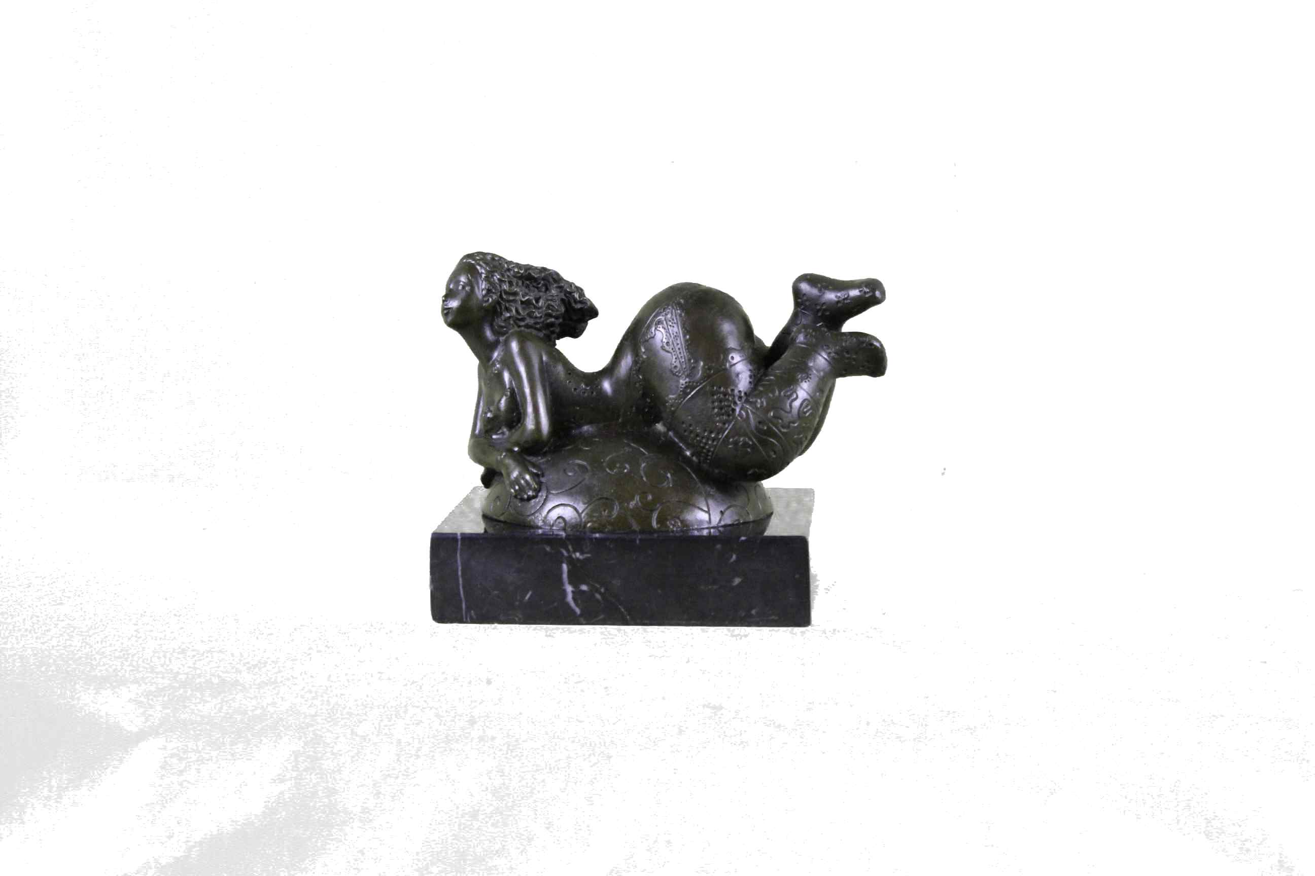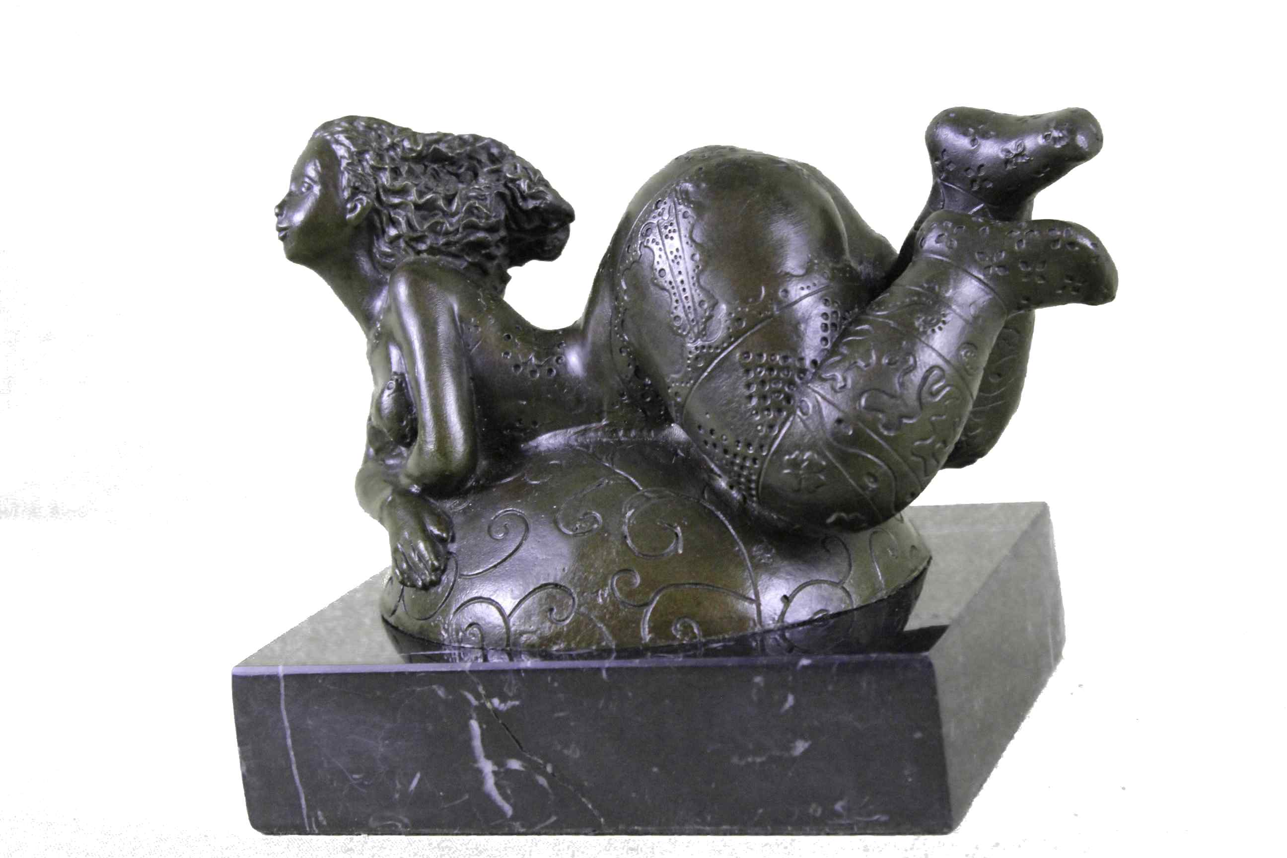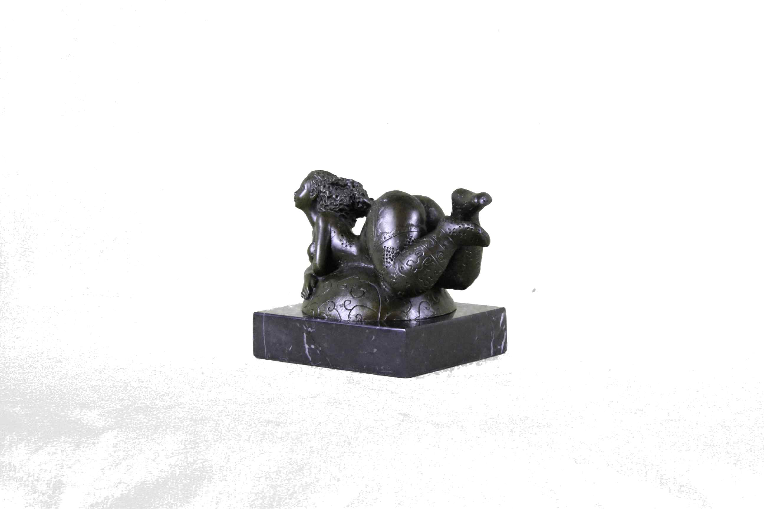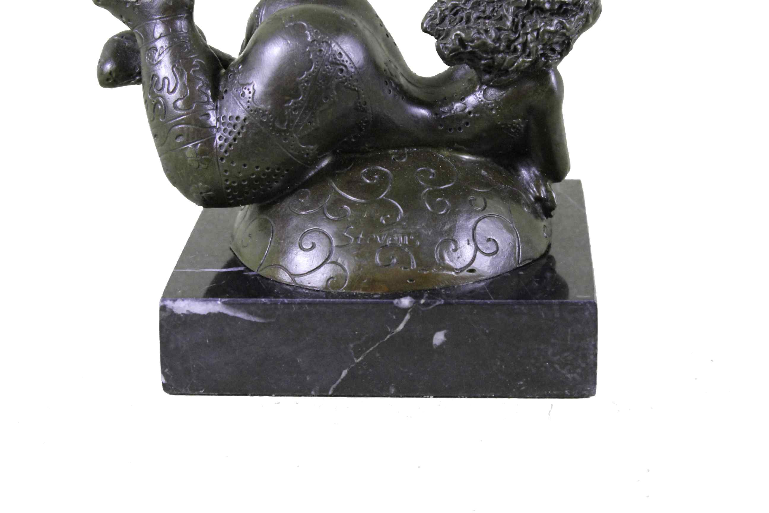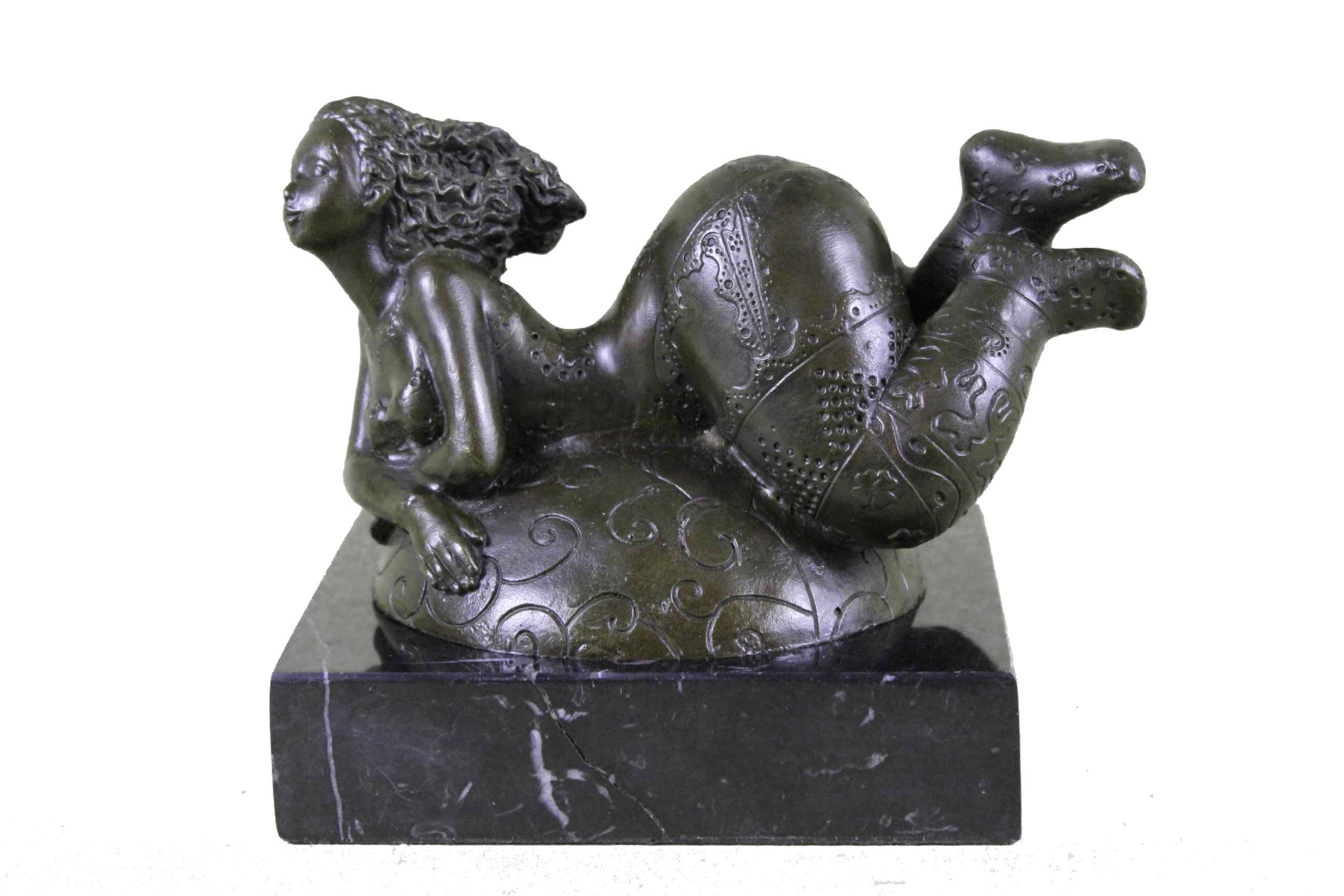 You are bidding on an Elegant and Beautiful Bronze Statue of a Botero Style Nude plump Woman, on a black marble base with wonderful detail, in excellent condition. The statue is cast bronze, not a resin mixture. The statue is truly much nicer in person, than I can capture in the photos. The statue is signed by the artist Roelna and is a tribute to Botero.Bronze Dimensions with Marble Base:Height 5" x Width 6"
