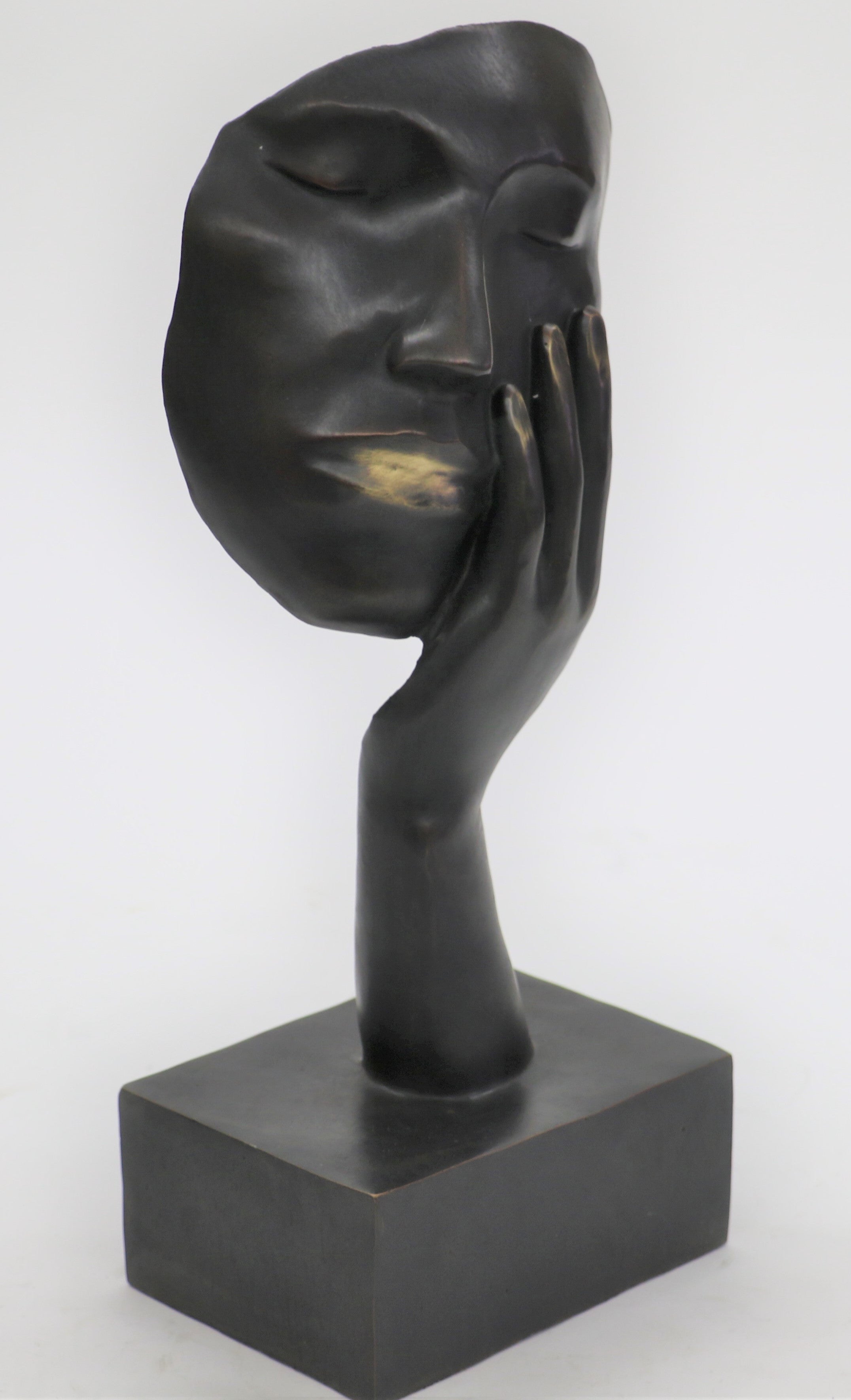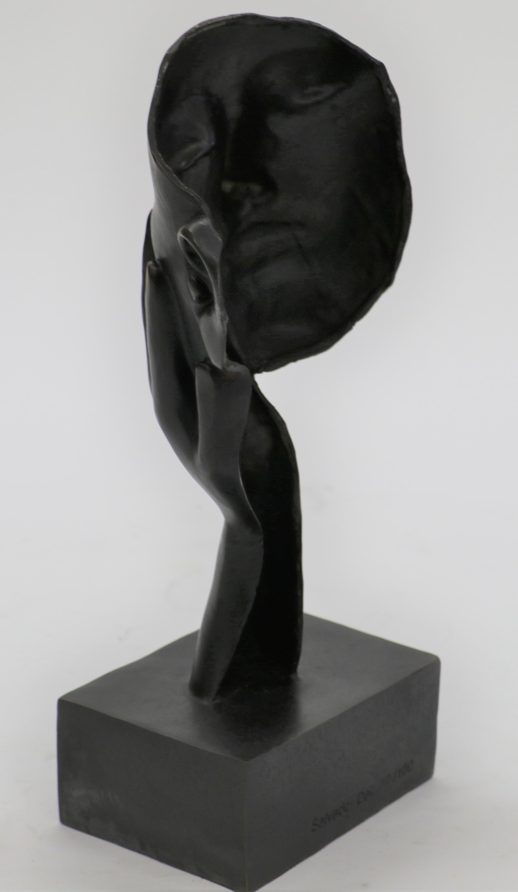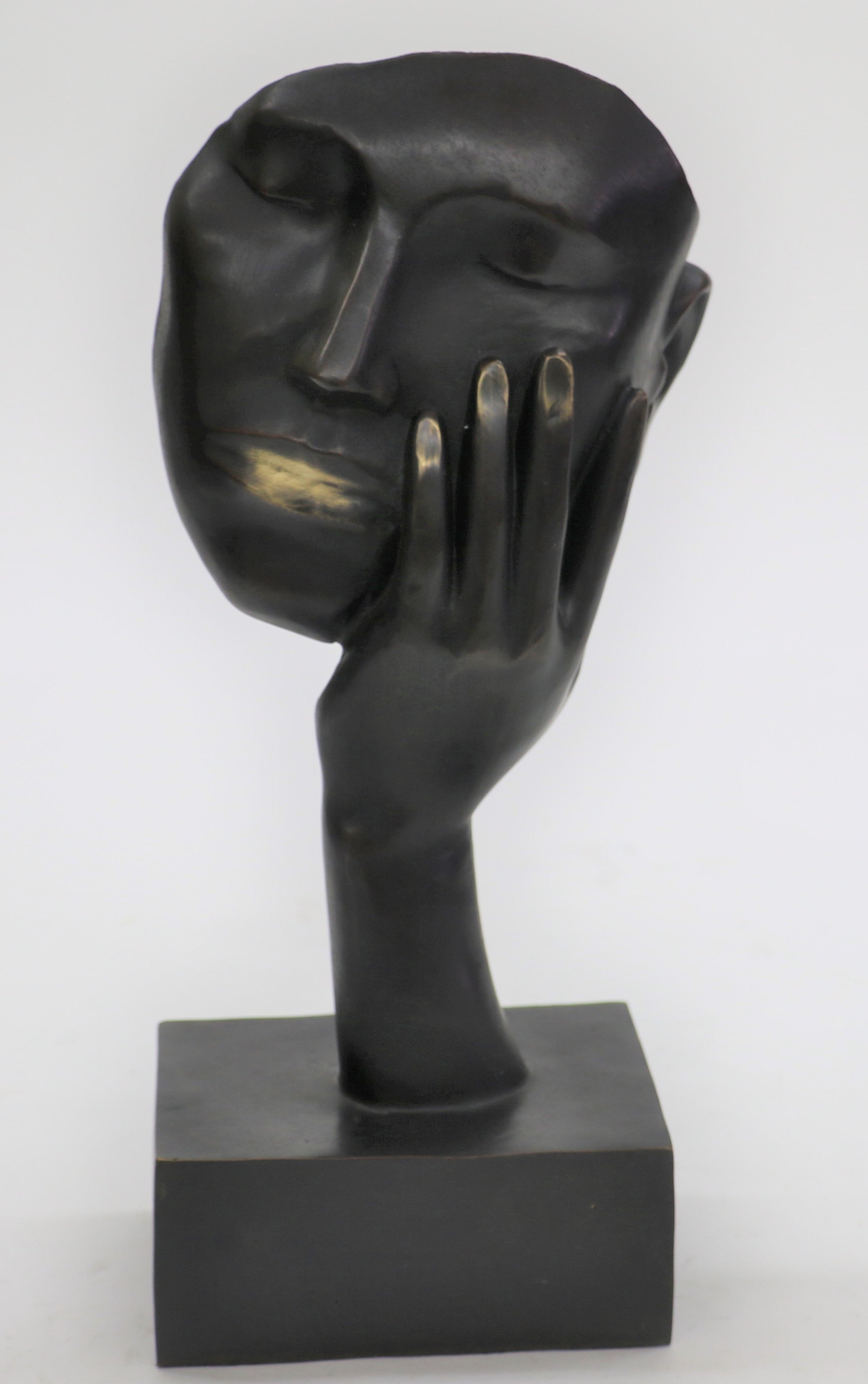 This amazing piece of art signed by Salvador Dali, will leave you stoned. The man rests on his hand, while he sleeps he dreams of only the fine things in the world The handmade bronze sculpture was captured using the ancient method of lost-wax casting and stained with a dark brown patina for perpetuation. It is mounted upon a bronze base and is signed and numbered Salvador Dali.Bronze Dimensions :Height 15.5" X Width 6.5"