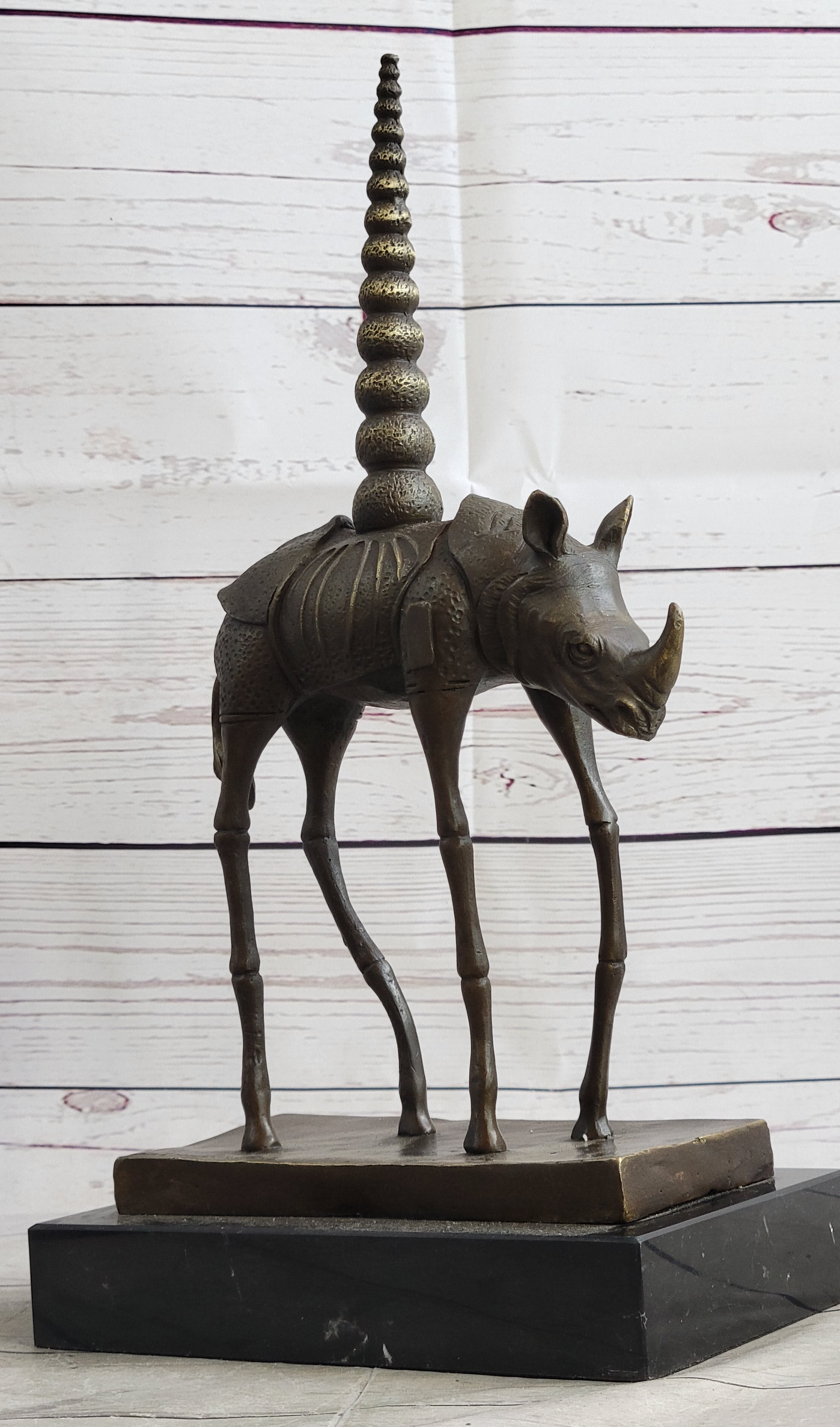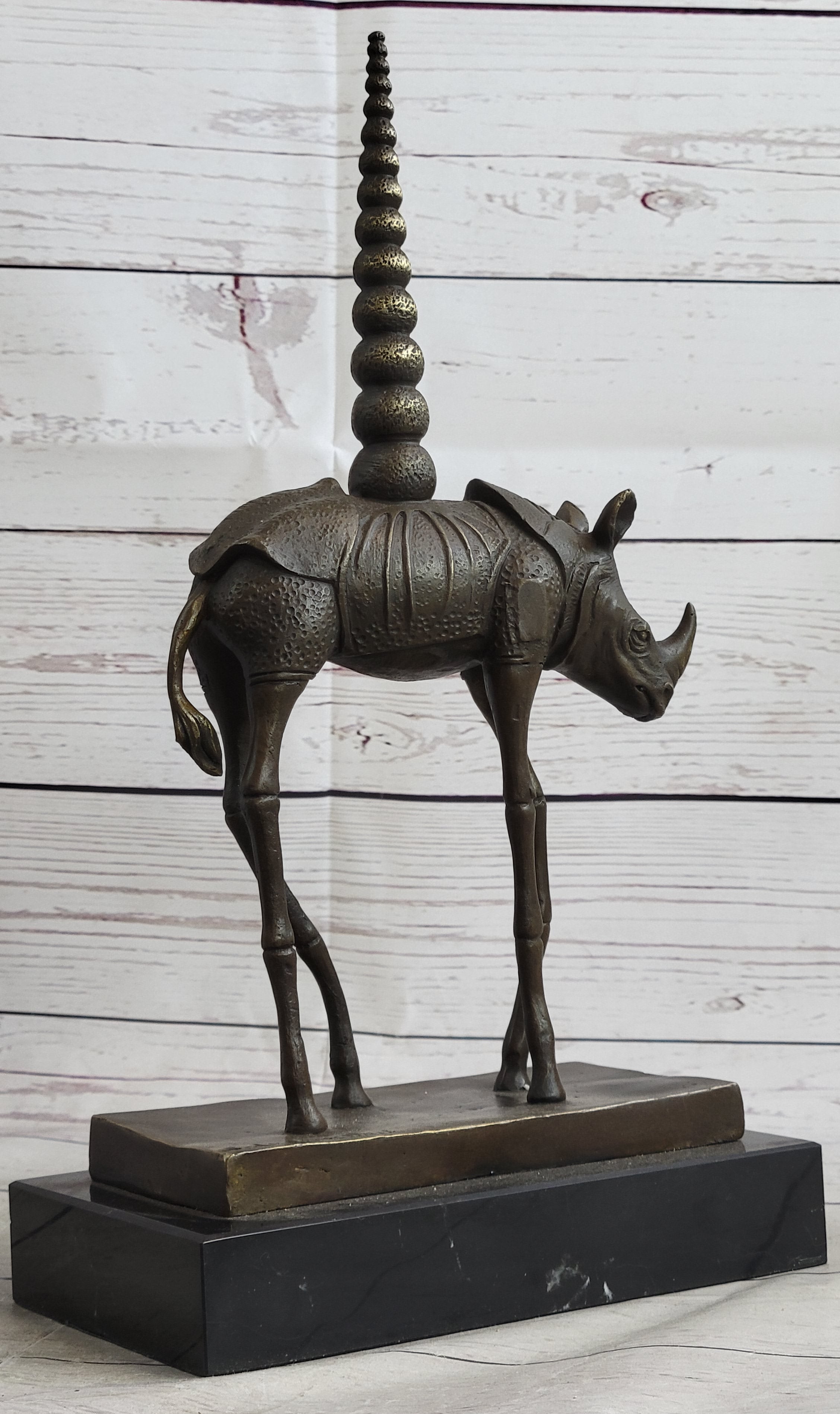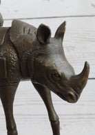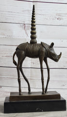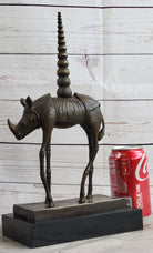 Salvador Dali Cosmic Rhinoceros Surreal Rhino Bronze Sculpture Statue on Marble Base