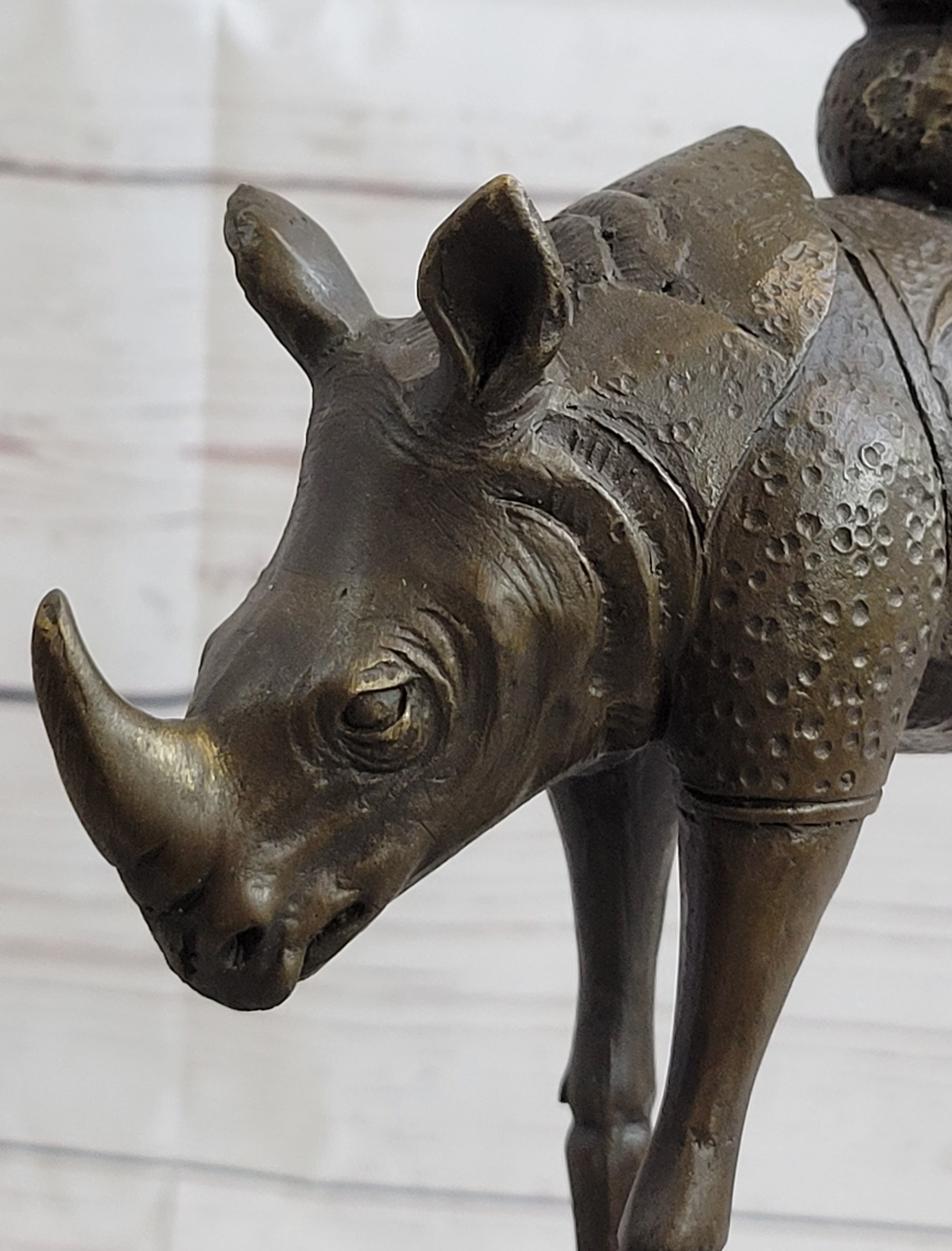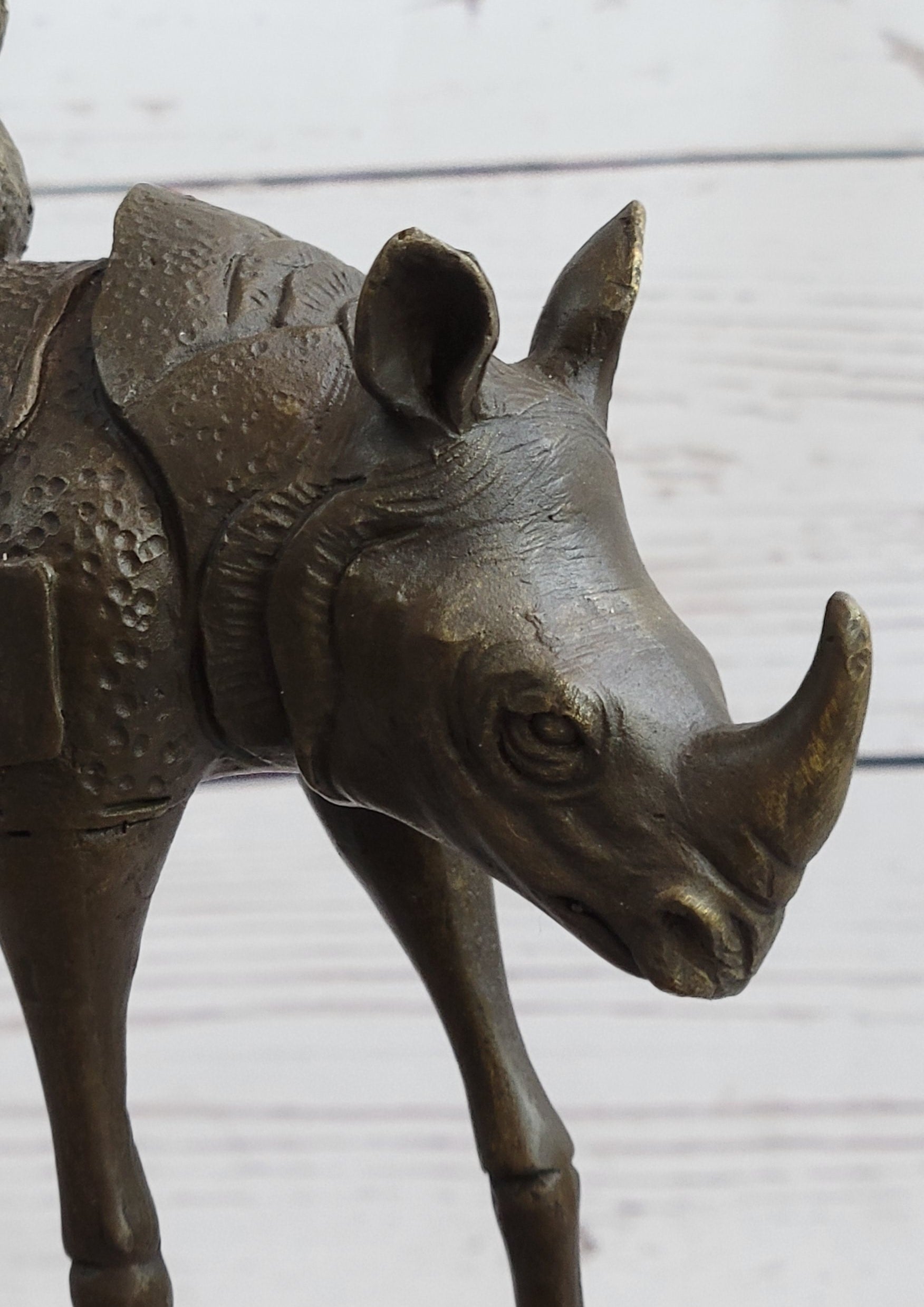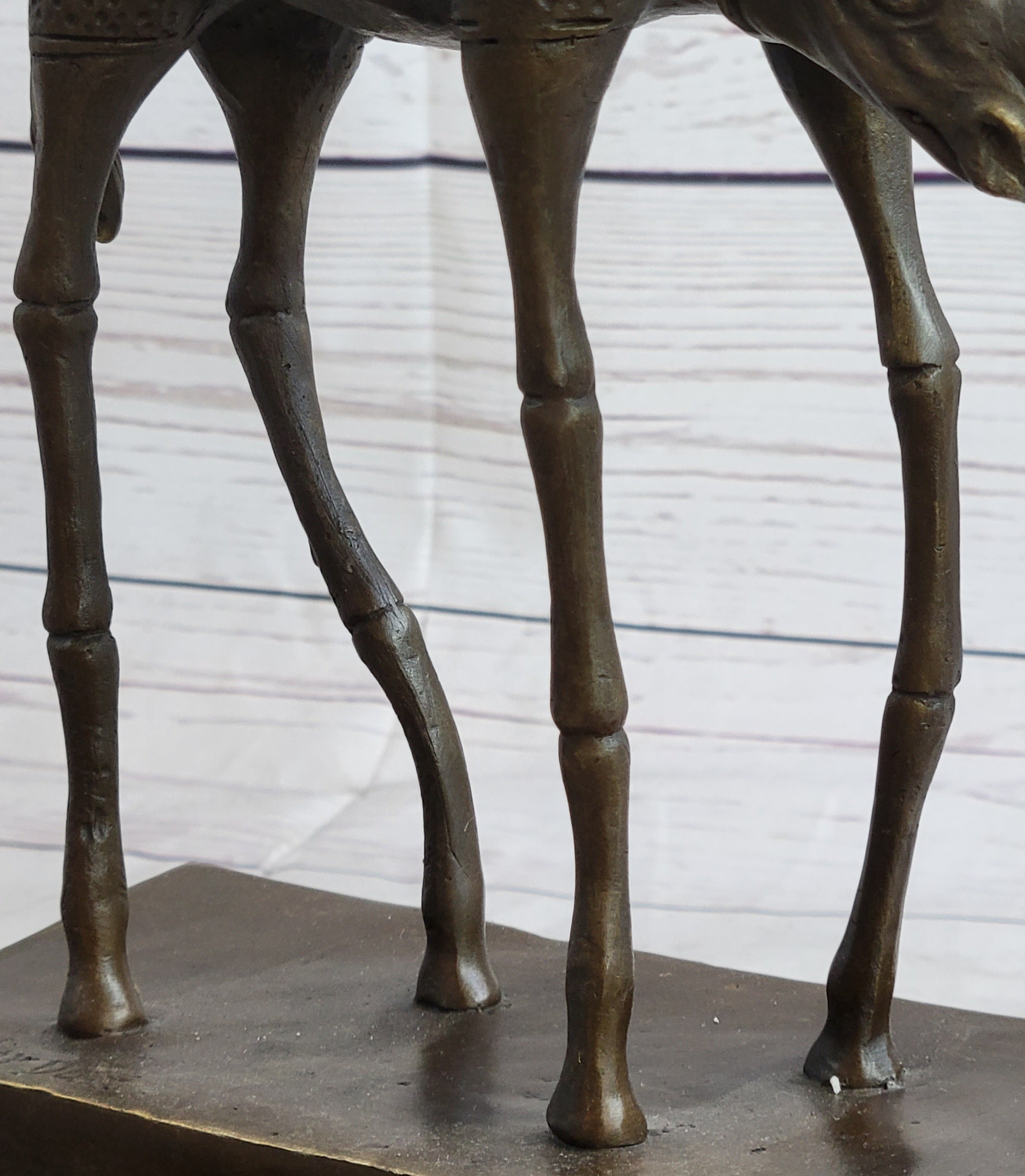 Cast using the traditional "lost-wax" method and mounted on a sturdy base, this sculpture is a true work of art that will add a touch of surrealism to any home or office décor. Whether you're a collector of modern art or simply appreciate the beauty of Dalí's vision, this Cosmic Rhinoceros sculpture is sure to impress.Bronze Dimensions with Marble Base: Height 13.5" X Width 7.5"