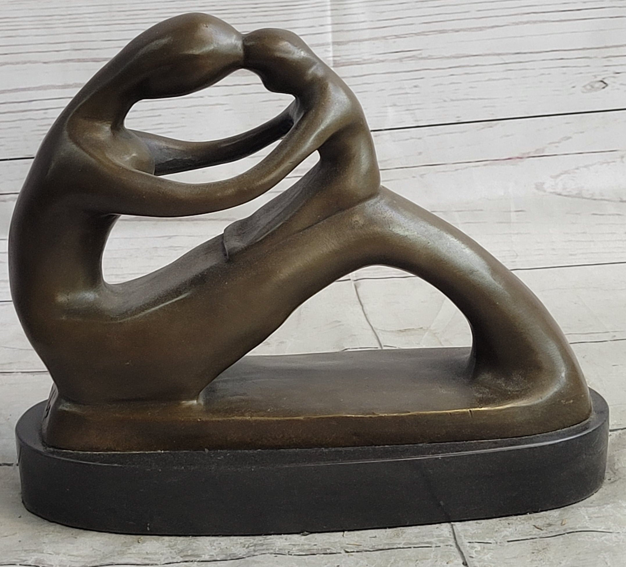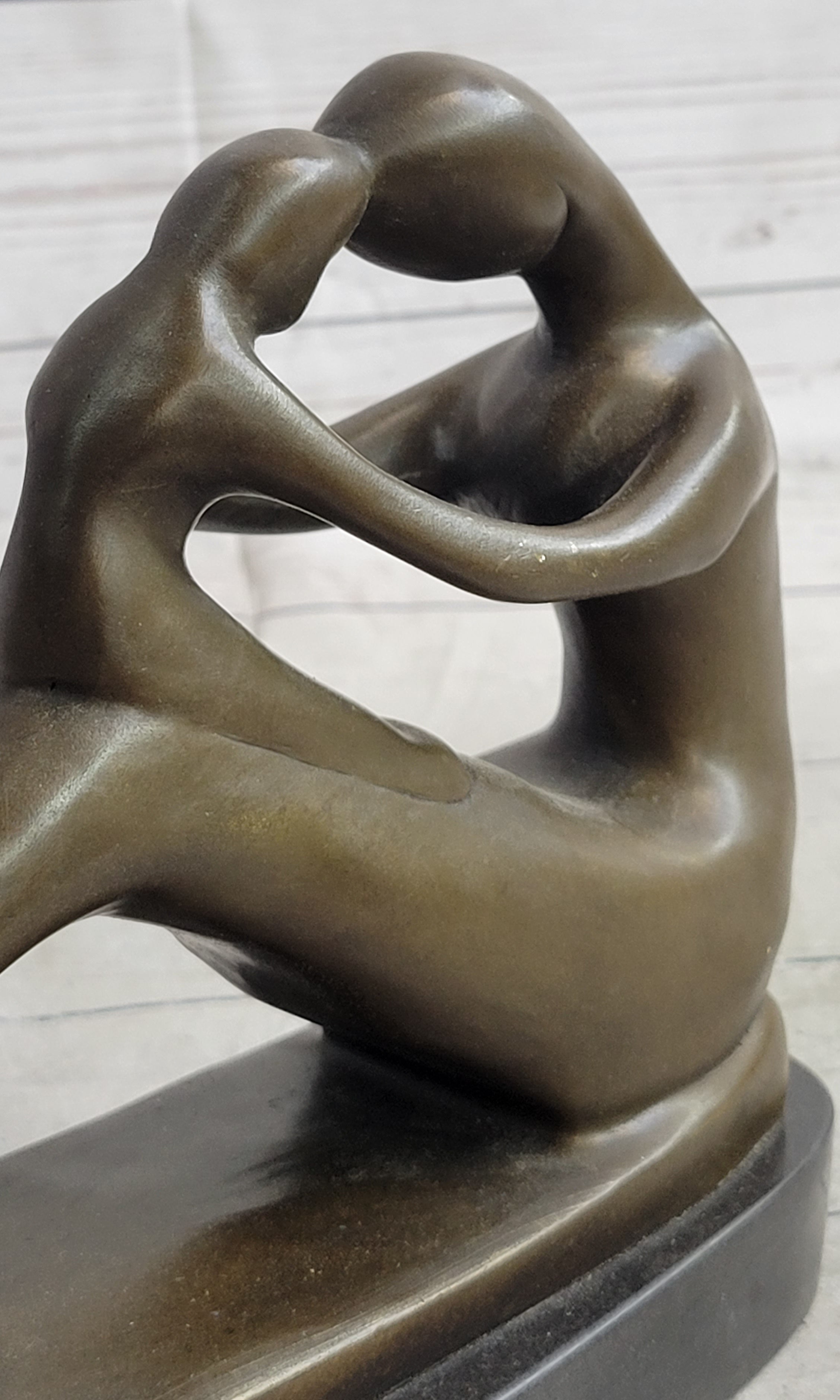 Signed Abstract Modern Art Nursery Decor Mother Child Love Bronze Sculpture by Milo