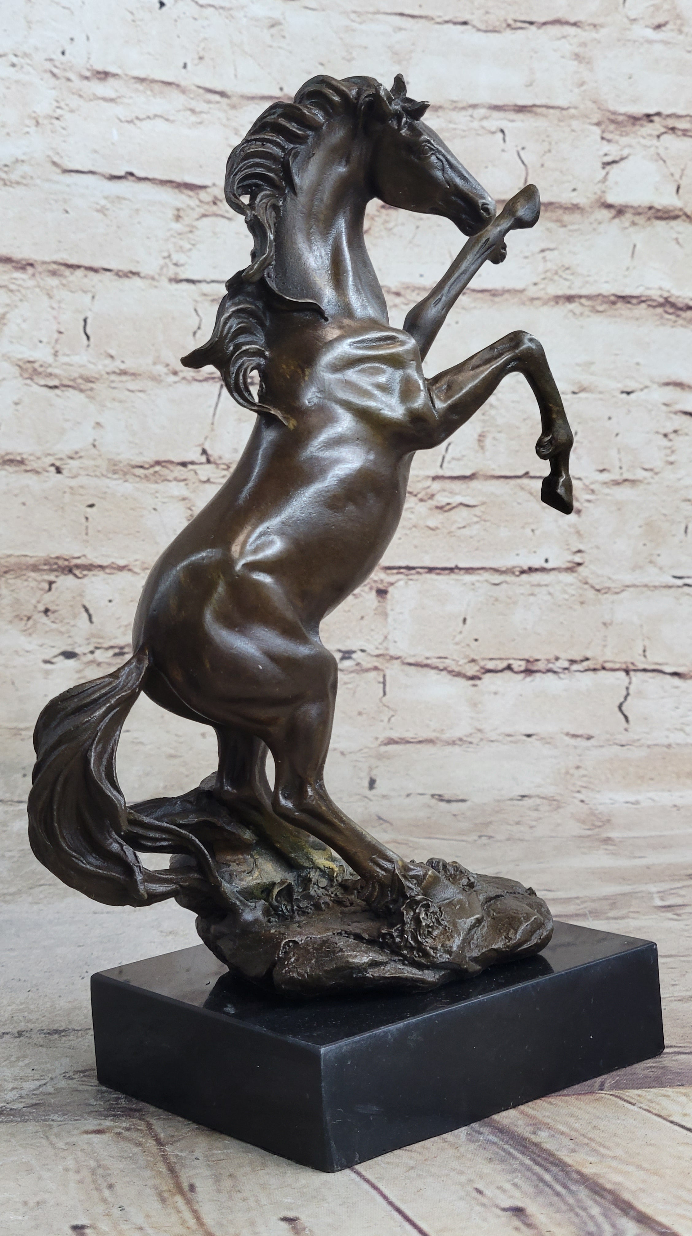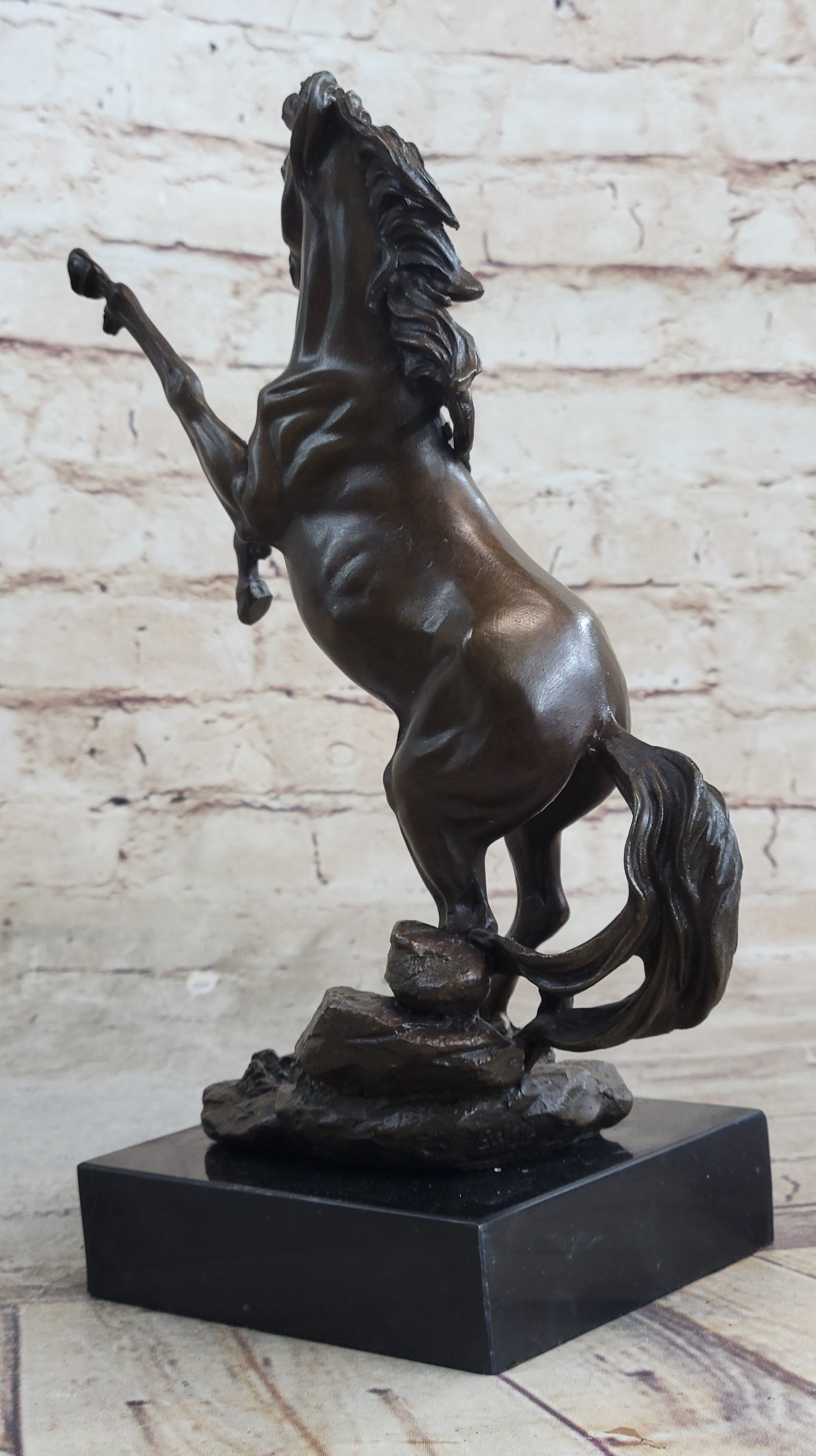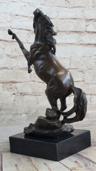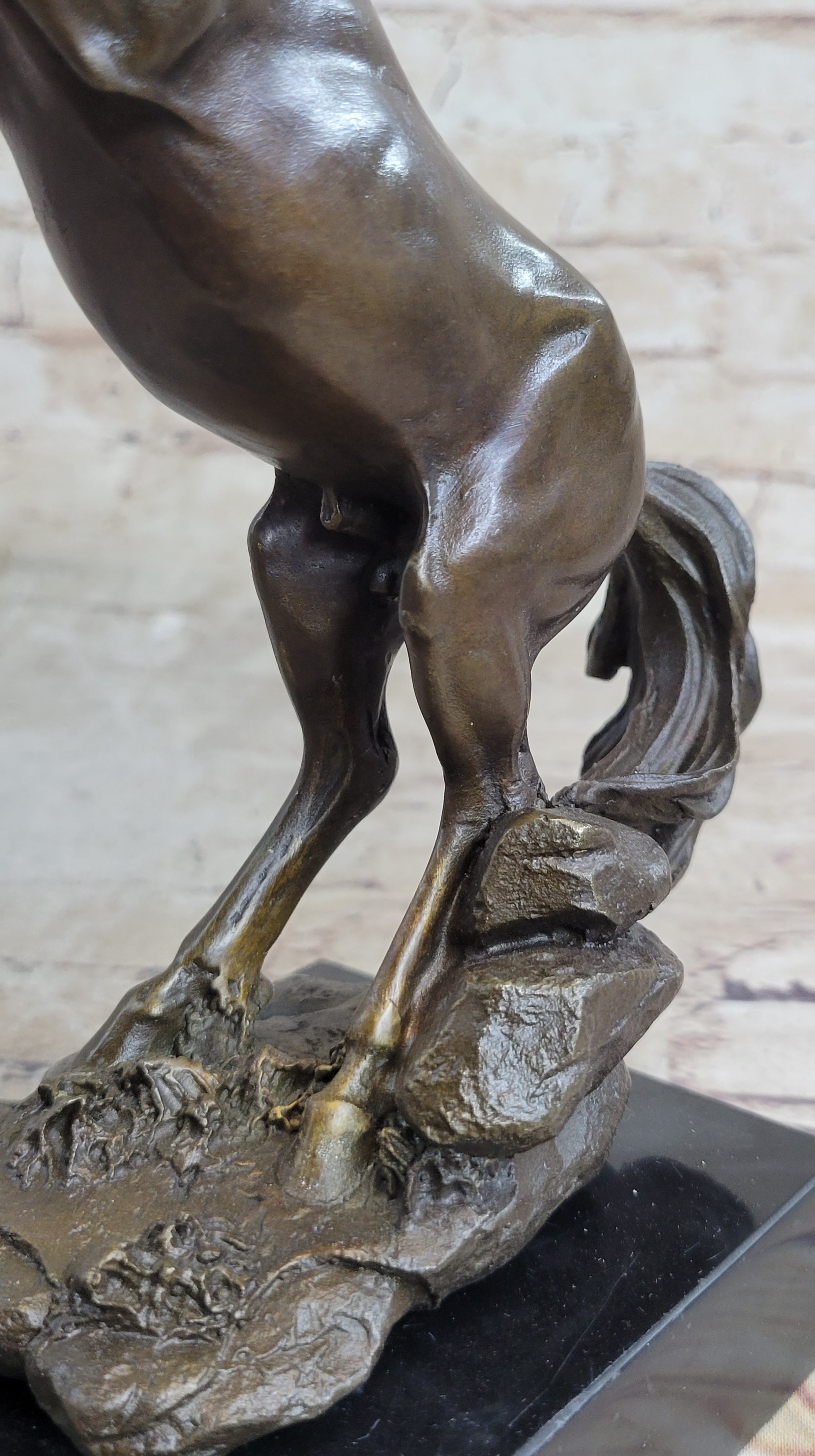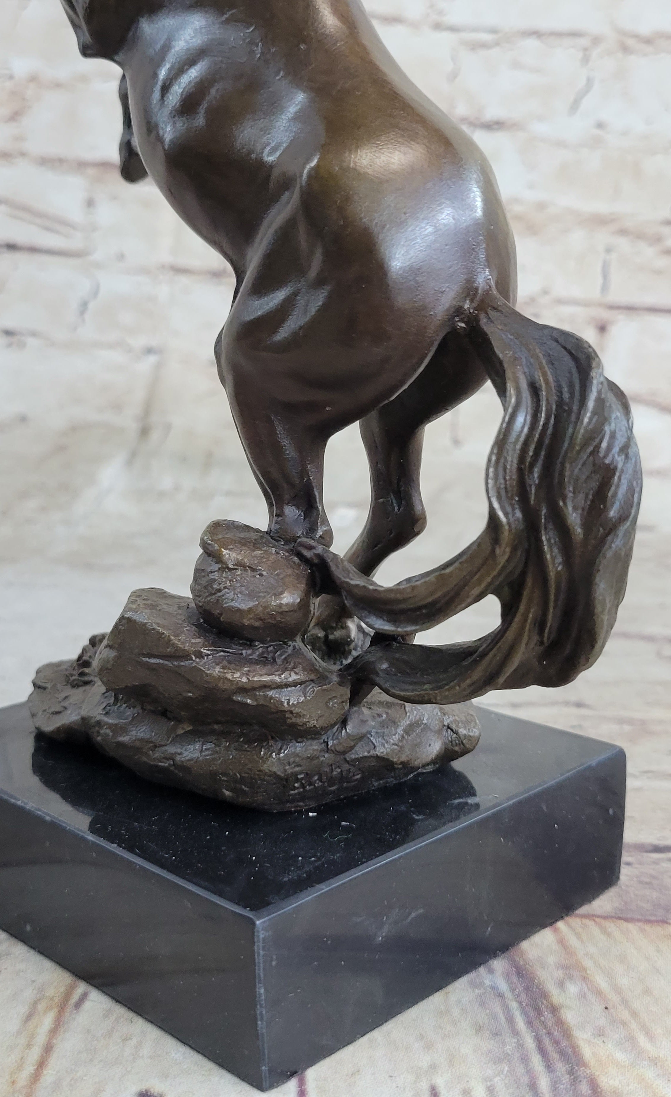 Signed Barye Wild Stallion Horse Bronze Marble Base Figurine Home Decor Art Deco