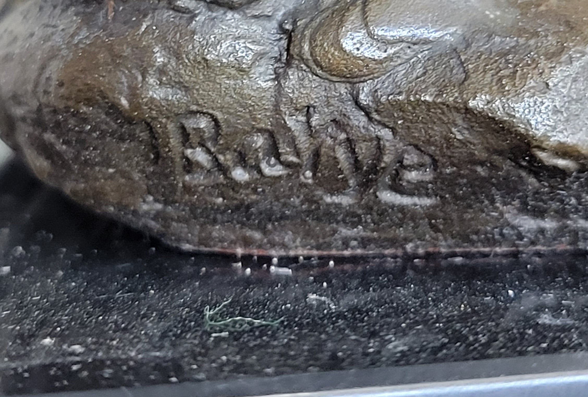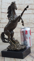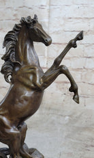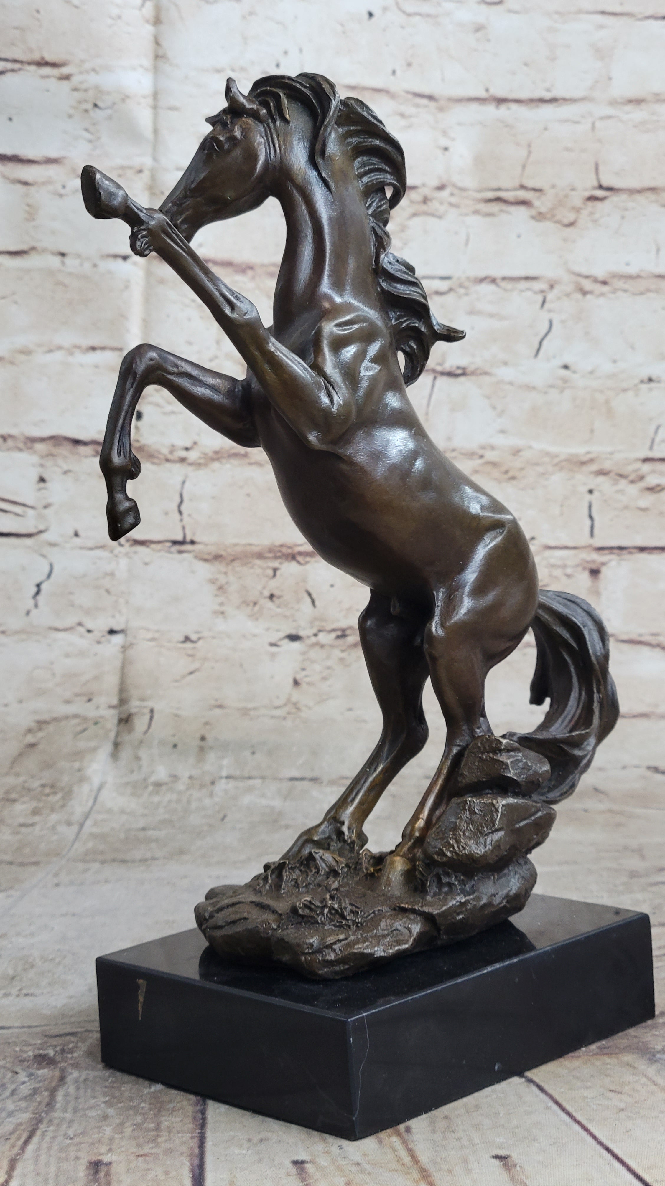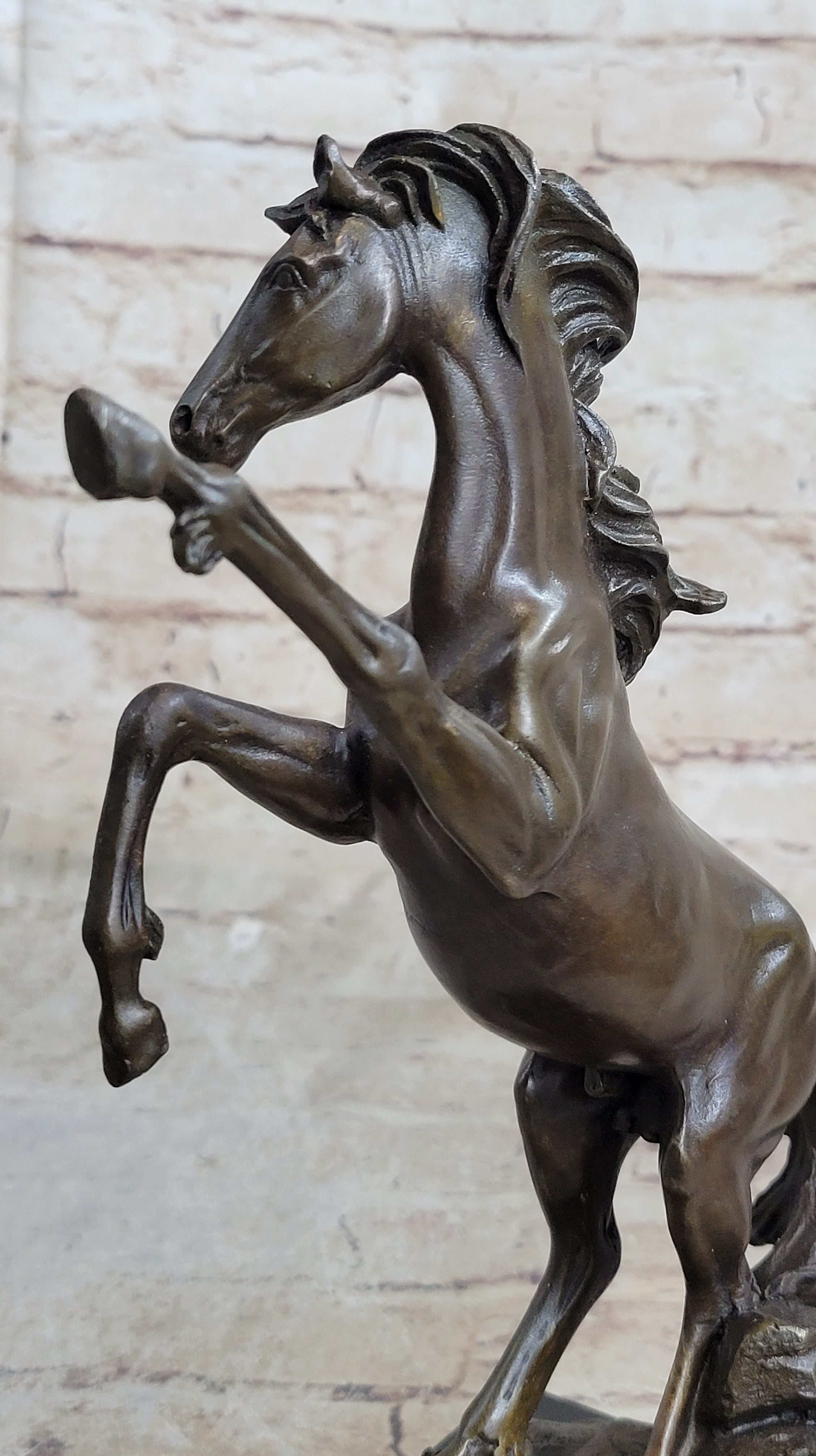 Signed Barye Wild Stallion Horse Bronze Marble Base Figurine Home Decor Art Deco