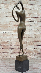 A true collector's item, this bronze sculpture is signed by the renowned artist Milo, attesting to its authenticity and artistic value. Whether displayed in a gallery, home, or office, the Signed Original Miguel Lopez Abstract Modern Art Female Bronze Sculpture invites viewers to interpret its unique form and appreciate the beauty of abstract expressionism.Bronze Dimensions with Marble Base: Height 21" X Width 5"