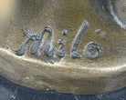 Enhancing its allure, a rich brown patina sweeps across the surface, infusing the sculpture with an air of timeless elegance and artistic depth. Subtle yet impactful gold accents highlight the sculpture's intricate details, casting a radiant glow that dances along its contours. The sculpture bears the esteemed signature "Milo," a mark of authenticity and a nod to the skilled hands that brought this masterpiece to life. A true embodiment of artistic innovation and reverence for tradition, the Miguel Lopez Tang Horse Sculpture is a captivating addition to any art collection, an ode to the past reimagined for the present.