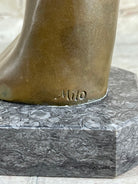 Resting on a beautifully crafted black marble base, this sculpture exudes elegance and sophistication. The combination of bronze and marble enhances its visual impact, creating a striking contrast and adding a touch of luxury to any space. The sculpture is signed by the renowned artist Milo, a testament to its exceptional quality and artistic value.
