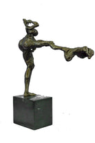 Over time, the Spirits became less concerned with the portrayal of the figure than with the idea of the figure as it disintegrated and much of the surface area was broken away. On their deteriorating exterior surfaces the pieces shows evidence of our material reality. They began to take on a layered appearance that represent the masks and walls that our different personalities hide behind. This abstract Woman Was Cast Using The "Lost Wax Method". 100% Handmade Bronze And Carefully Detailed This Is A Priceless Limited Edition Piece Of Work And Is Signed By Artist R.Cook.Bronze Dimensions with Marble Base:Height 16" X Width 12"