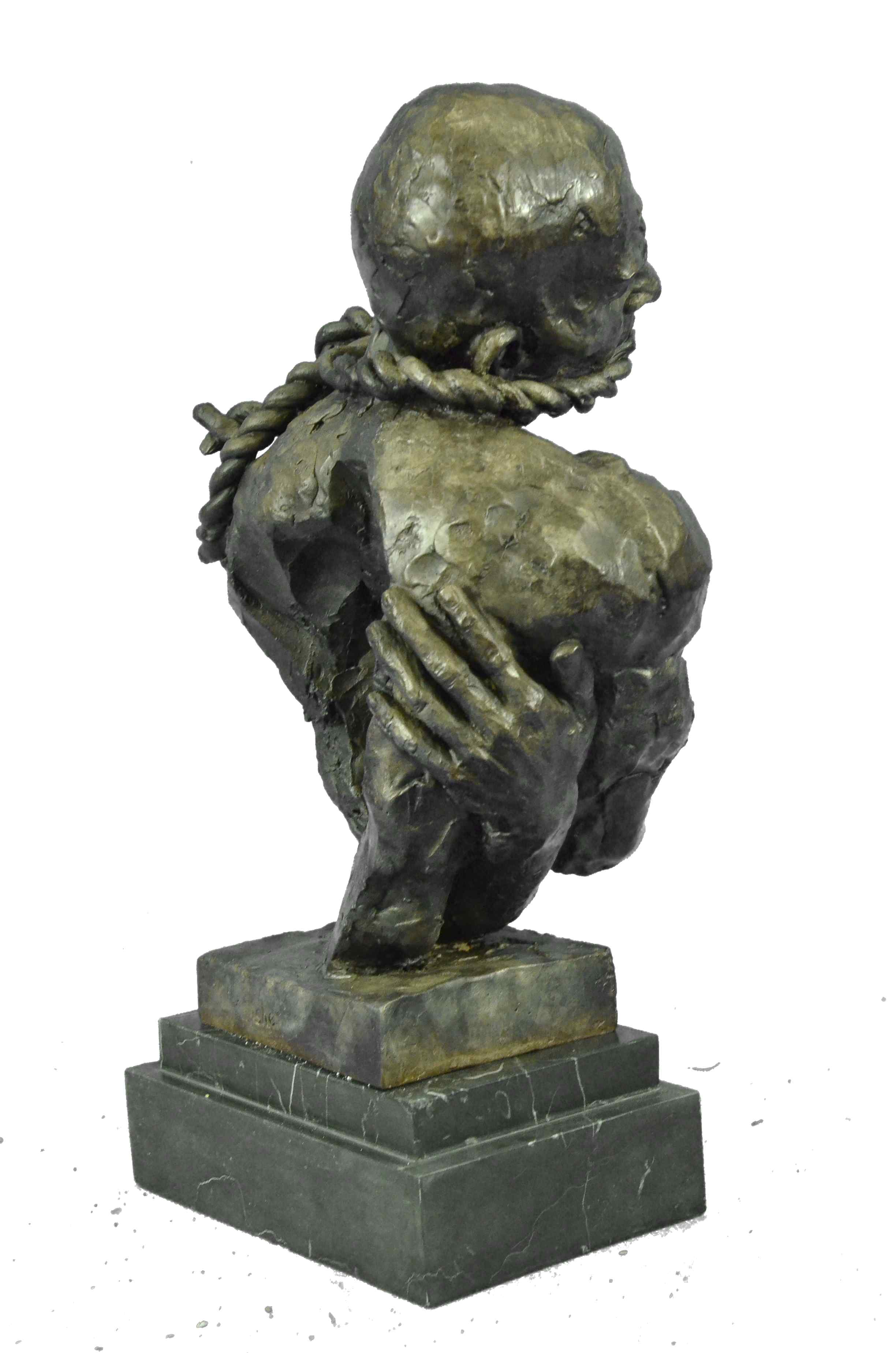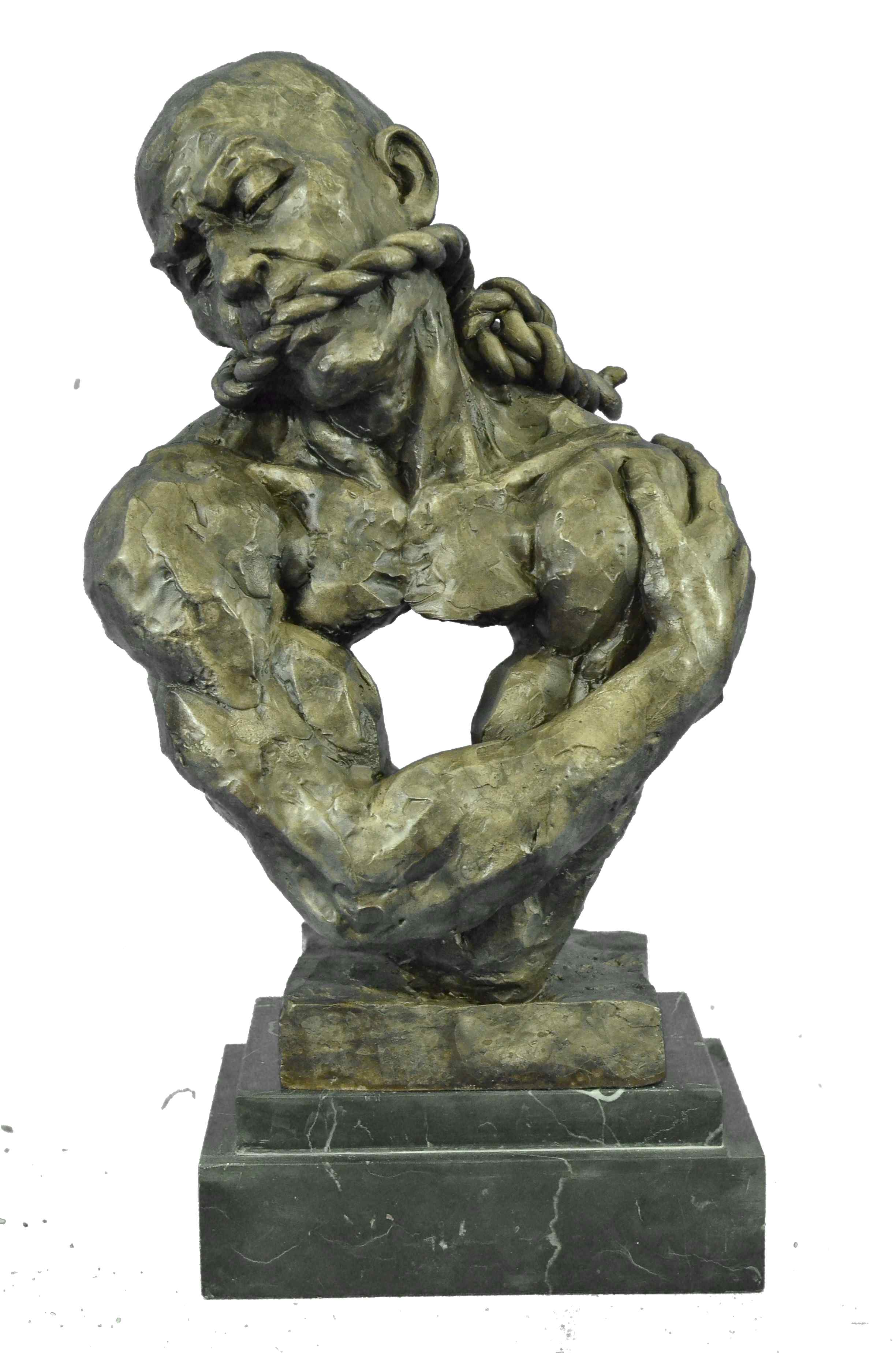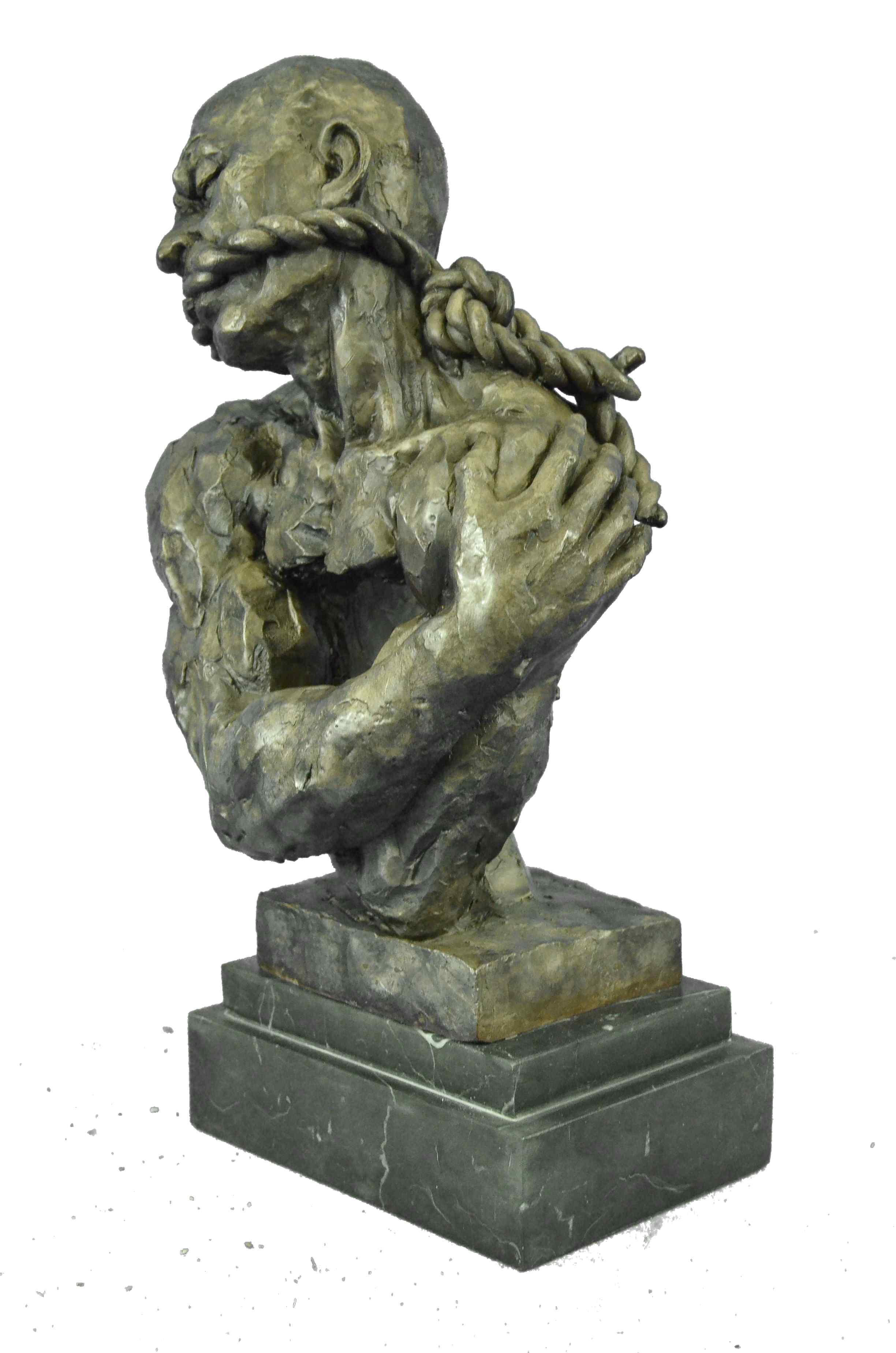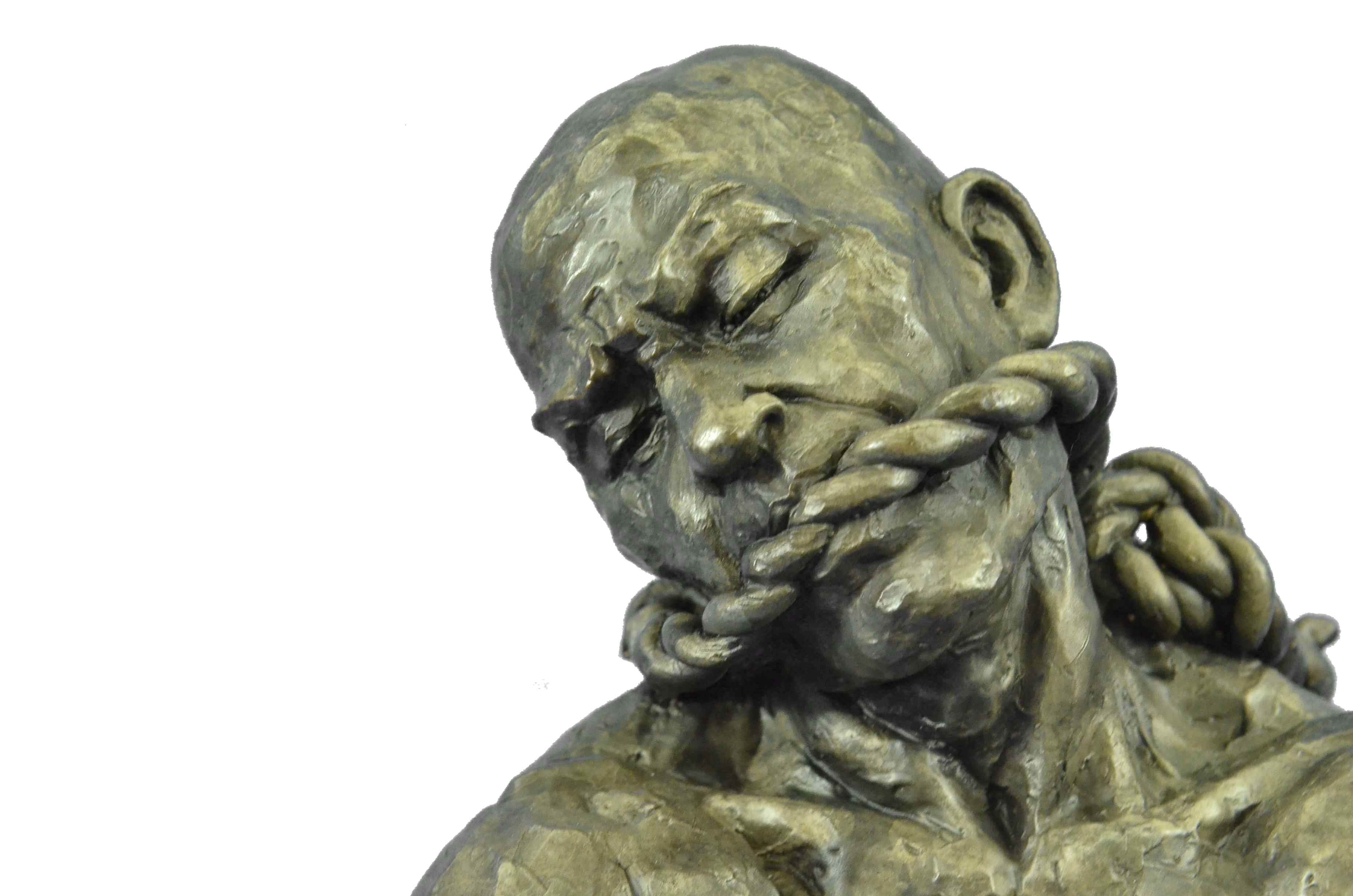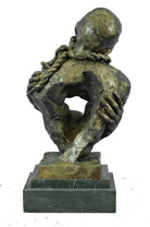 Signed Original Special Patina Man In Bondage Bronze Sculpture Marble Base Art