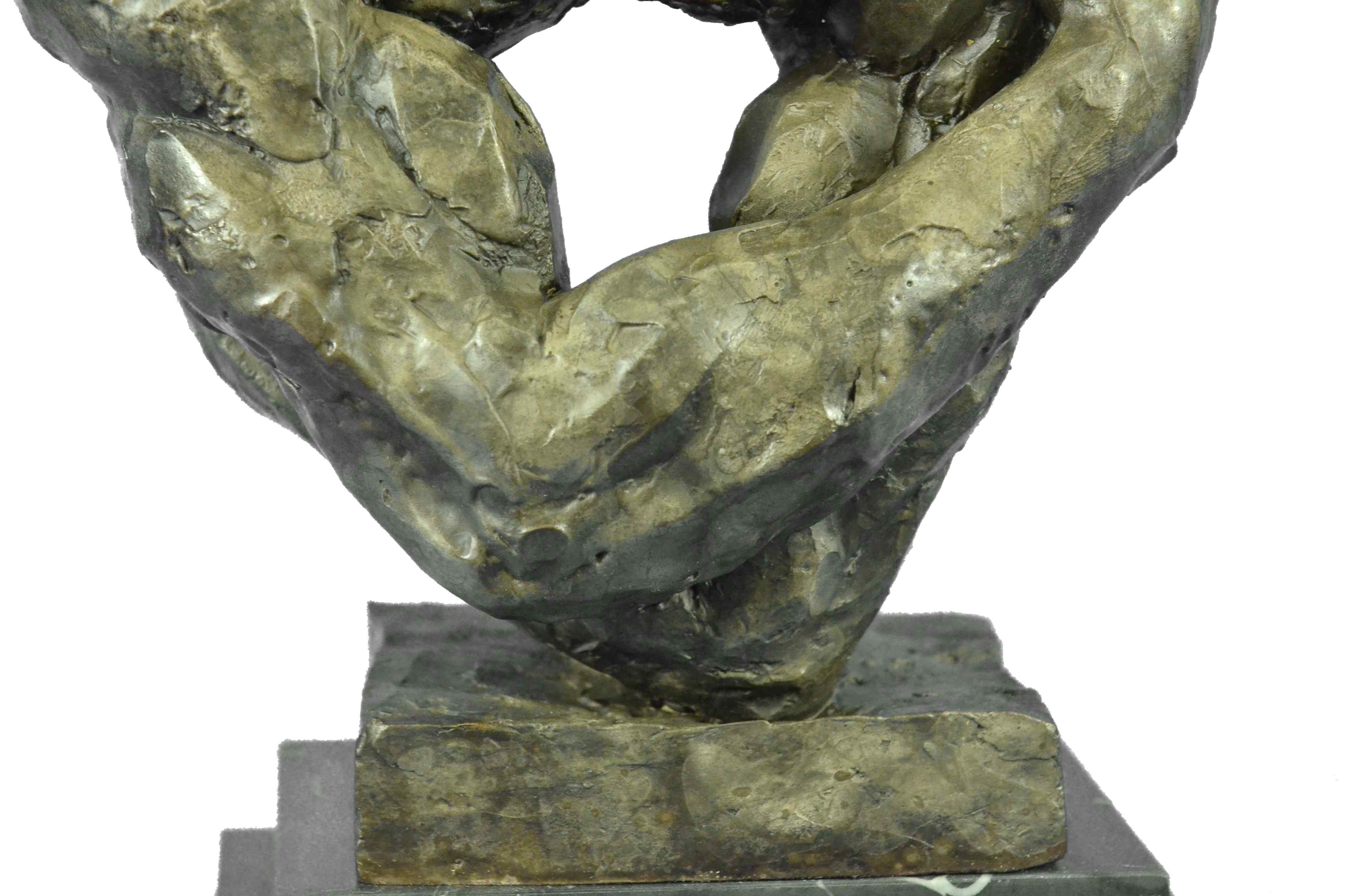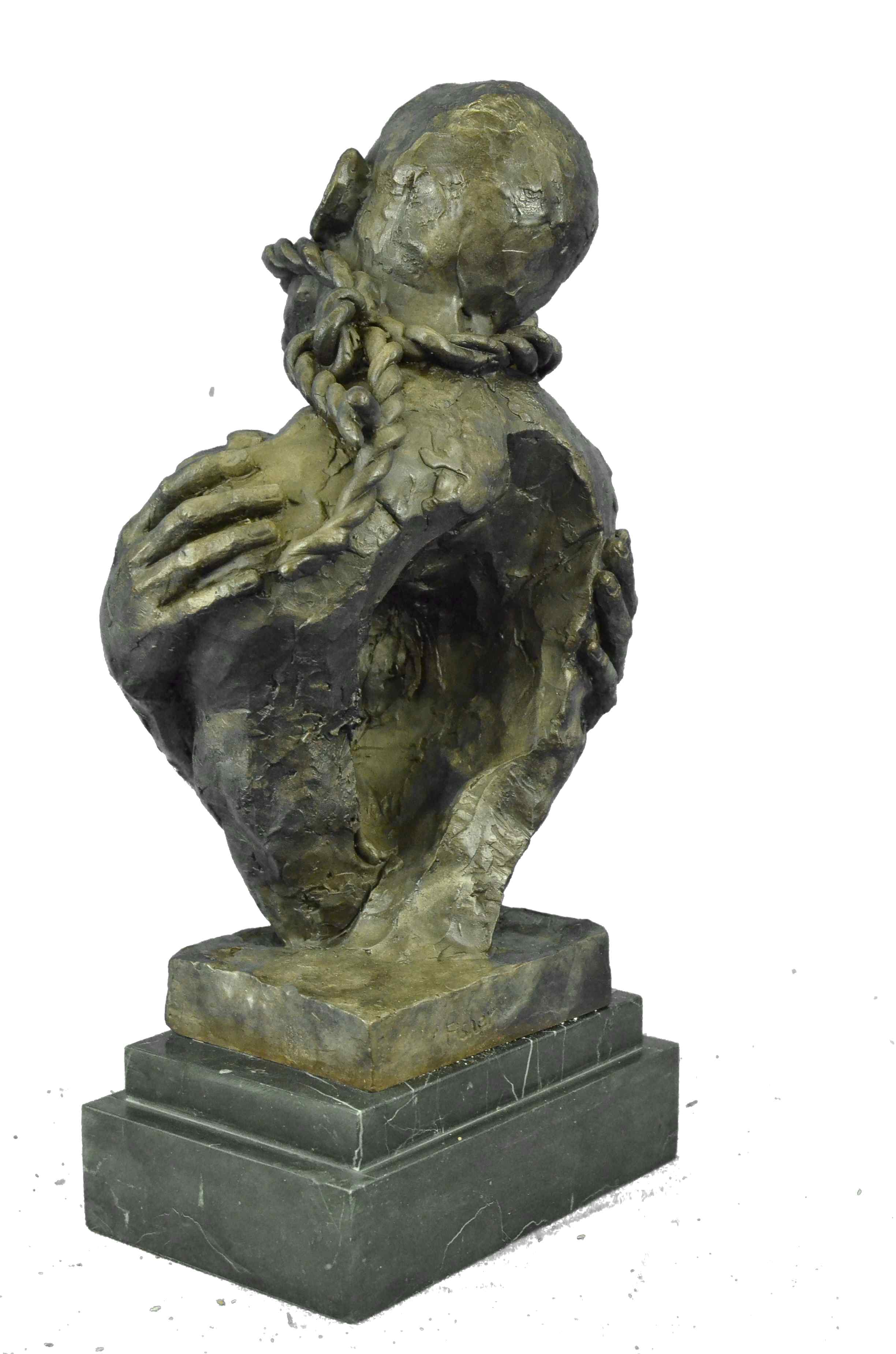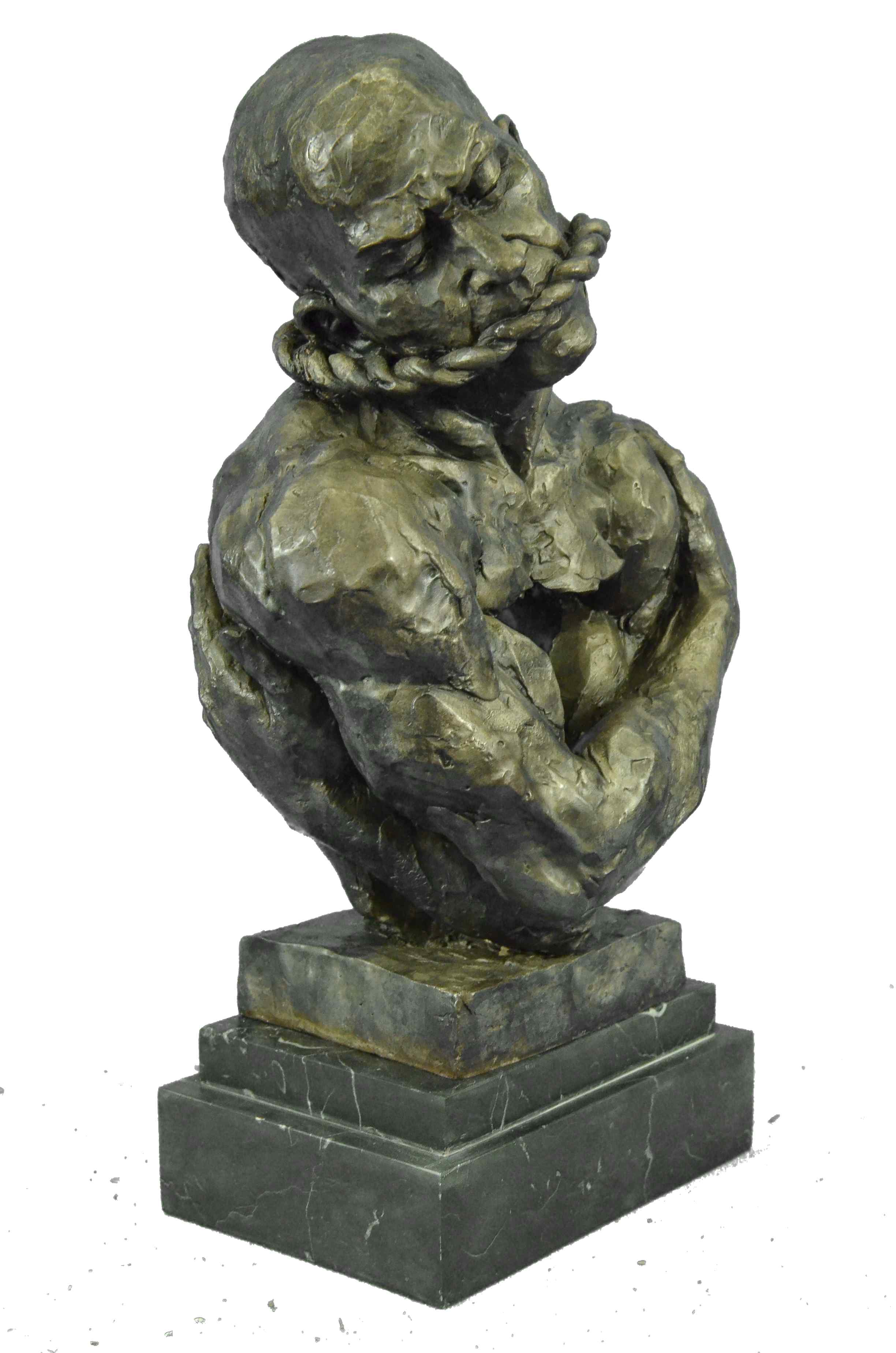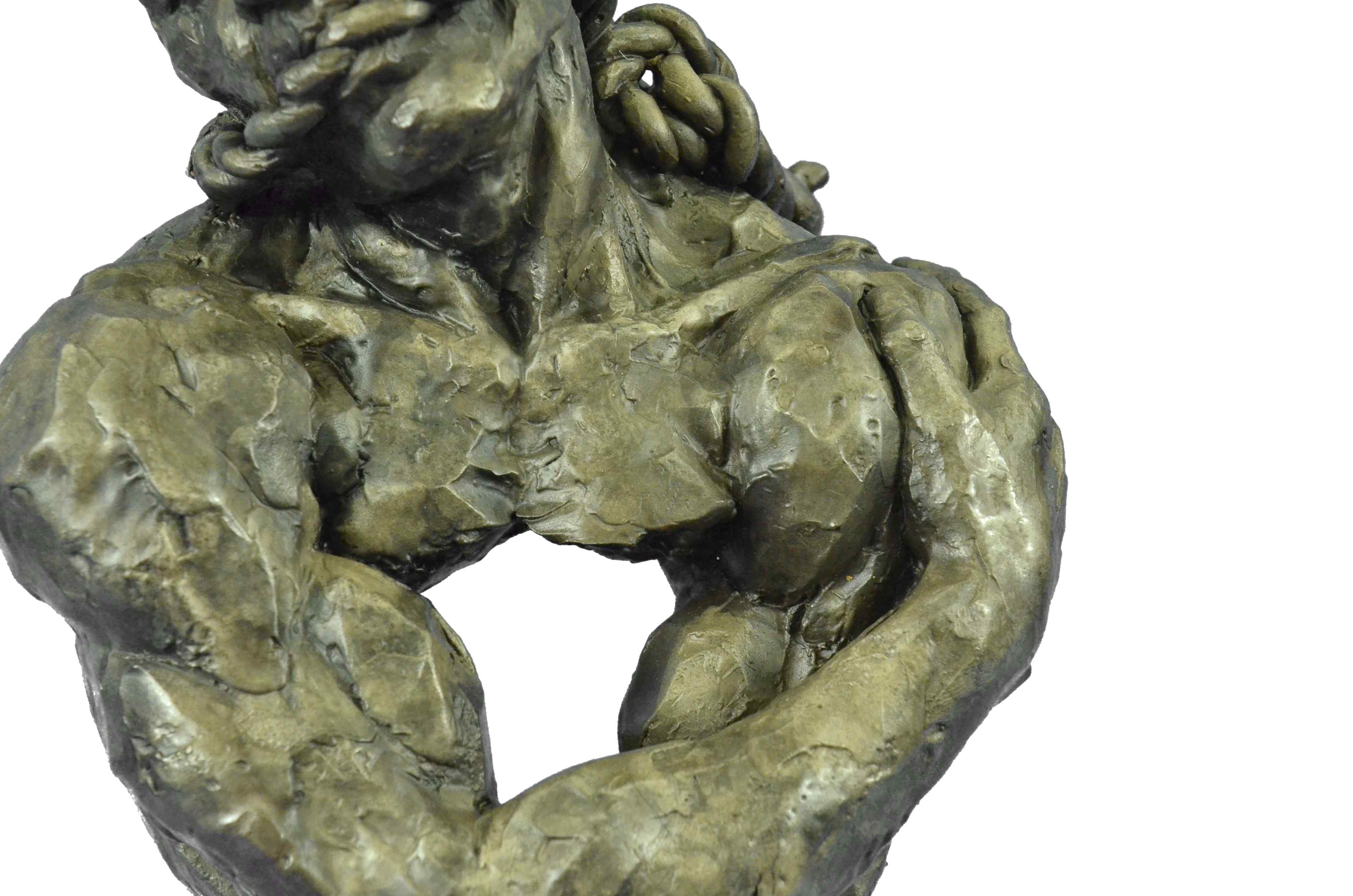 Signed Original Special Patina Man In Bondage Bronze Sculpture Marble Base Art