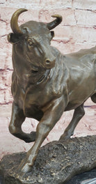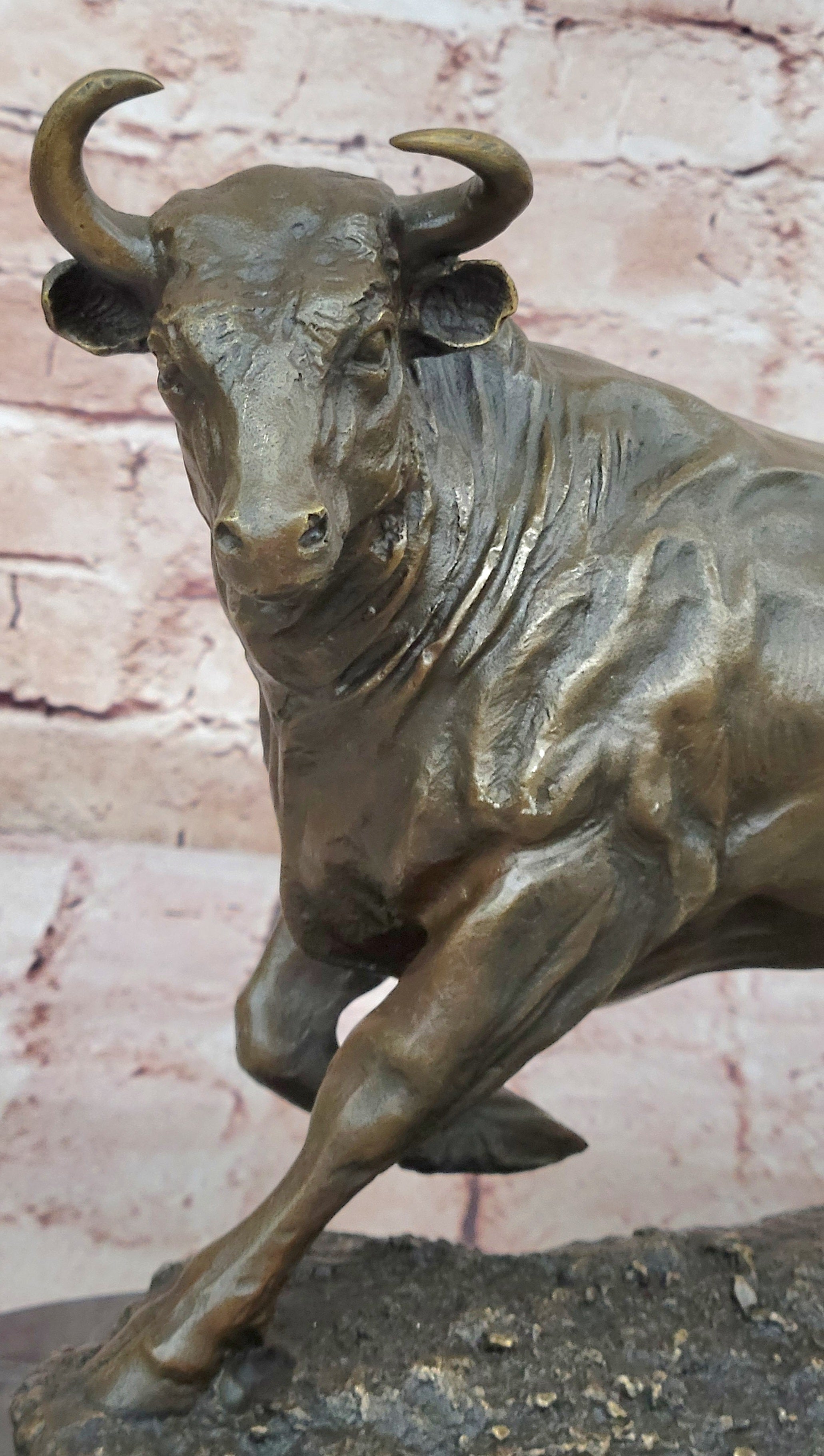 Solid Bronze Sculpture of a Bull Marble Base Abstract Art Deco Figurine Figure