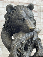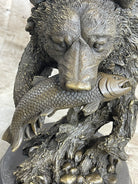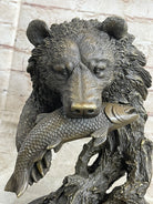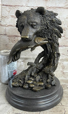 Bear Catching Salmon Bronze Metal Bust Statue Sculpture Original Art on Marble Base