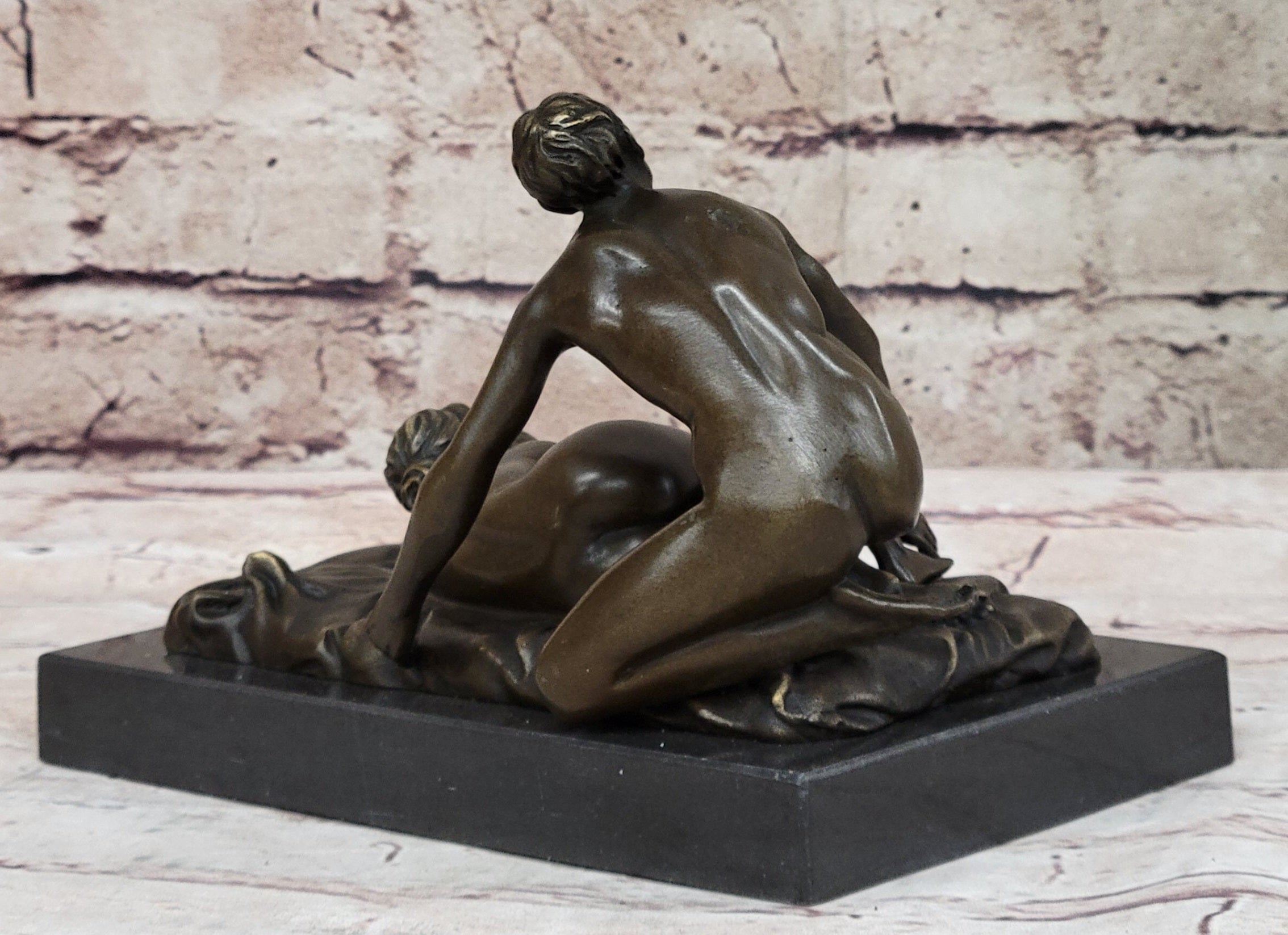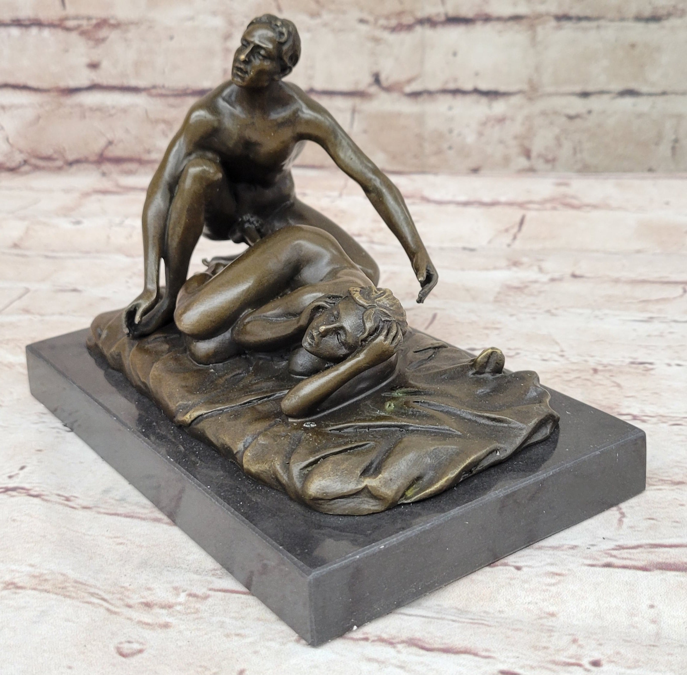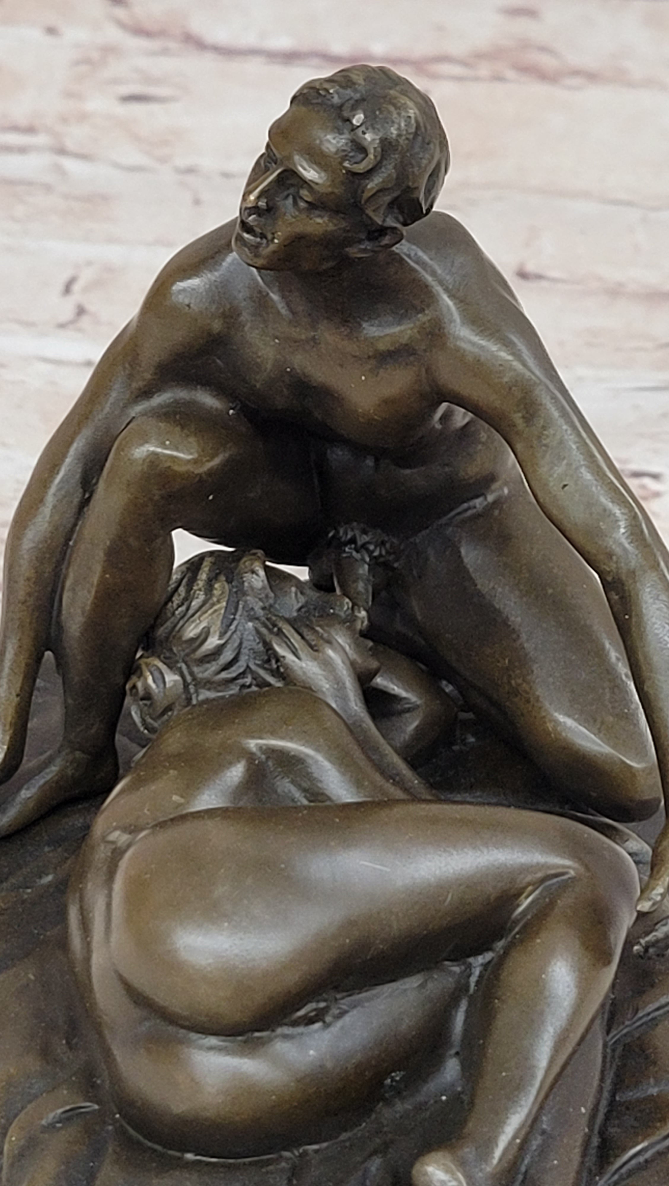 Erotic Couple Sexual Foreplay Bronze Sculpture Statue + Male Figurine 6" x 7"