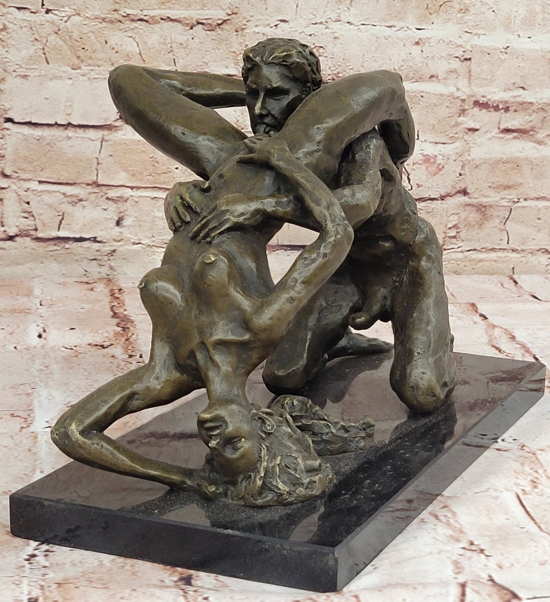 Despite the bold subject matter, this bronze sculpture is executed with fine detail and artistry, showcasing the lost wax method that ensures a high level of craftsmanship. Each curve and expression has been carefully rendered, resulting in a work that is both provocative and visually captivating.