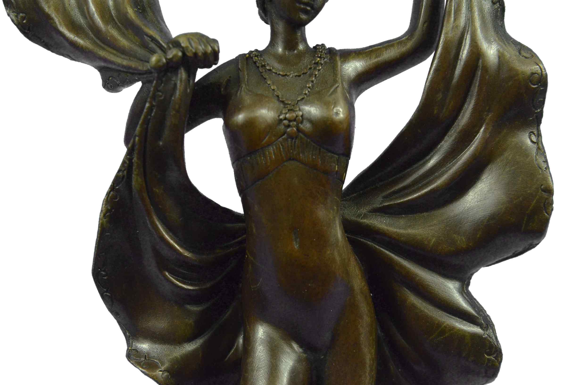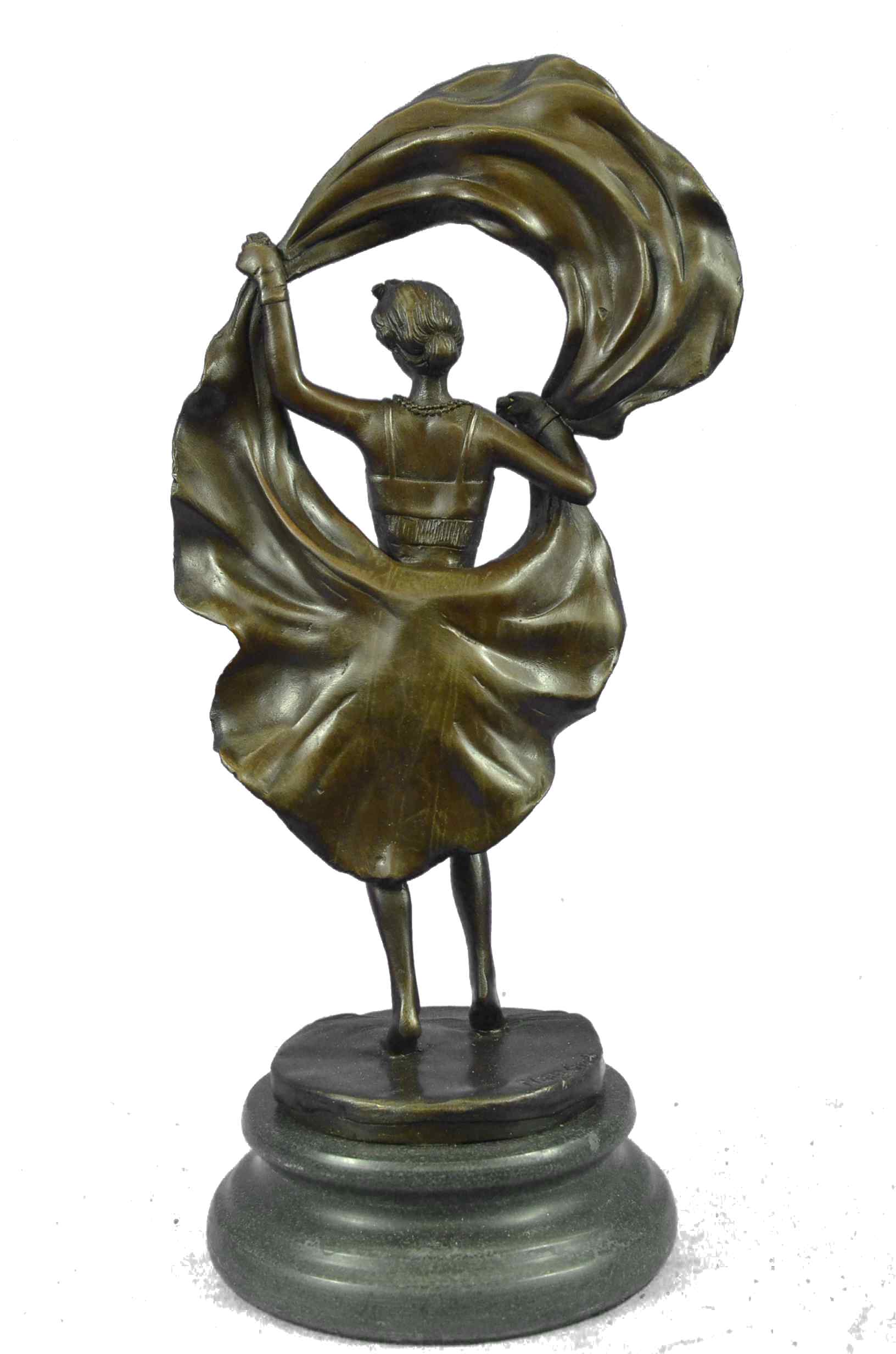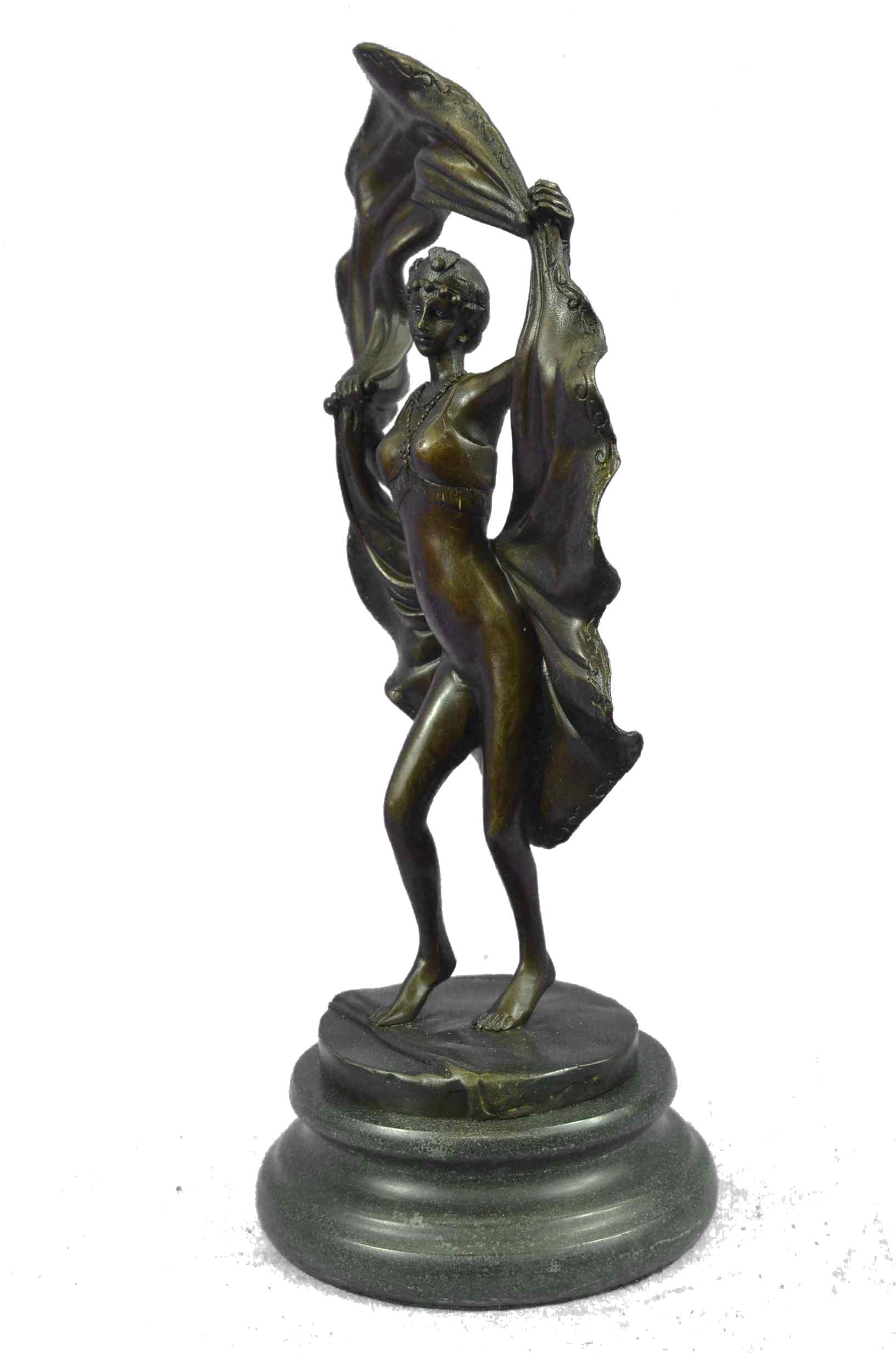 An amusing erotic bronze figure of a young dancer with fine Hot painted color and good detail, the skirt hinged to reveal her naked body, signed `Nam Greb` to the base and raised on a round black marble plinthBronze Dimensions with Marble Base:Height 12" x Width 6"