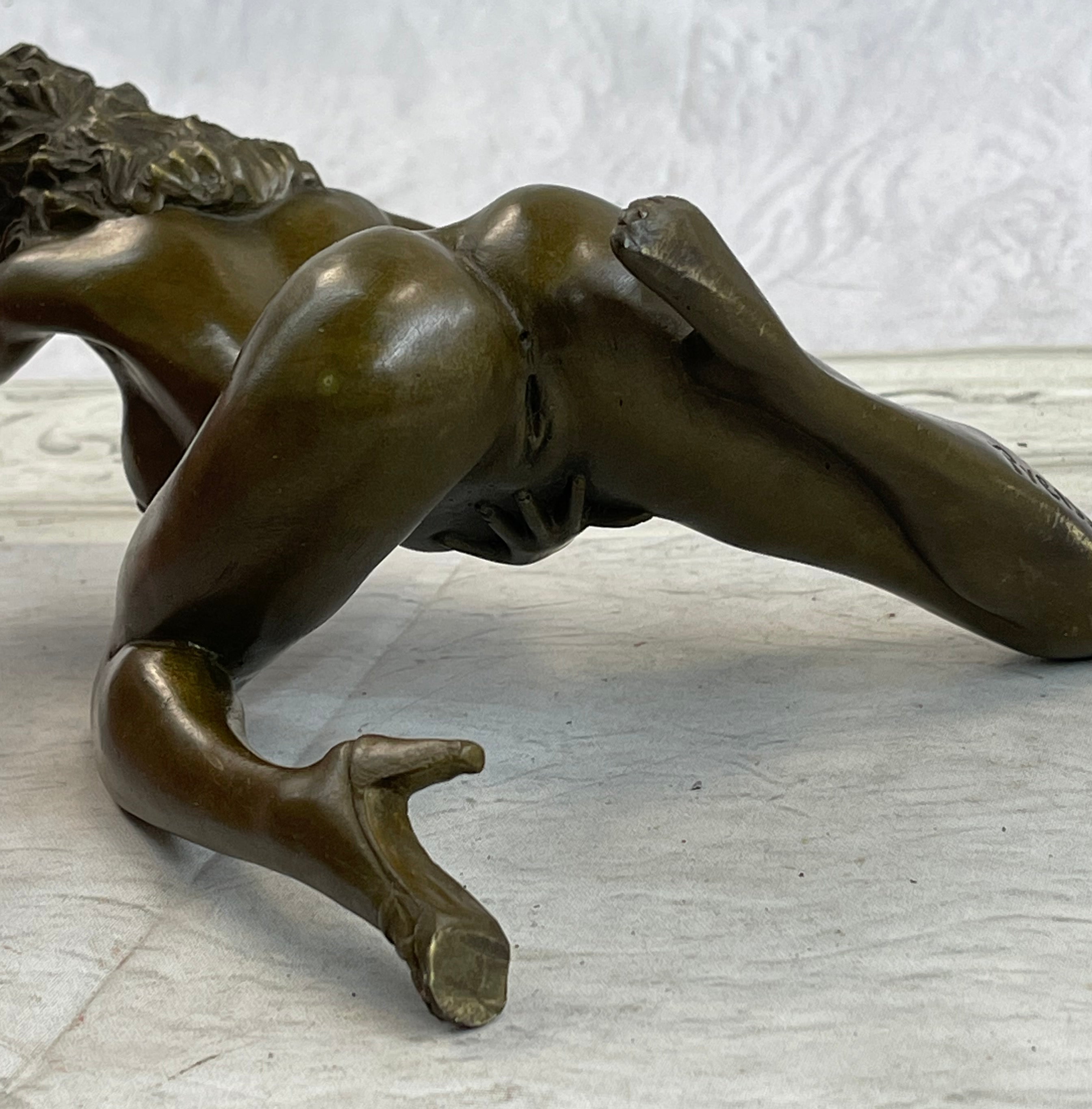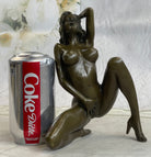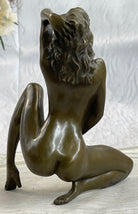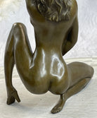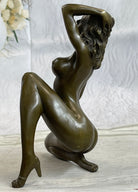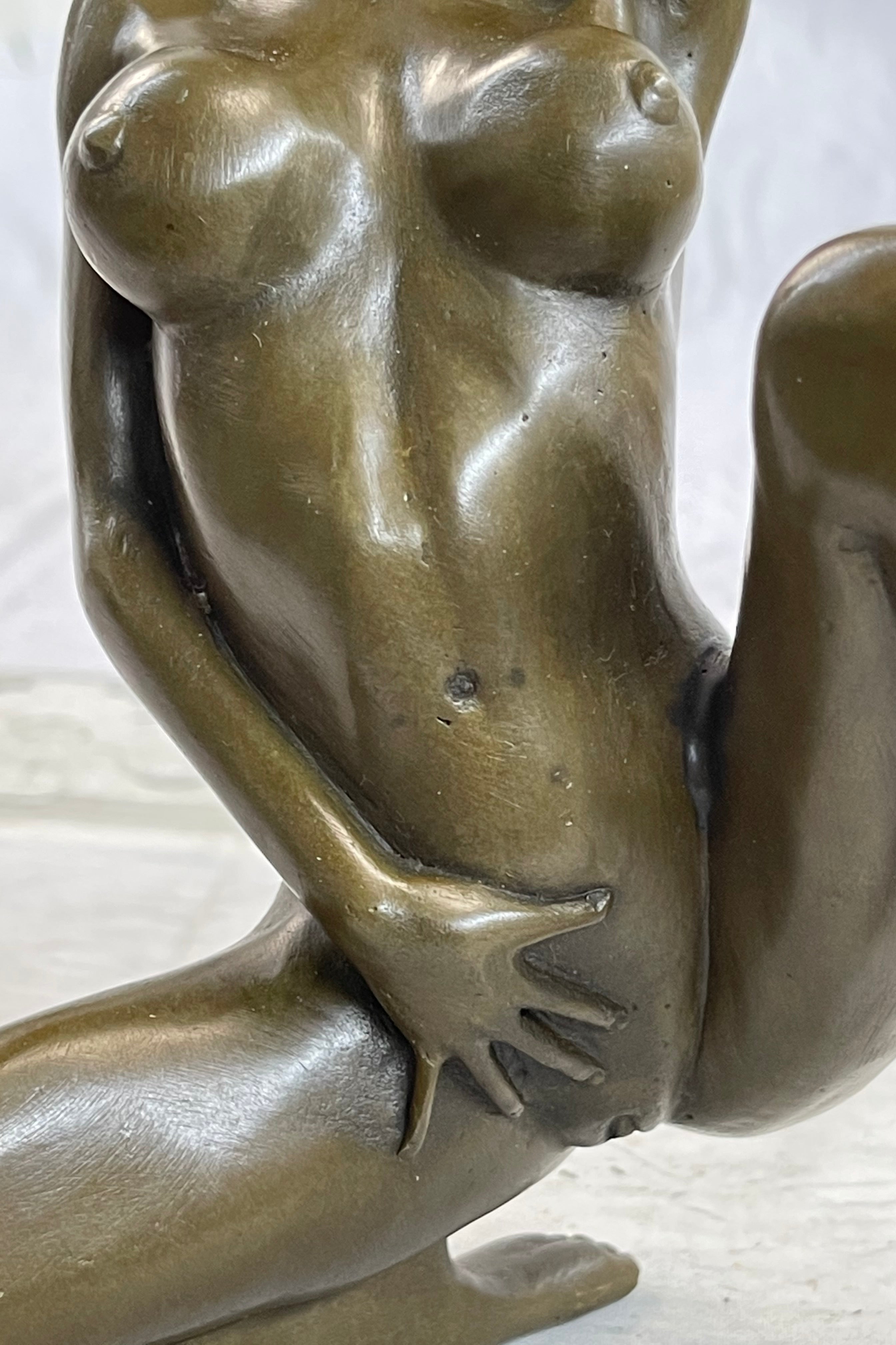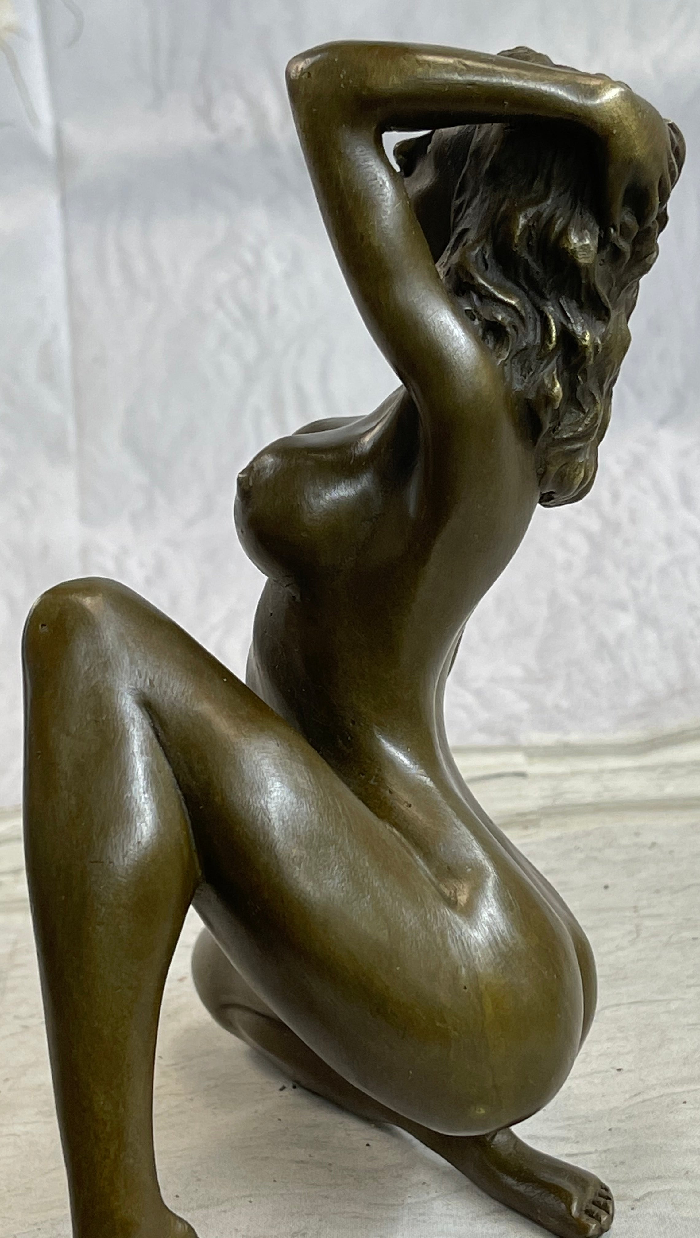 Erotic Bronze Figurine Sculpture Girl Female Touching Herself Signed Original Art 8" x 8"