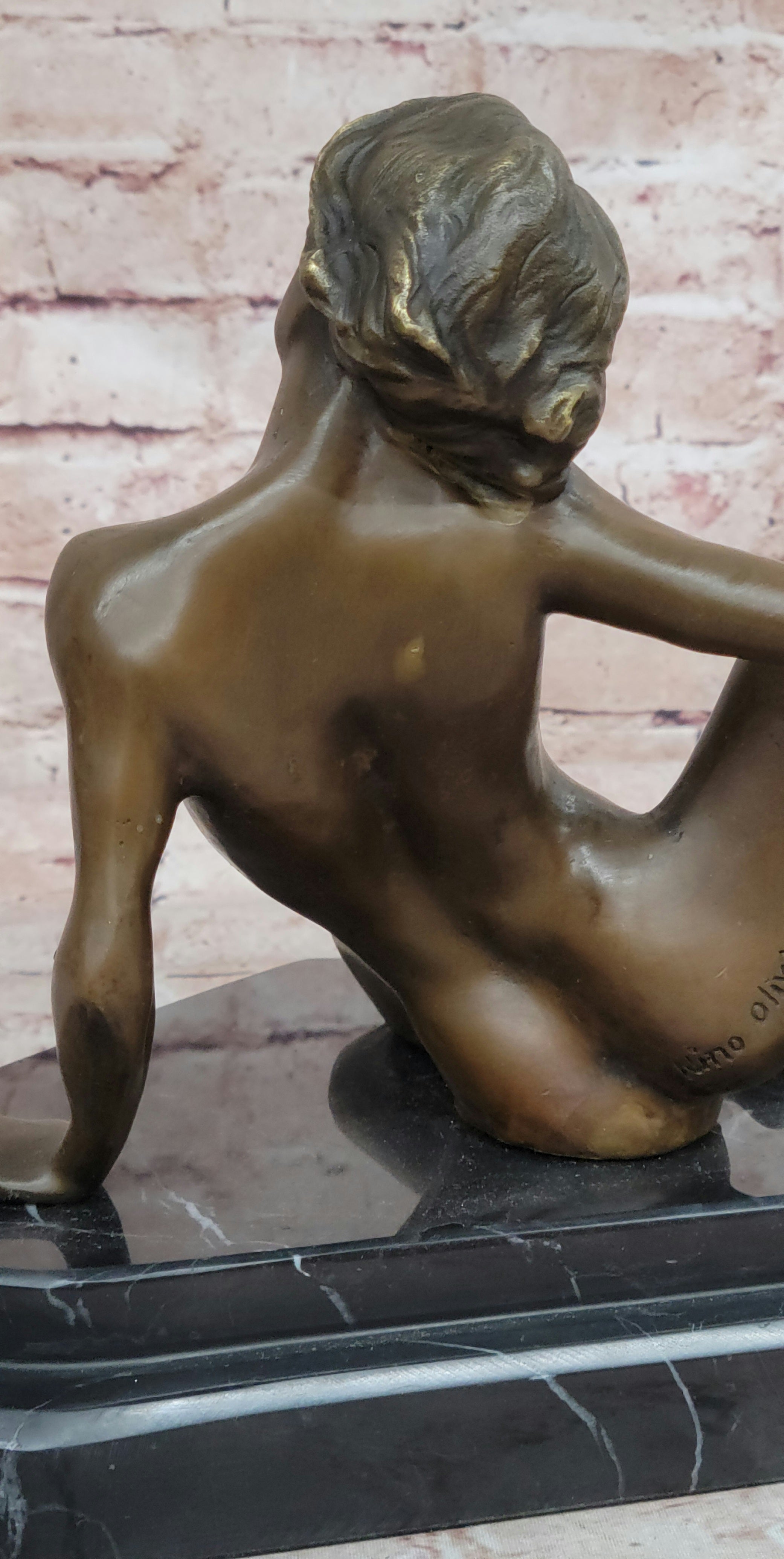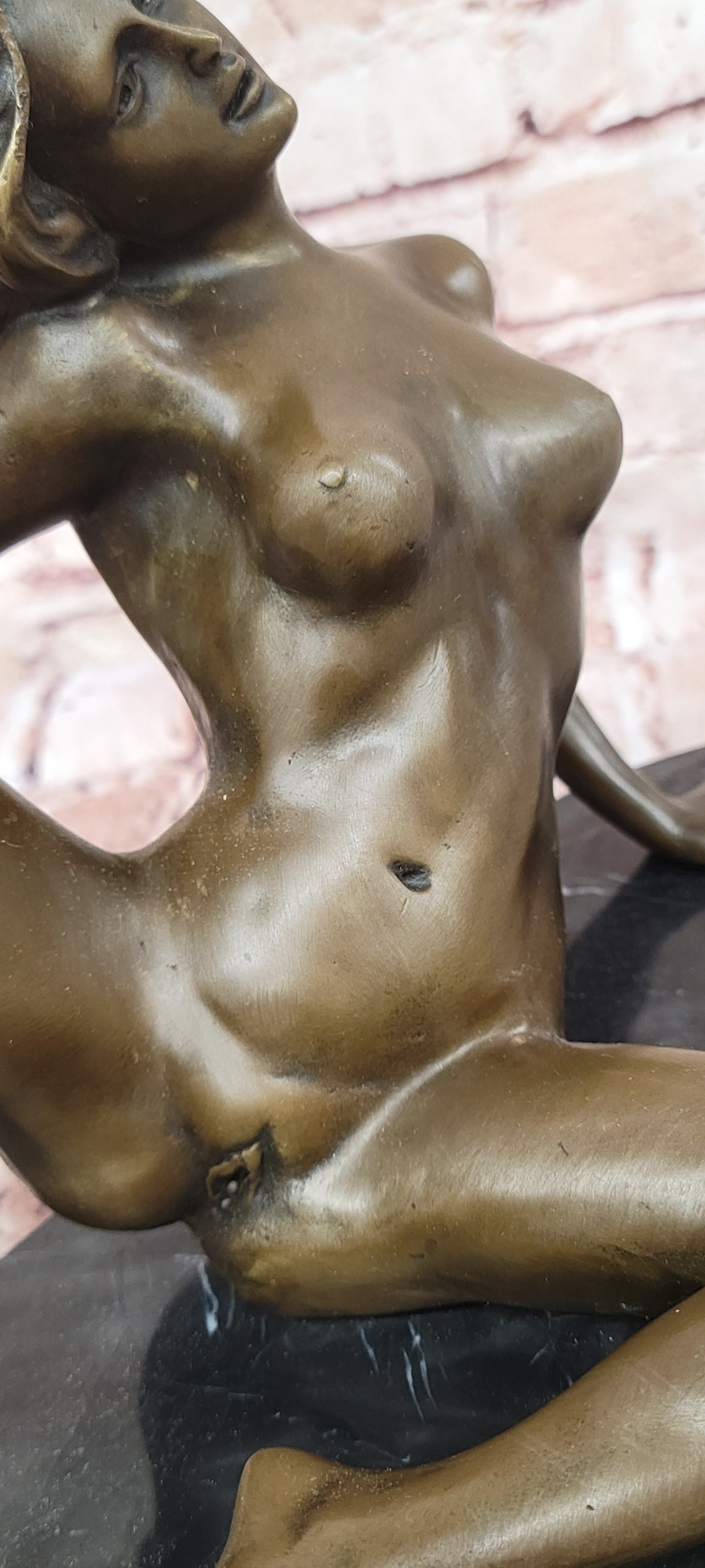 Erotic Bronze Sculpture Statue Exhibitionist Girl Marble Base Signed Modern Art 10" x 11"