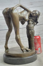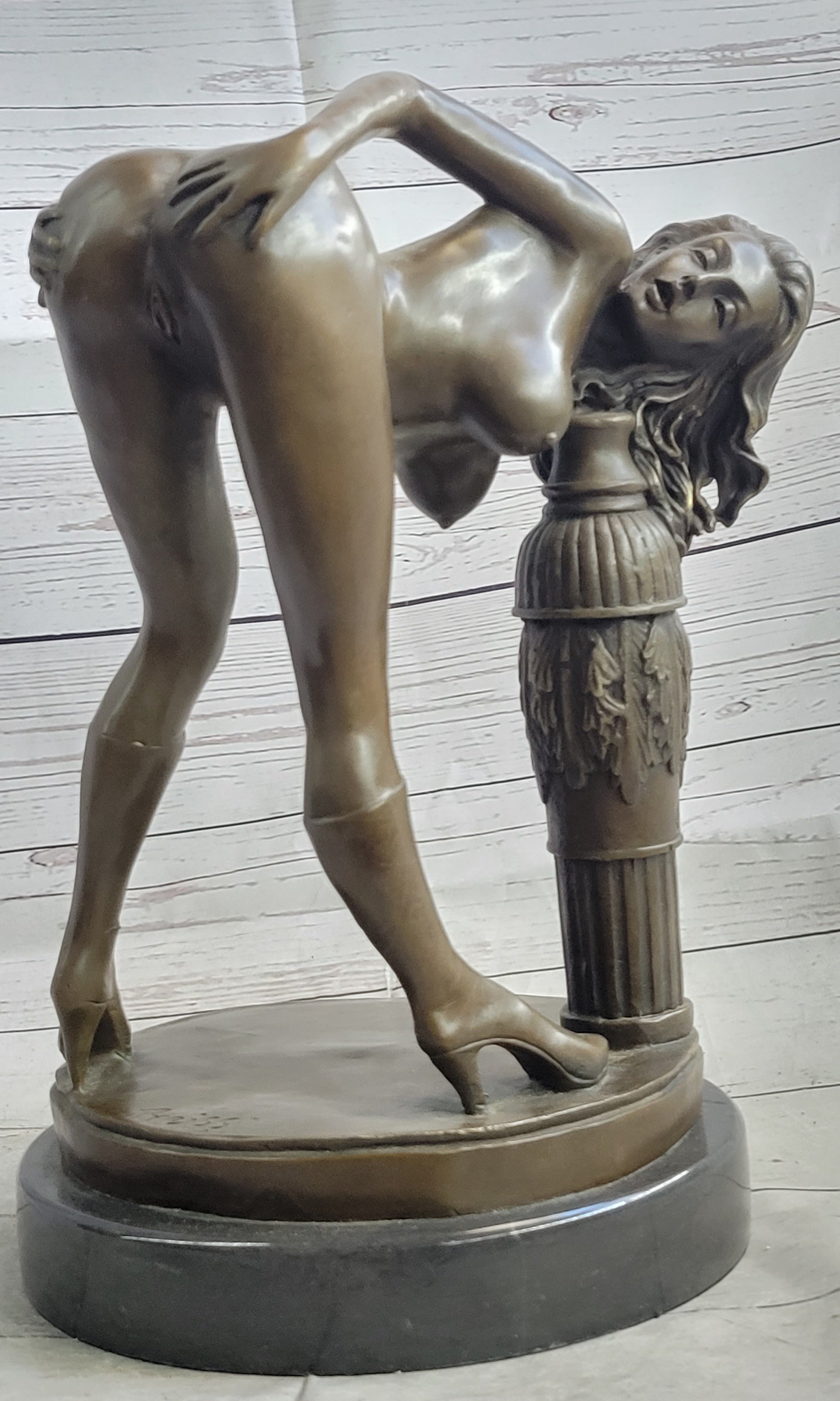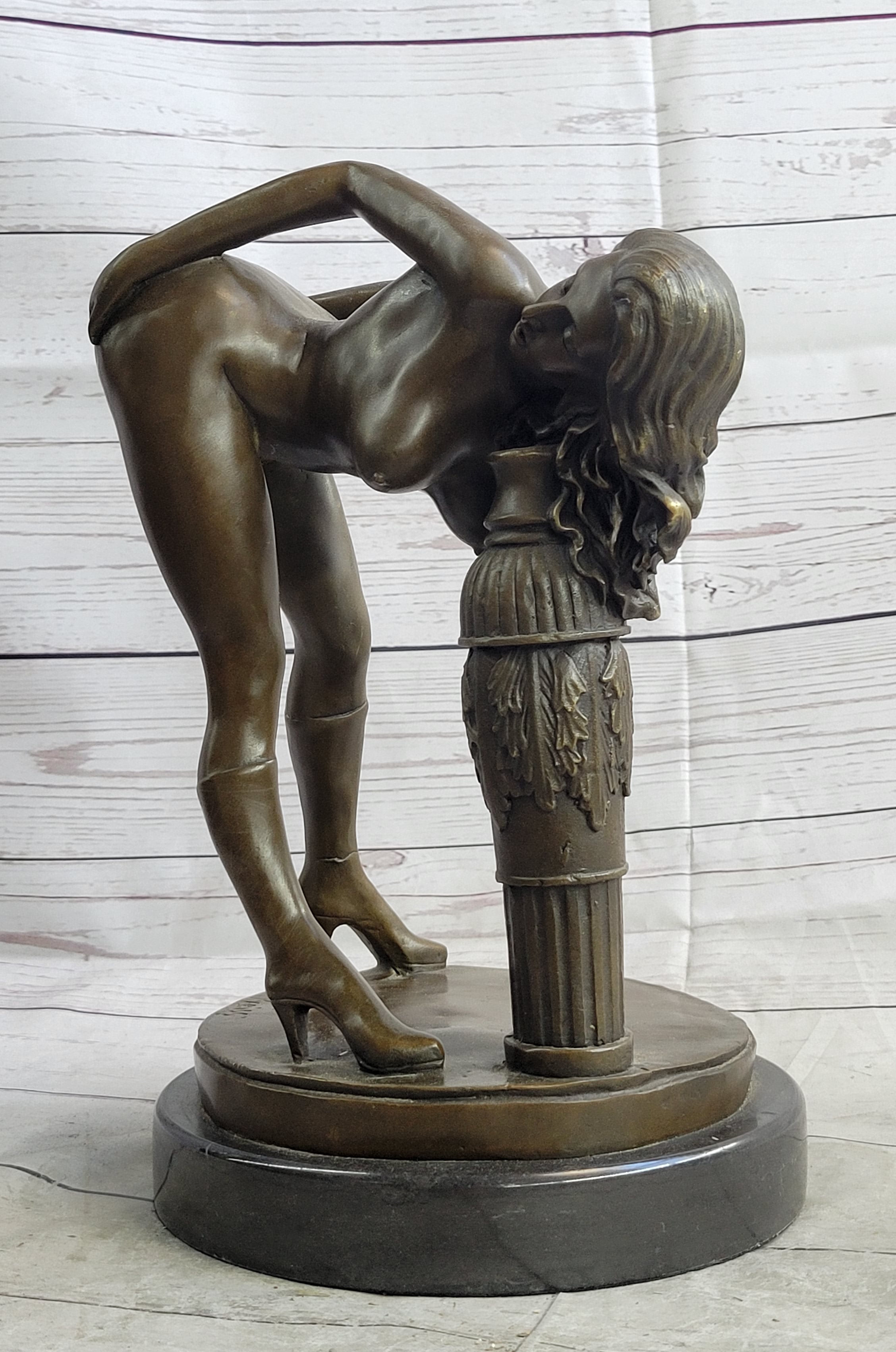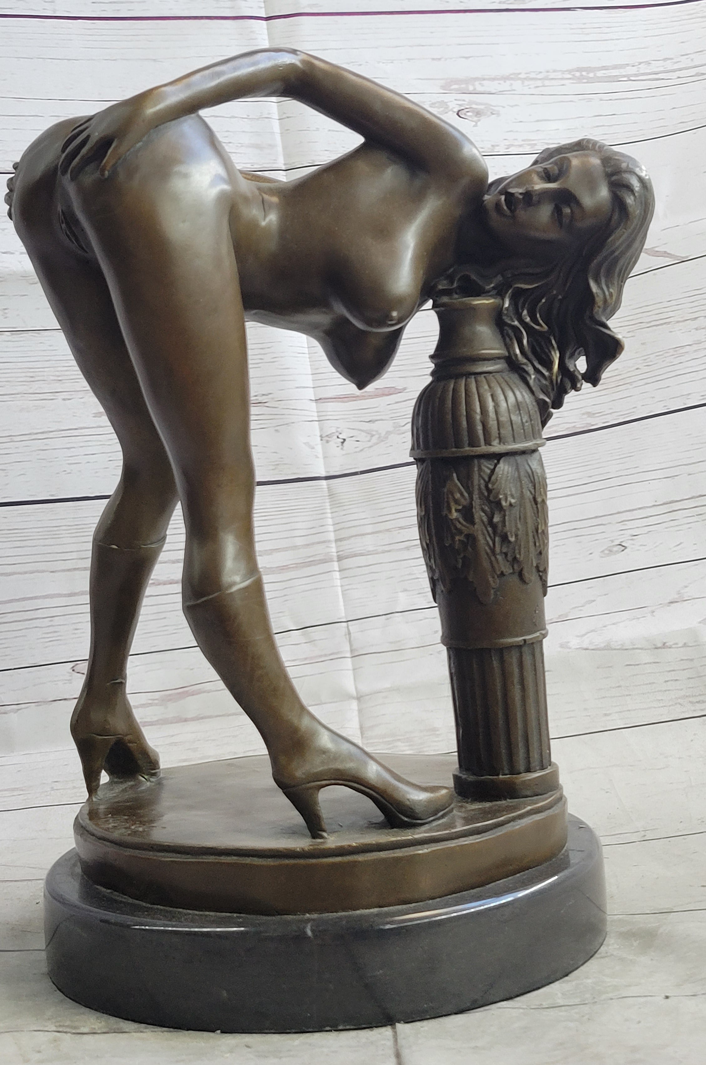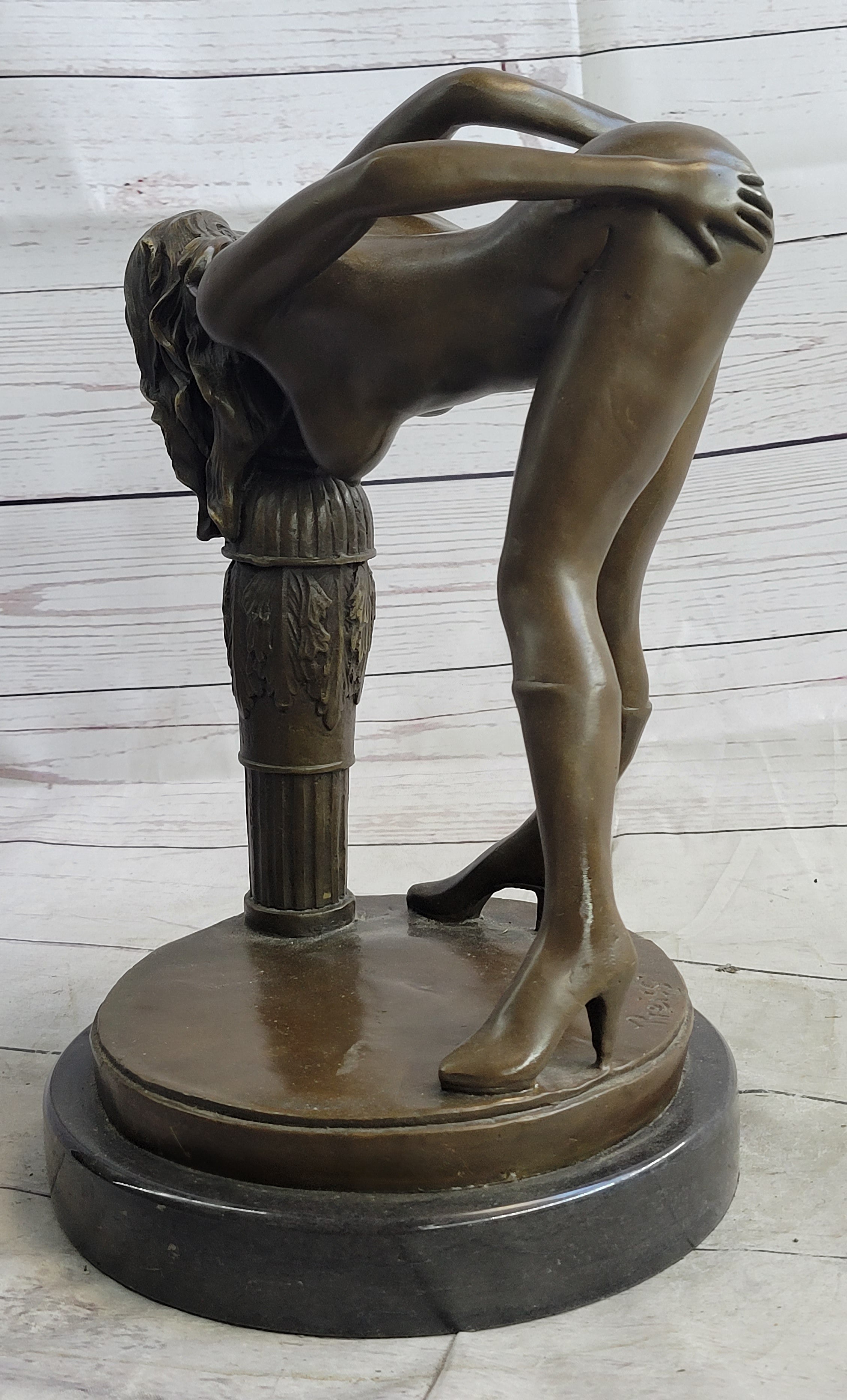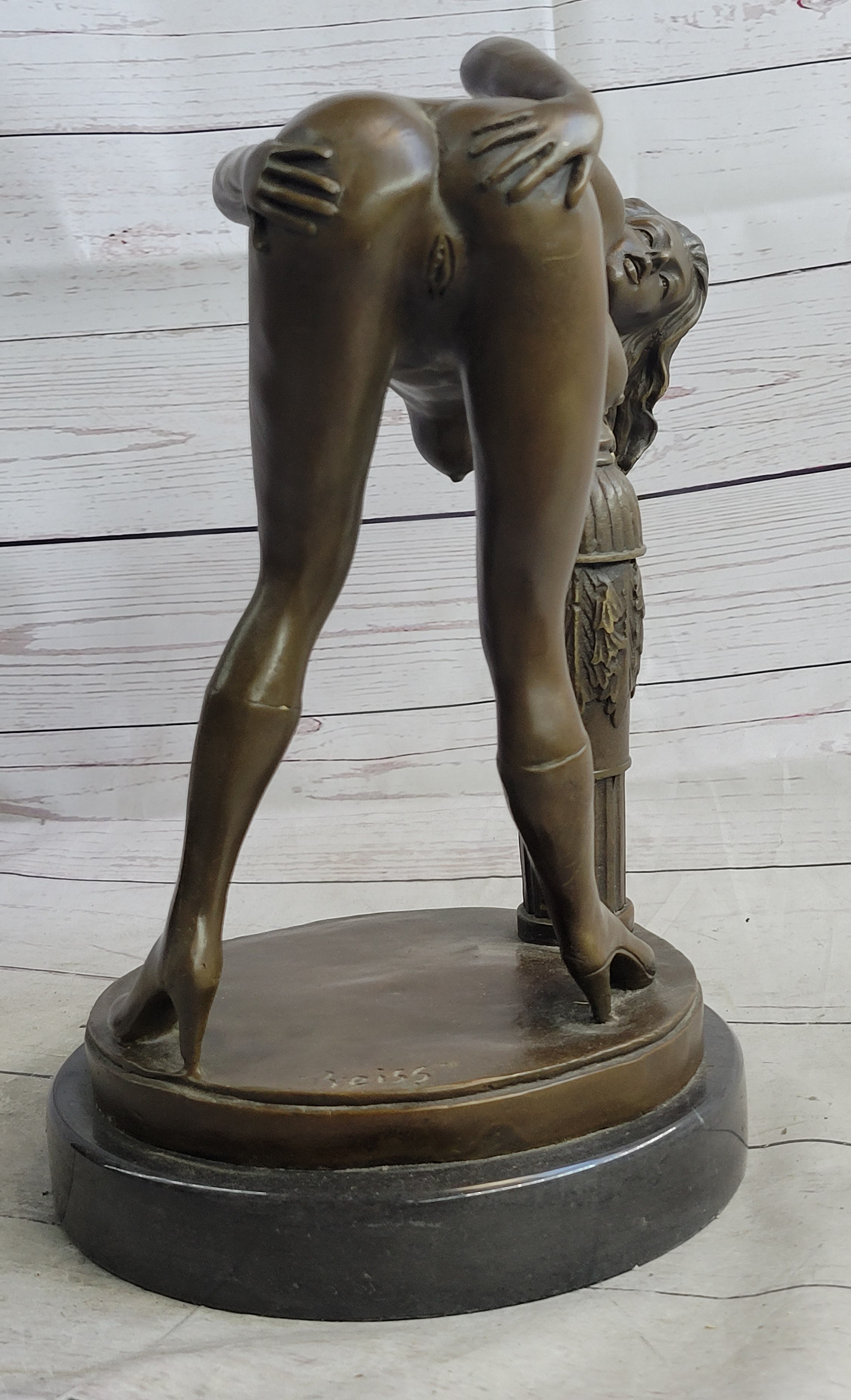 Erotic Nude Art Girl Bending Over Exposing Herself Bronze Sculpture Statue Figure
