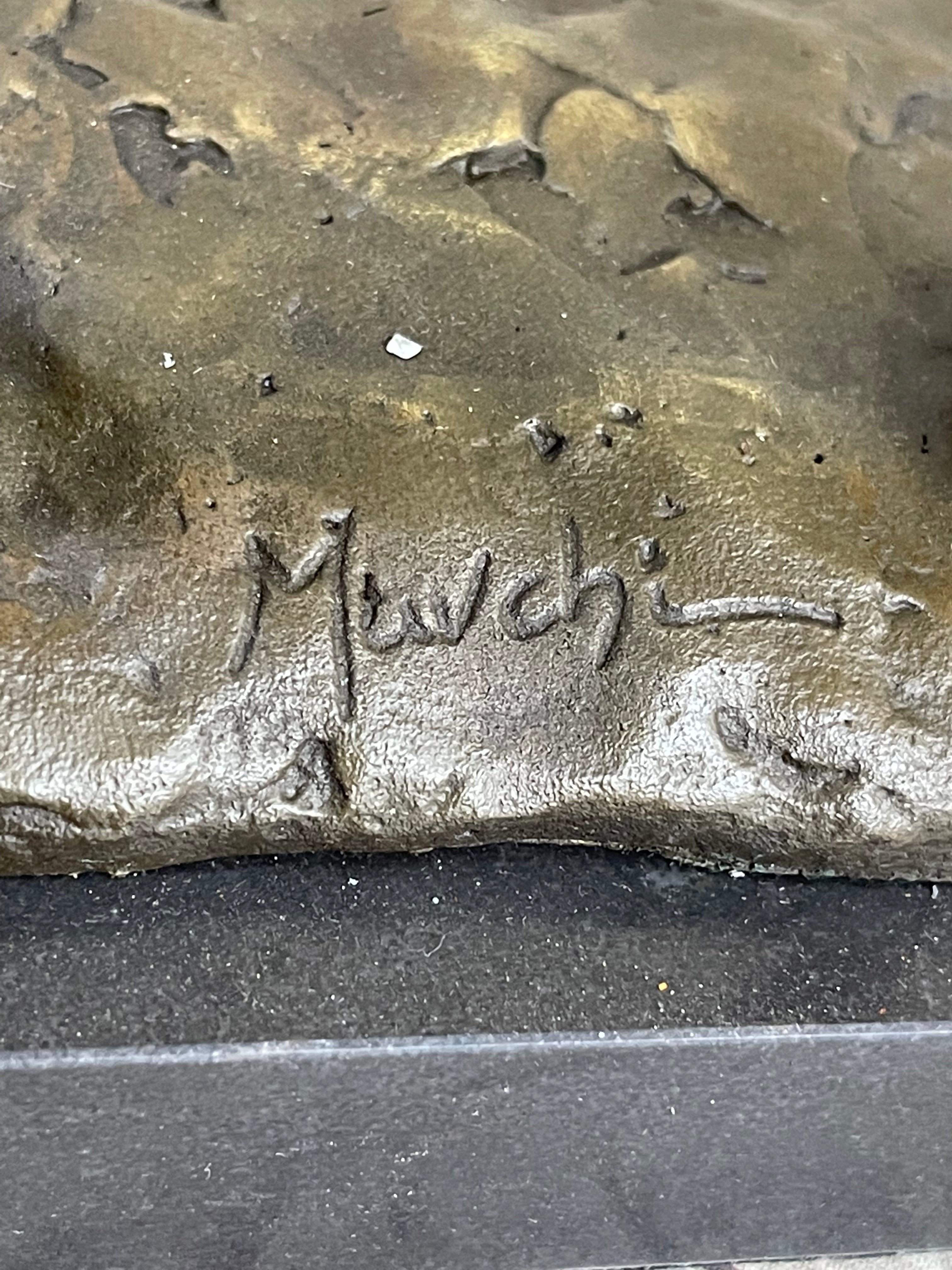 This confident stud is a work of art crafted using the "Lost Wax Method," ensuring meticulous detailing and a handmade touch. The sculpture is a priceless, unlimited edition piece that captures the essence of desire and self-expression. Signed by the talented artist Mavchi, this unique representation stands as a celebration of individuality and pride. Whether displayed for personal enjoyment or as a bold statement in an art collection, this sculpture makes a powerful and unforgettable statement.Bronze Dimensions with Marble Base: Height 12" X Width 7"