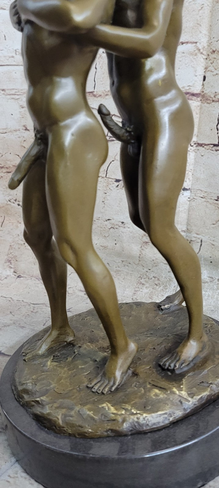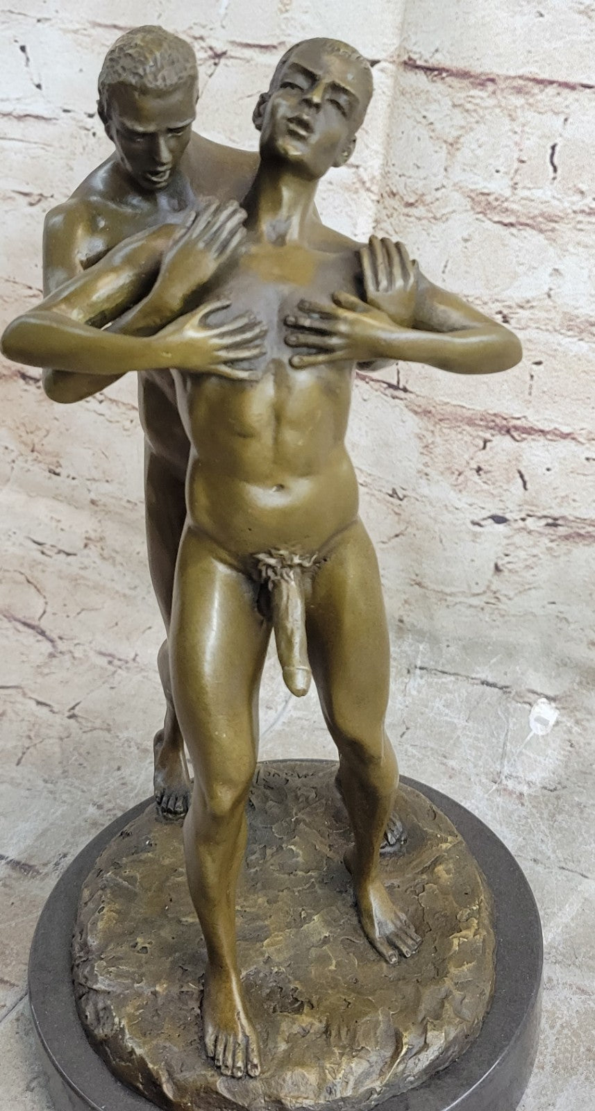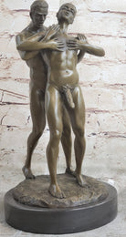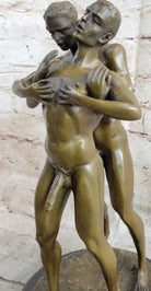 Signed Handcrafted Depict of Two Gay Men Bronze Sculpture Marble Base Figurine