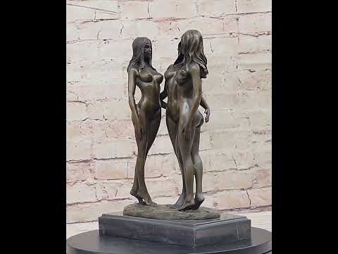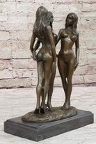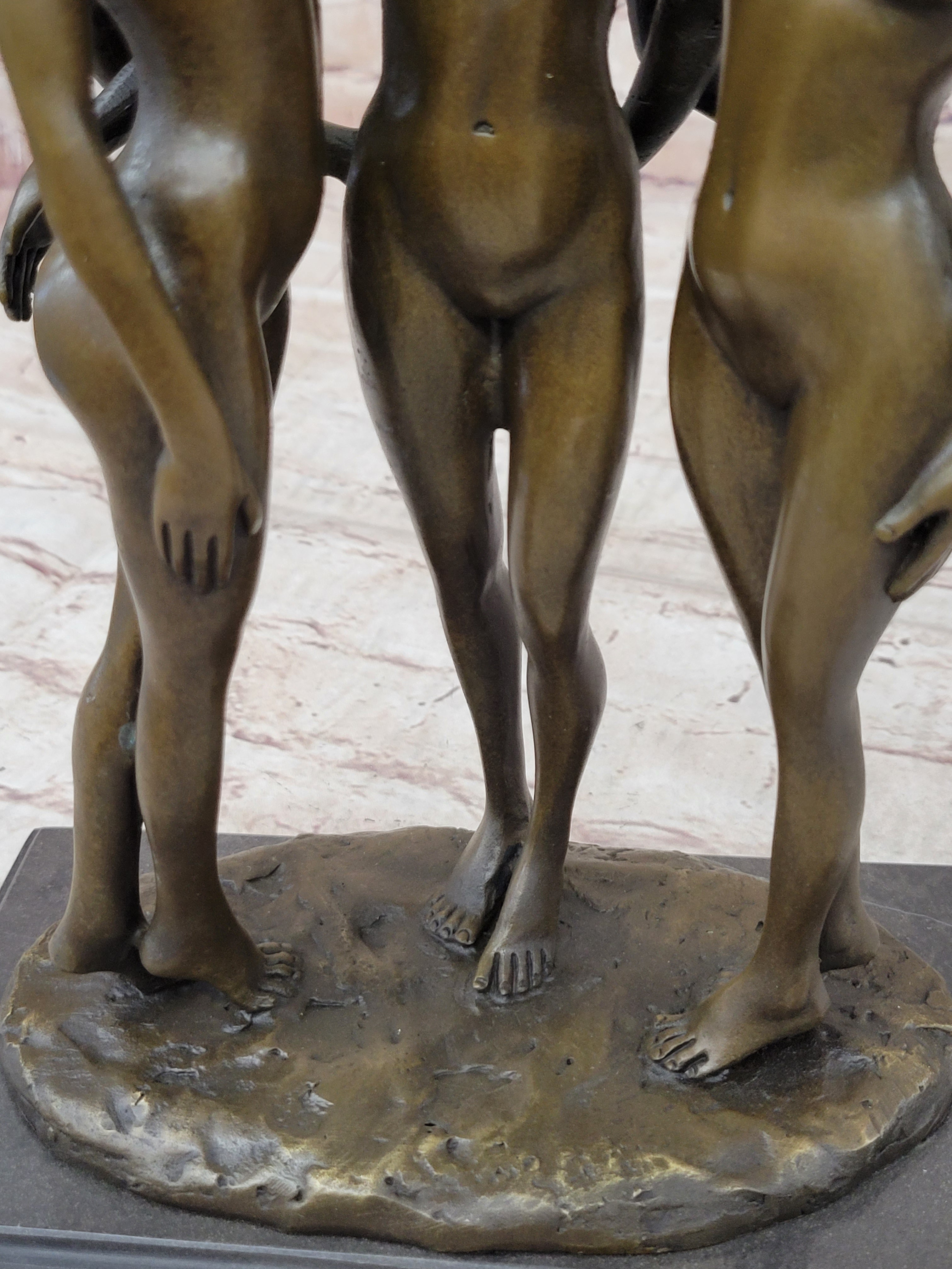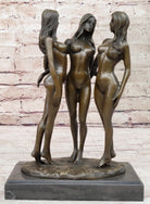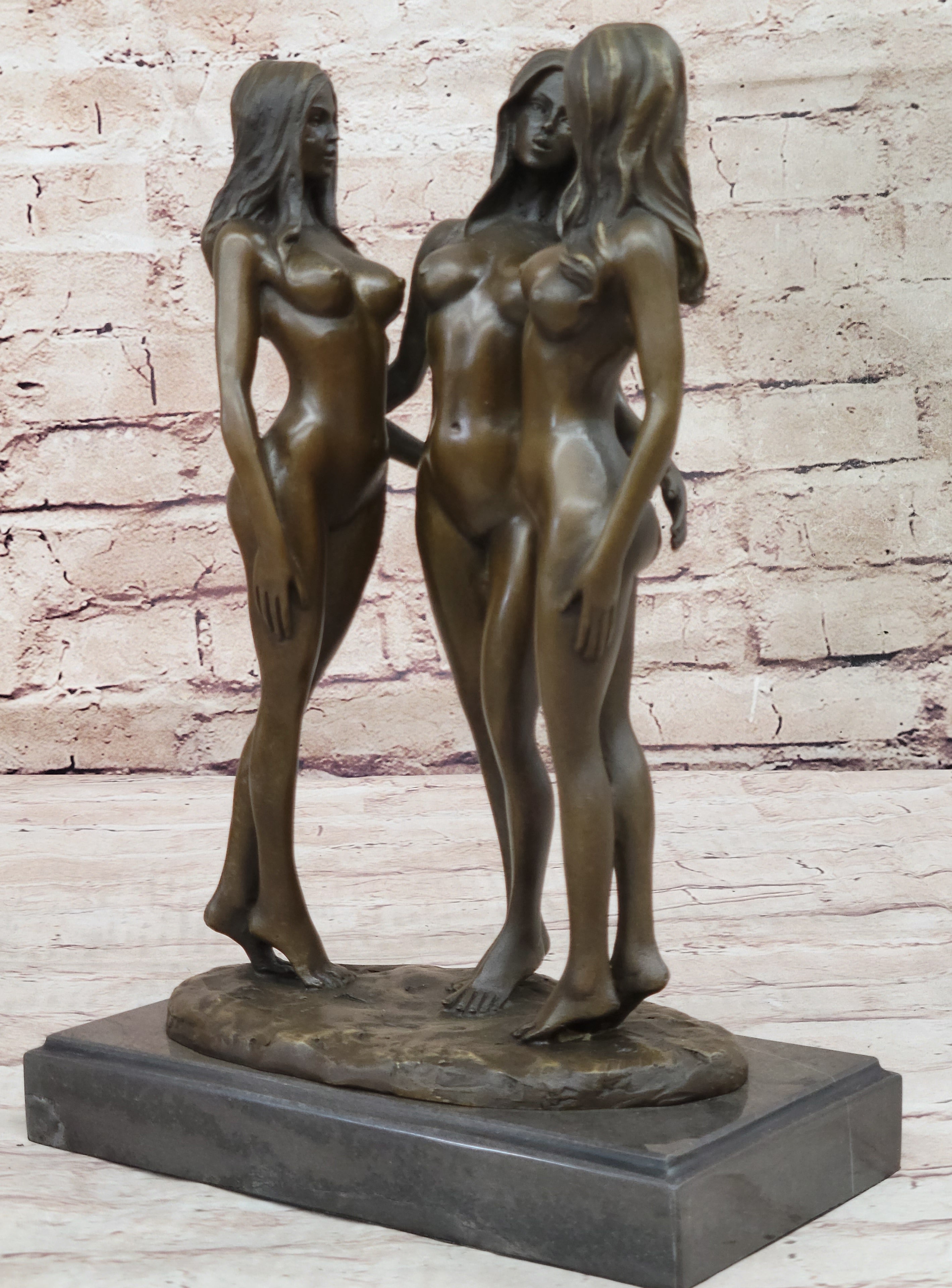 Three 3 Nude Girls Bronze Female Figures Sculpture Statue Modern Erotic Art 12" x 8"