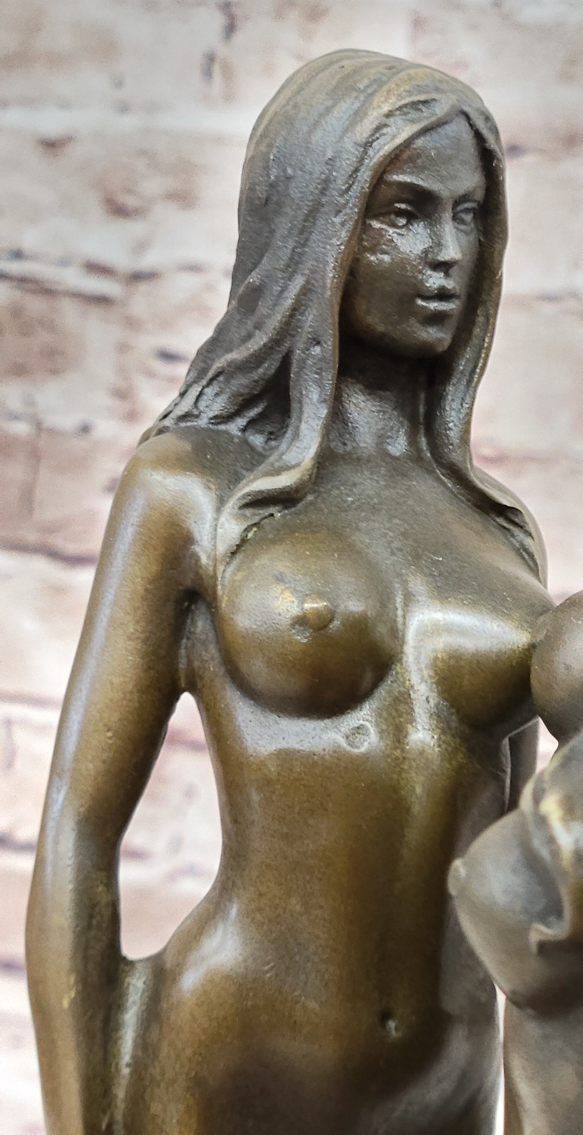With its timeless elegance and exquisite craftsmanship, this bronze sculpture celebrates the grace and beauty of the female form. Whether displayed as a standalone piece or incorporated into a larger art collection, it is sure to make a statement and evoke a sense of admiration. The attention to detail and the skillful execution of the lost wax casting method ensure that this artwork will stand the test of time. Enhance your space with the allure of this captivating bronze sculpture, a true reflection of the artist's vision and a tribute to the enduring allure of the female figure.Bronze Dimensions with Marble Base: Height 12" X Width 8"
