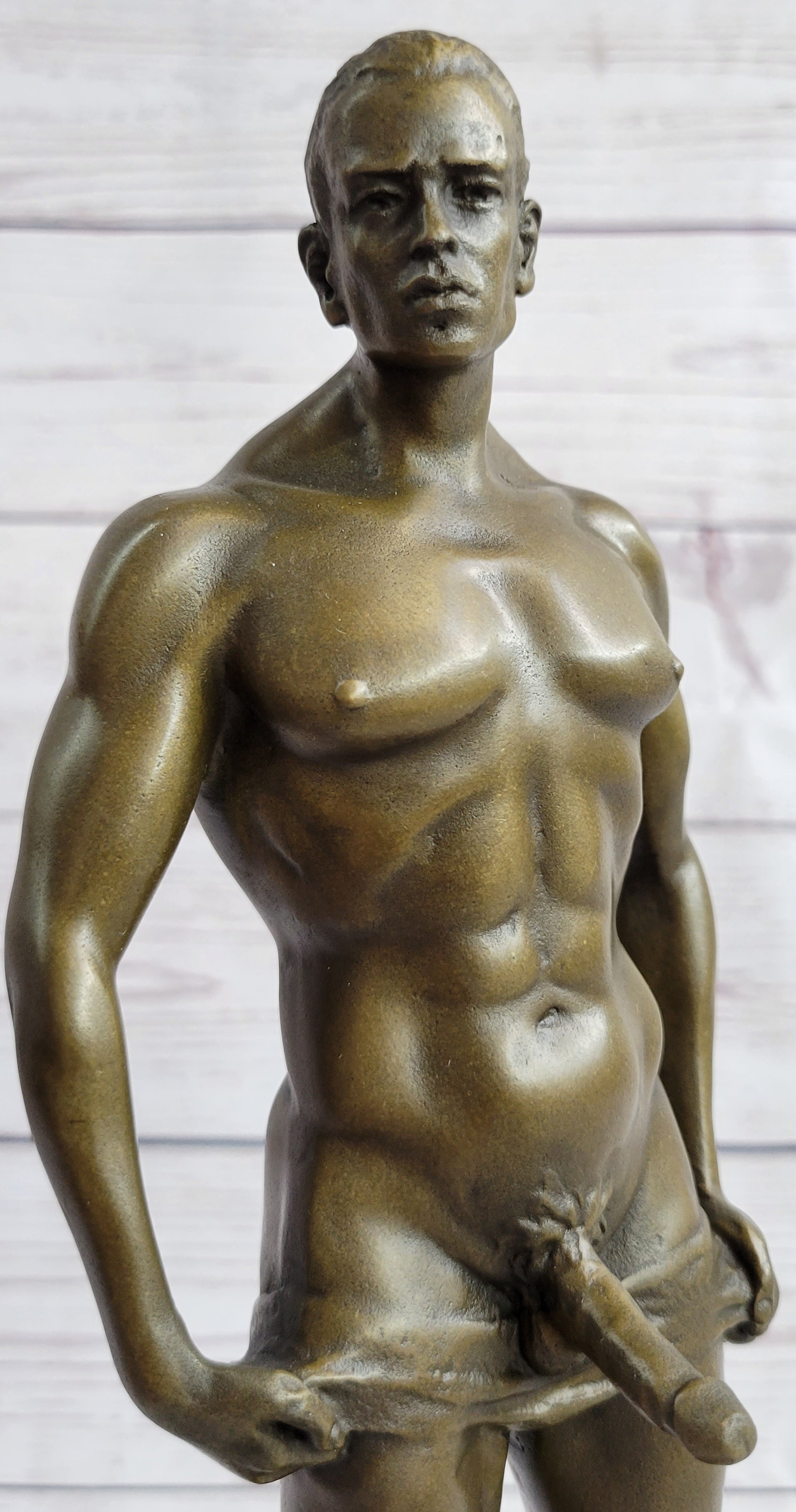 Well Endowed Muscular Nude Male Figure Gay Art Bronze Statue Sculpture Mavchi 13" x 6"