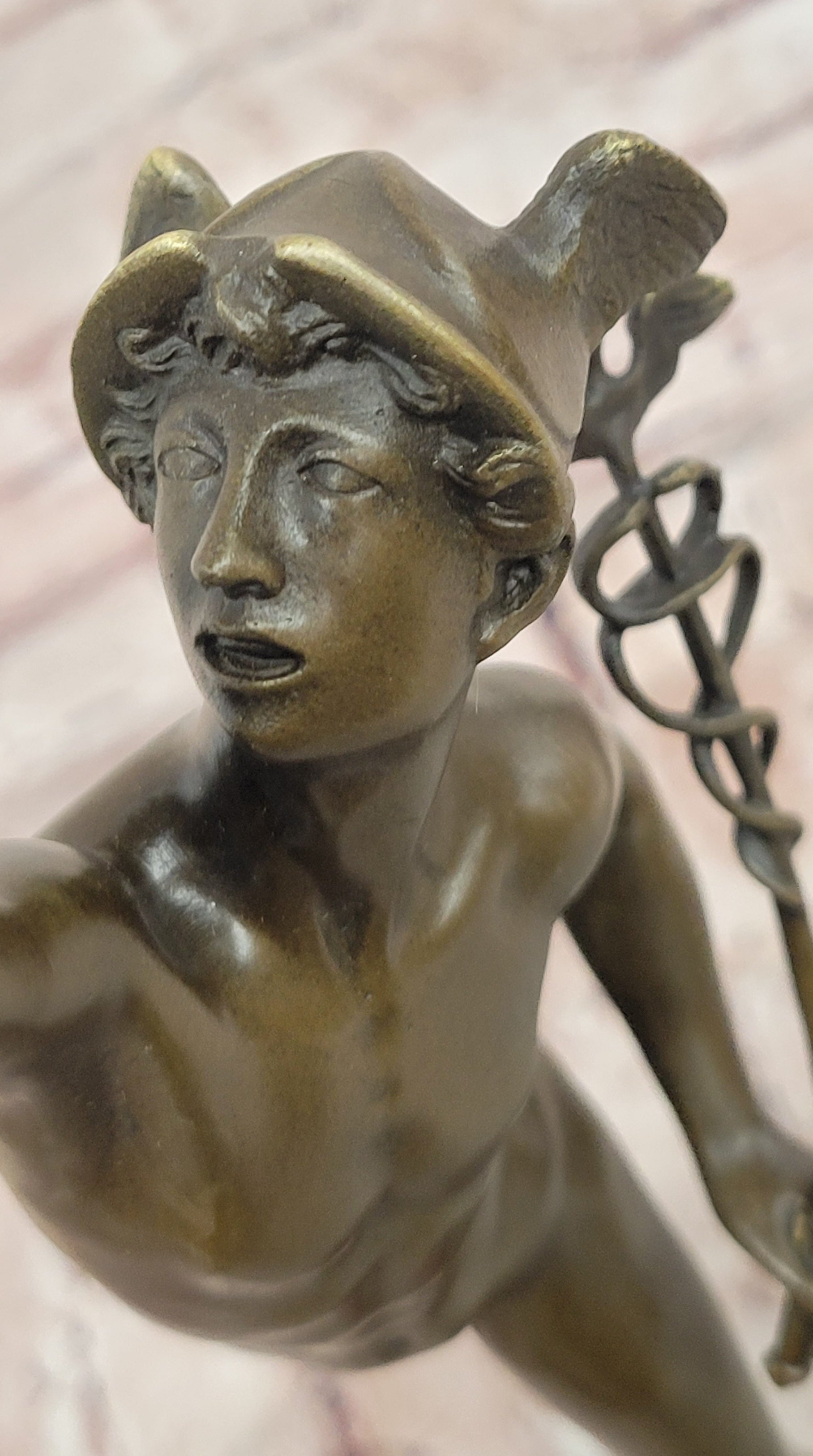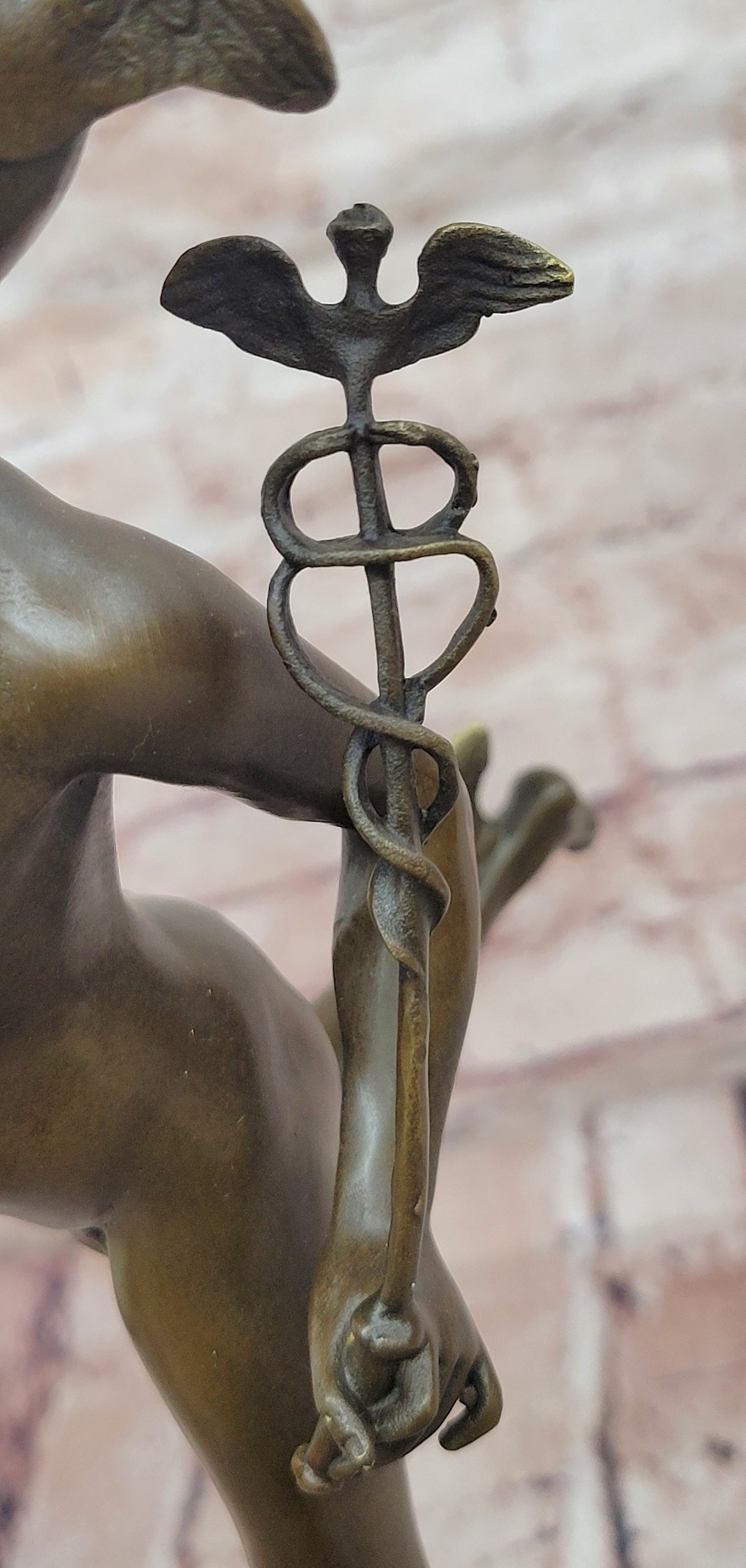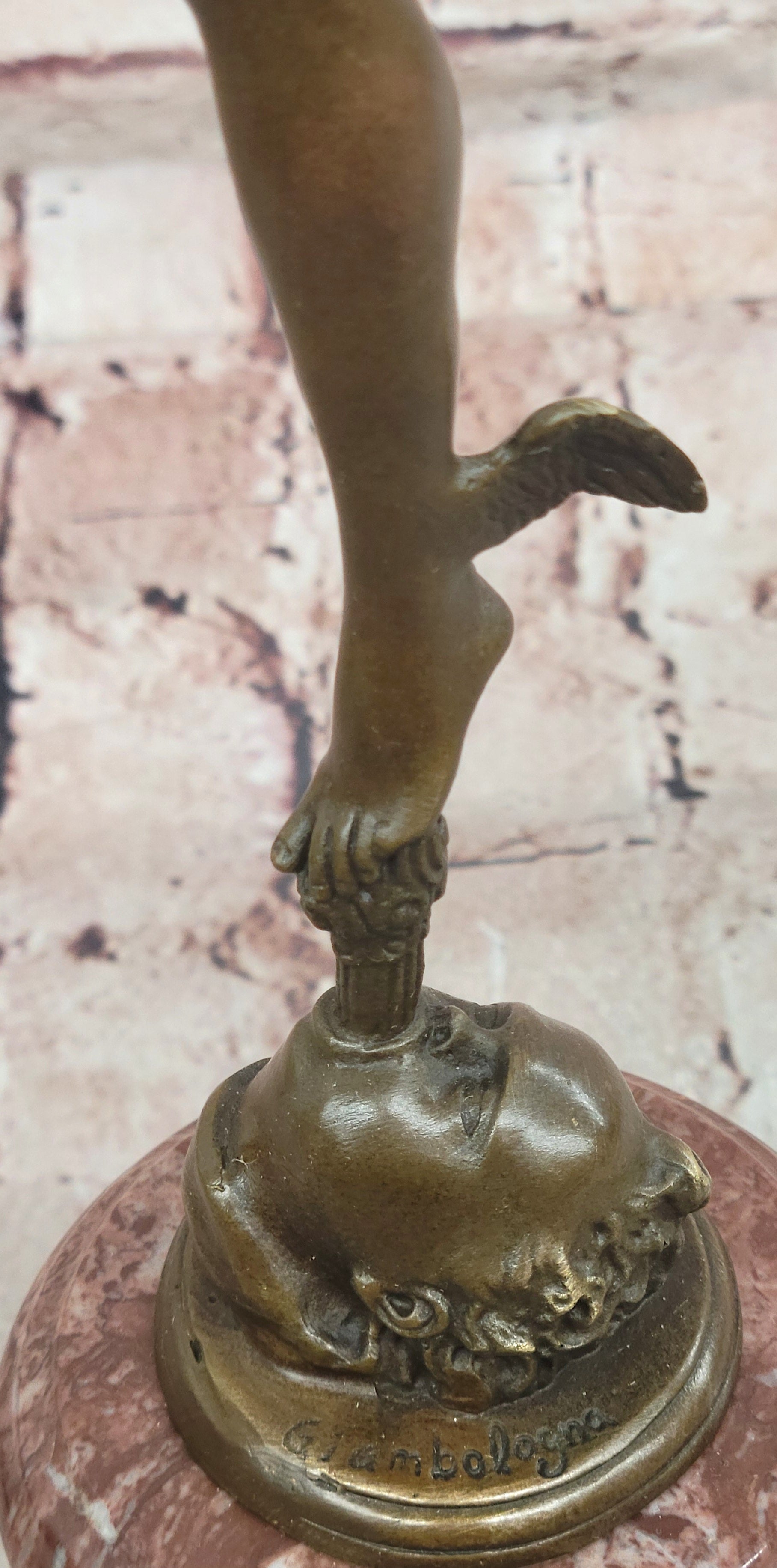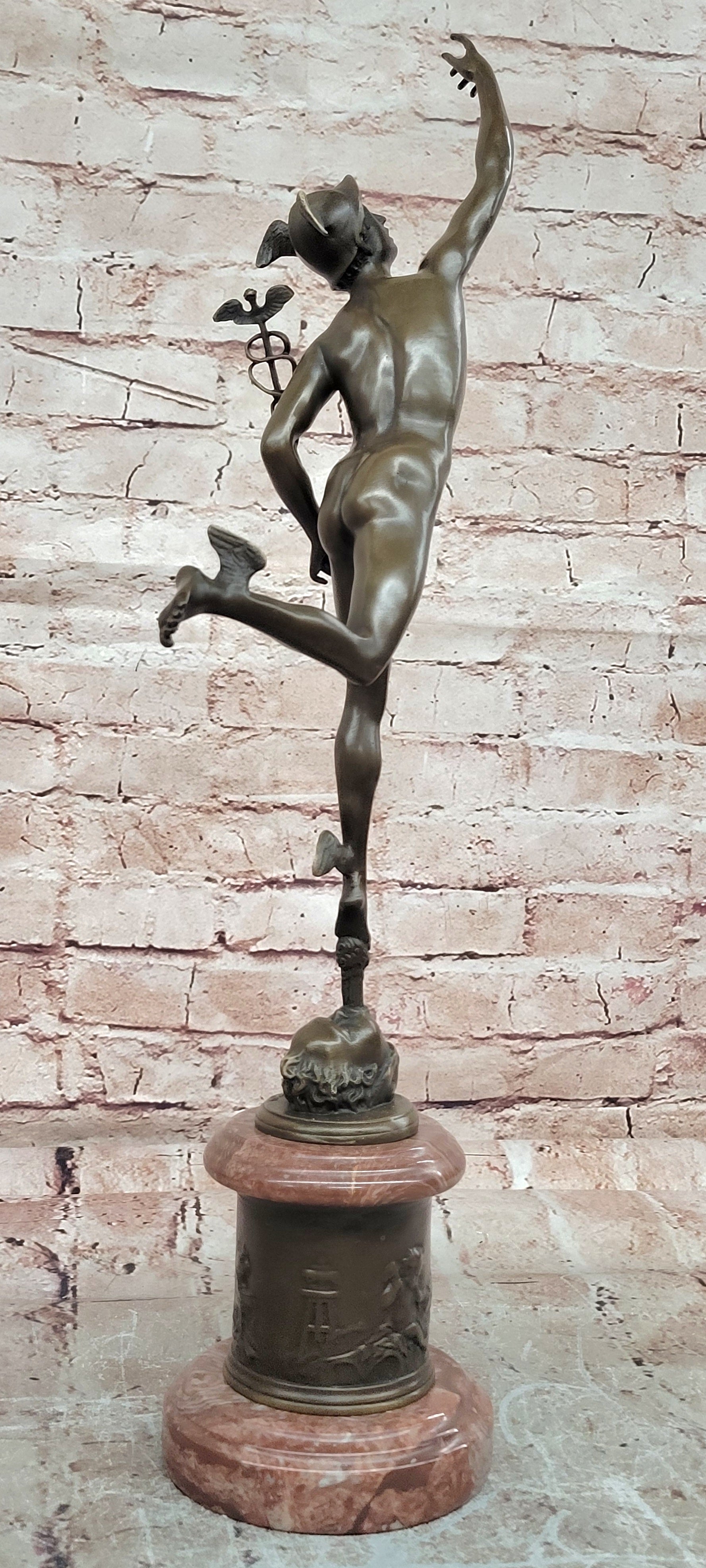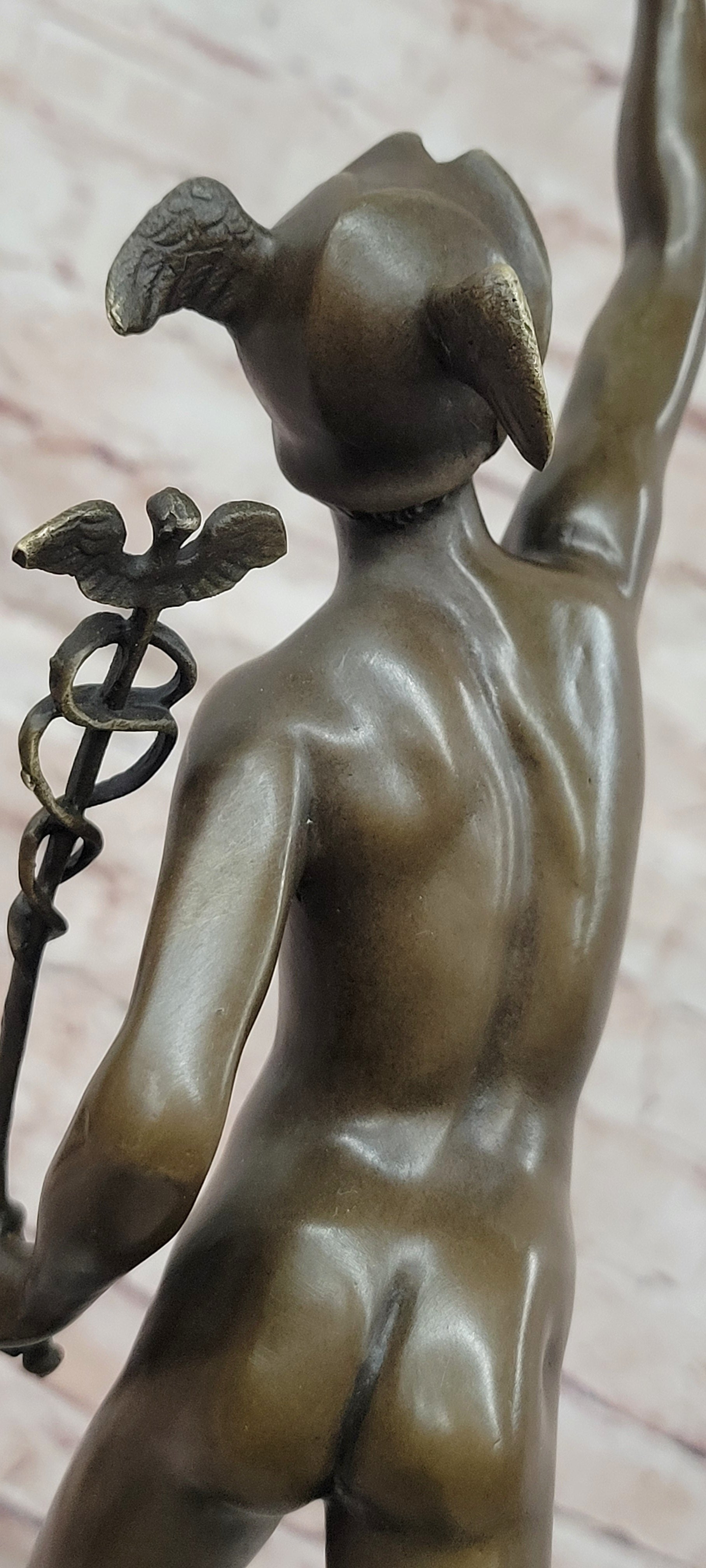 Giambologna Flying Mercury (Hermes) Bronze Sculpture with Caduceus on Marble Pedestal