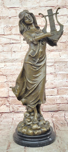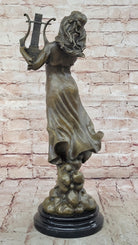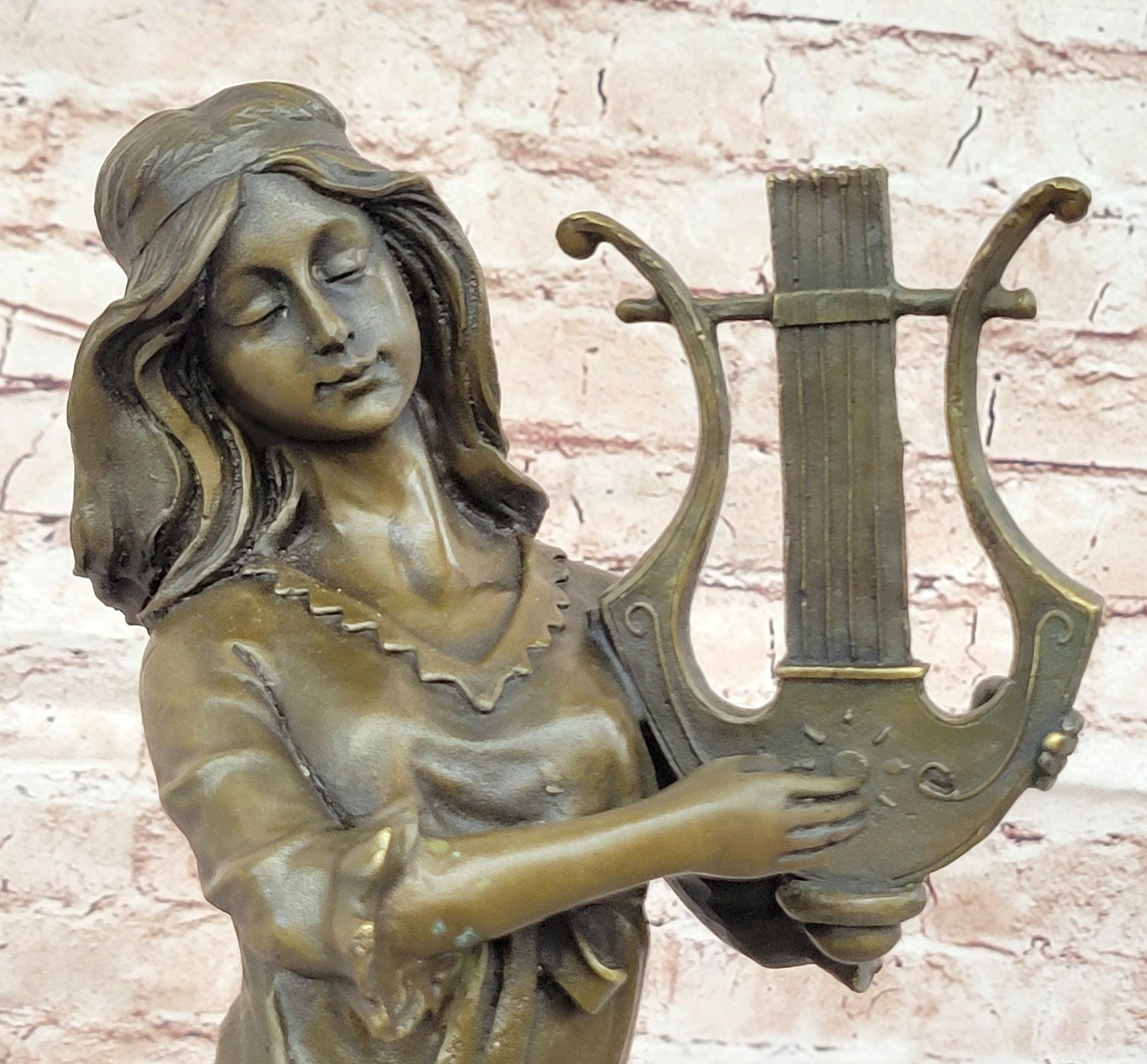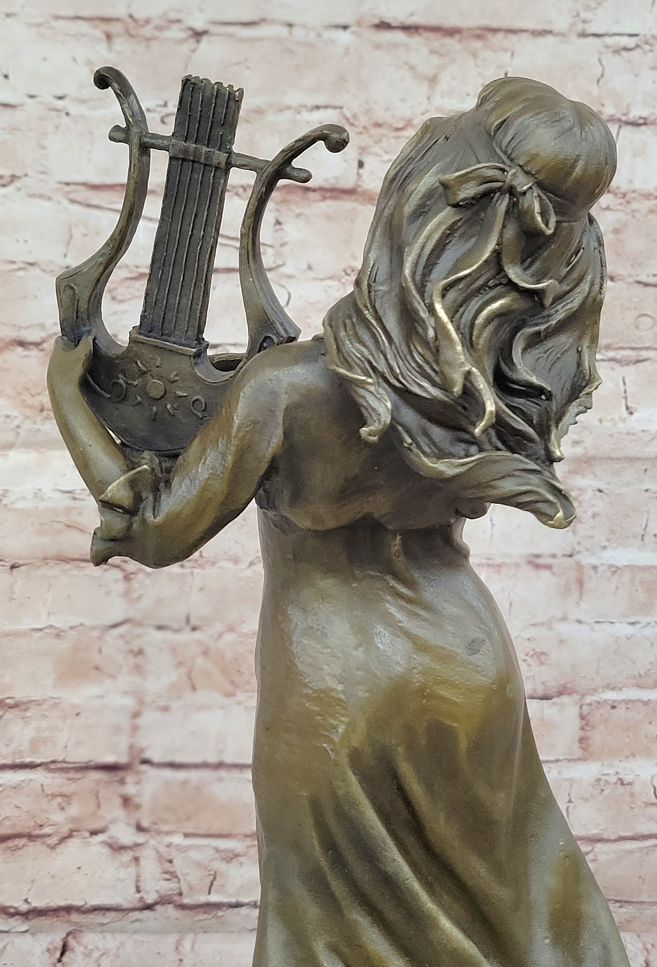 Harp Girl Figurine Bronze Statues Female Artwork Sculpture Home Decor by Vitaleh