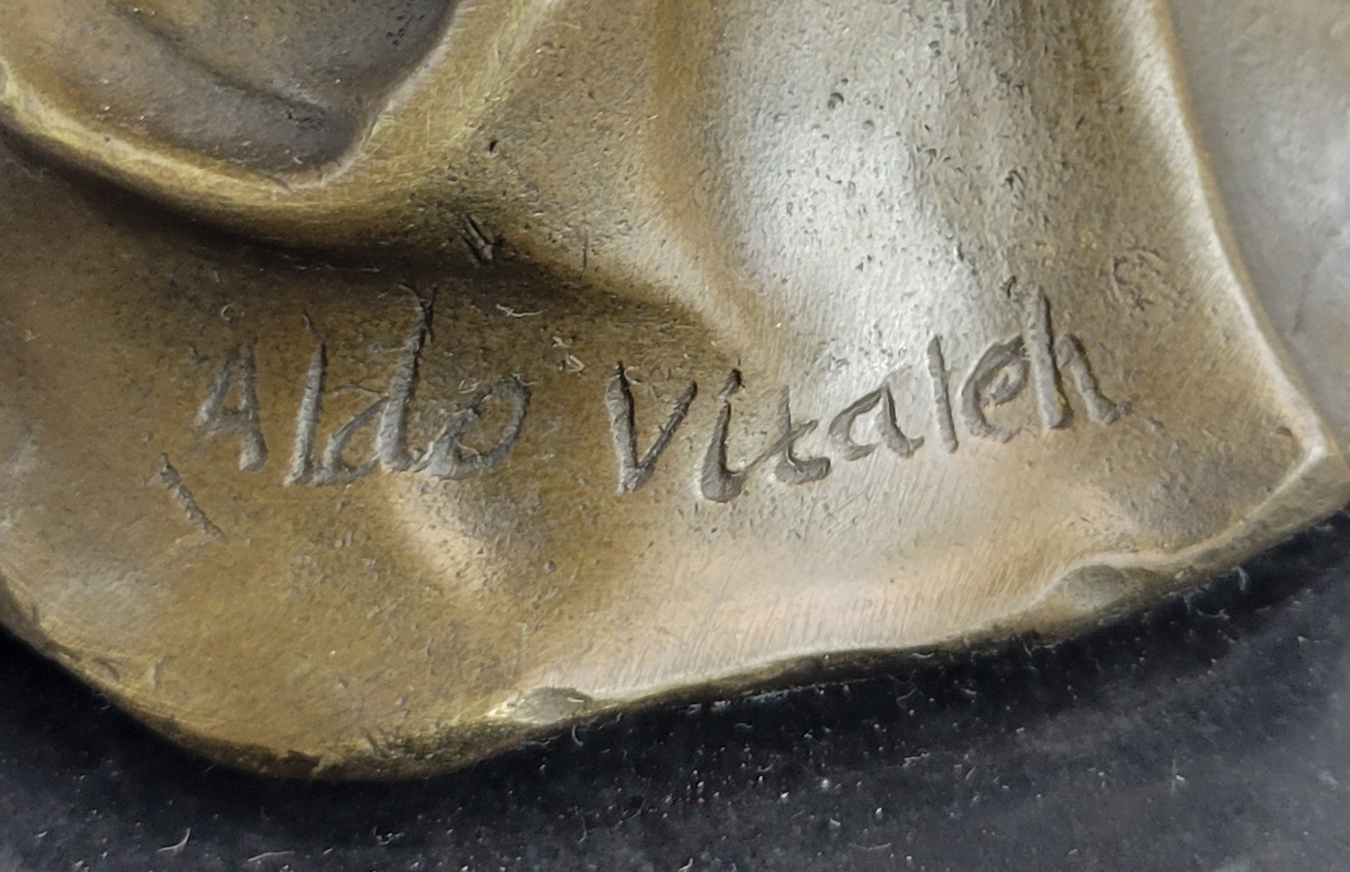This handcrafted masterpiece is not just a sculpture but a heartfelt representation of the miracle of birth. It stands as a poignant and thoughtful gift, particularly suitable for women expecting the precious gift of a child. Crafted with impeccable attention to detail through the intricate lost-wax method, every aspect of this sculpture resonates with the authenticity of the moment it portrays. It is elegantly mounted on a black marble base, enhancing its presentation, and bears the signature of the esteemed artist Aldo Vitaleh, reaffirming its status as a genuine work of art.