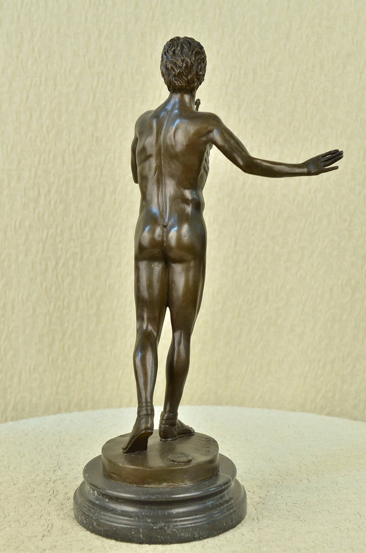 Signed Original Italian Aldo Vitalh Robust Nude Male Bronze Figurine Sculpture
