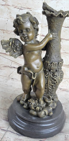 12'' AUGUSTE MOREAU CHERUB ANGEL BRONZE SCULPTURE STATUE DECORATION