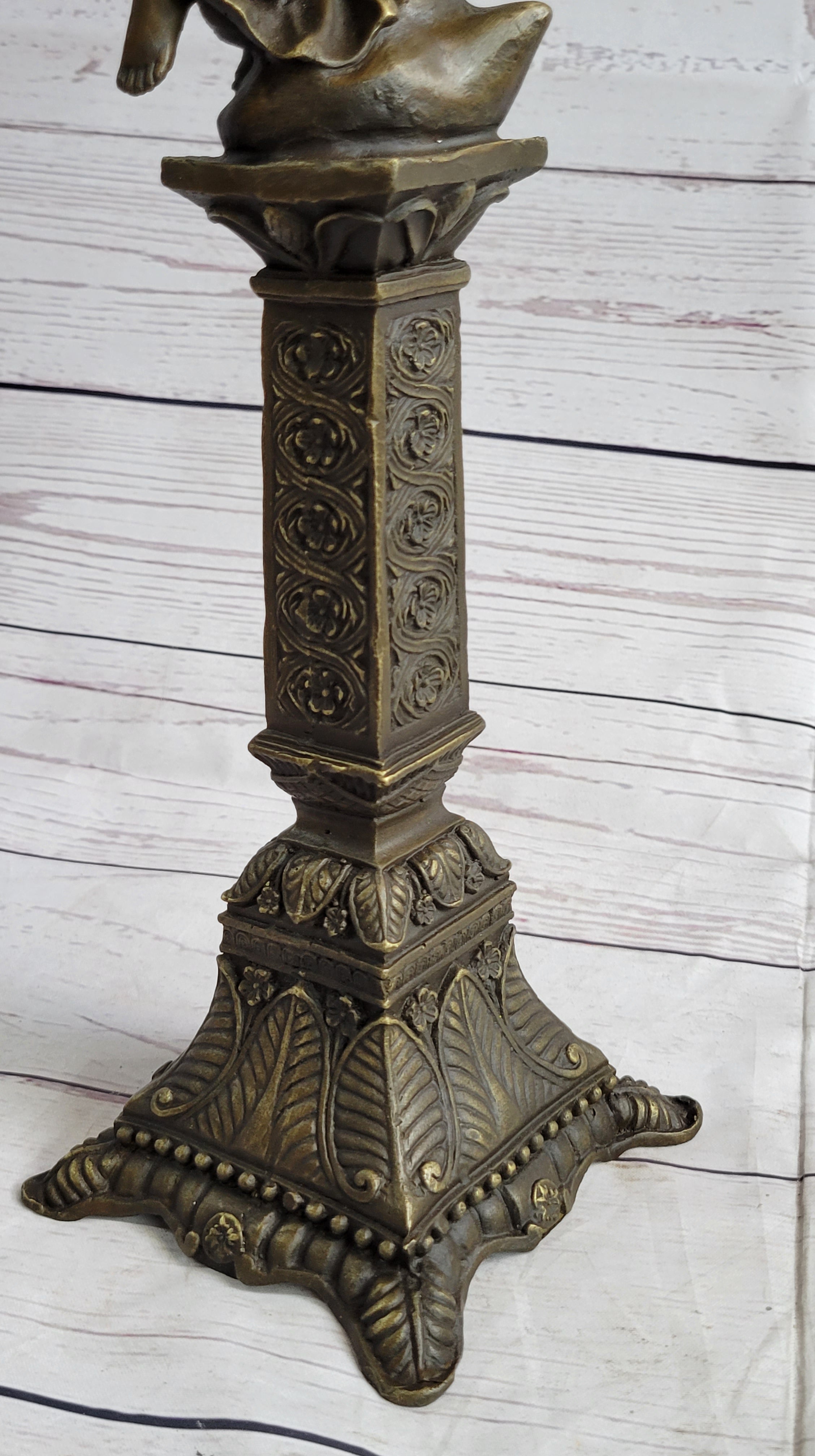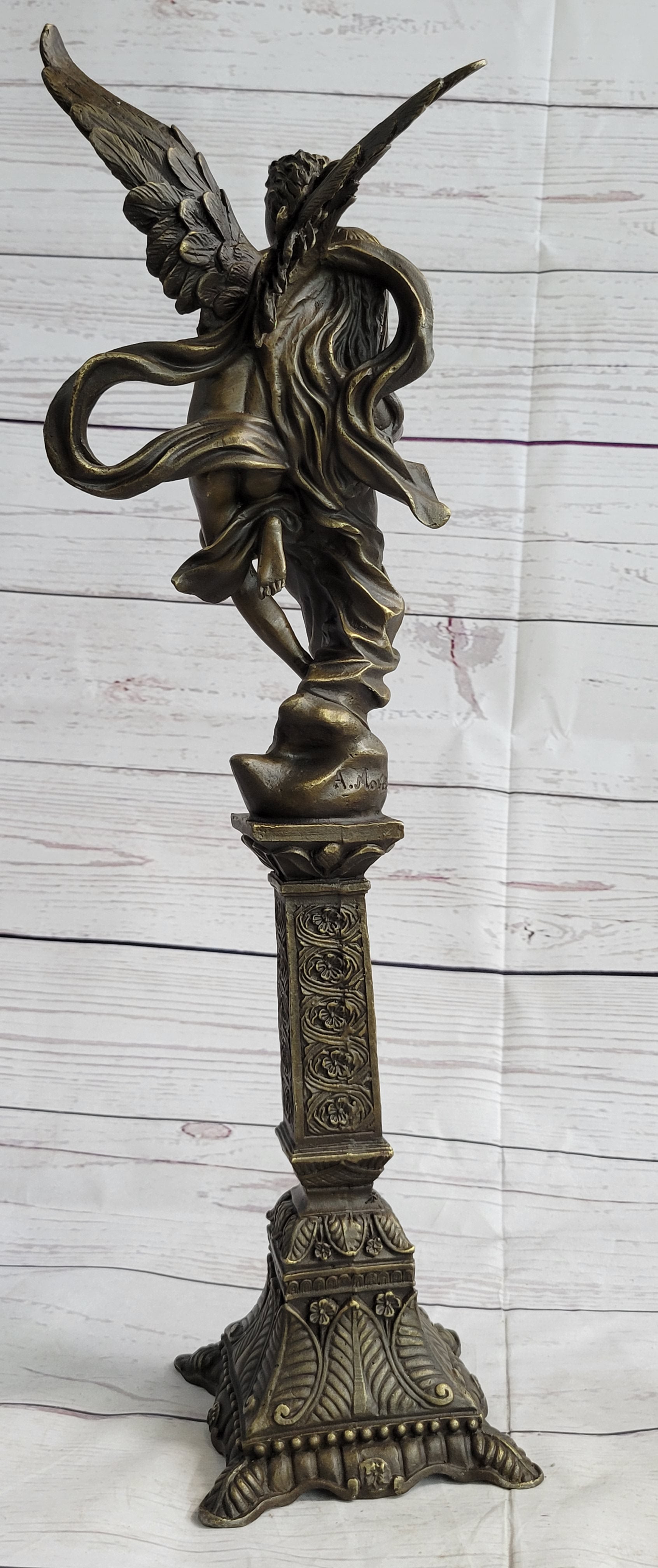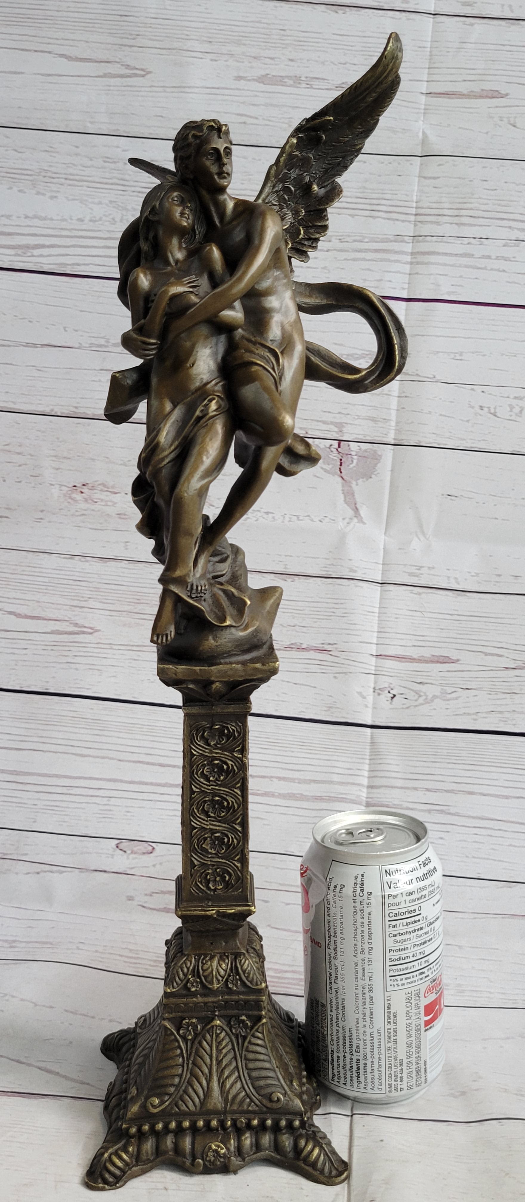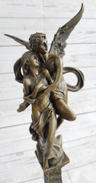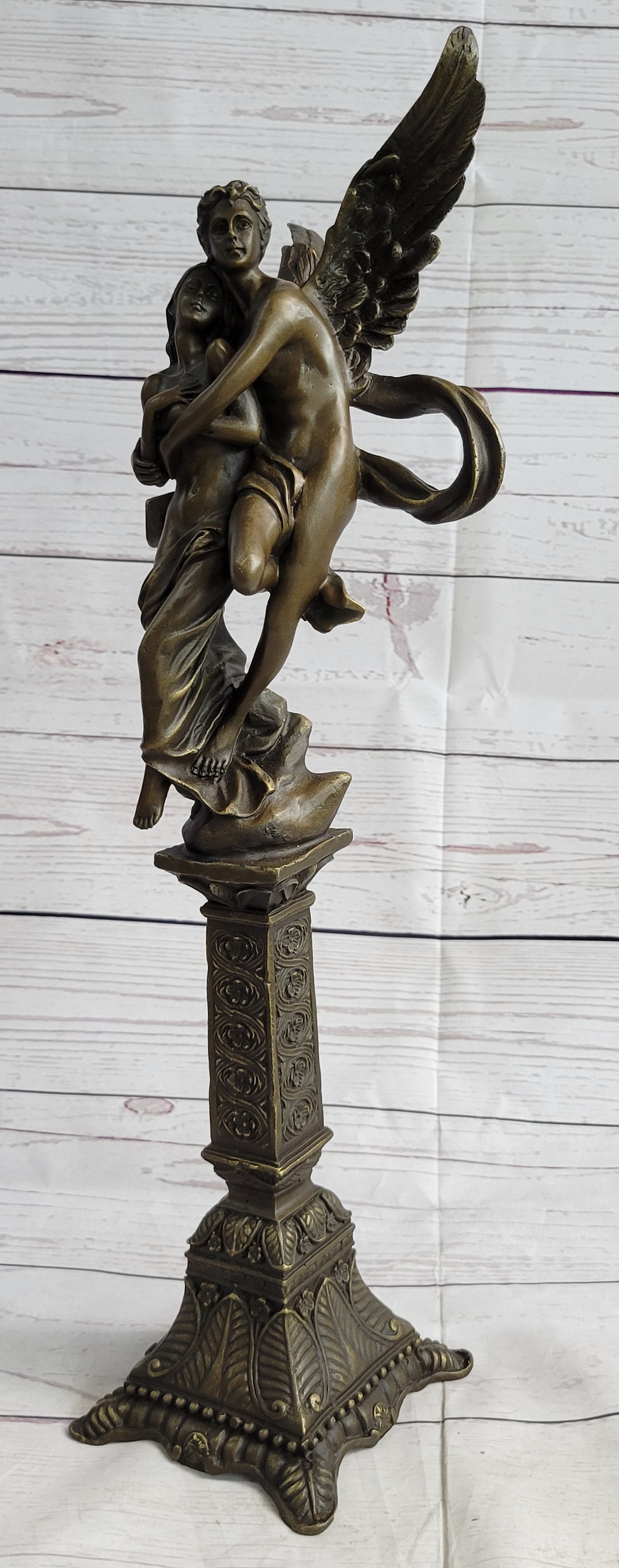 19'' Tall Nude Male Angel Carries Girl Mythical Deco Bronze Sculpture Art Nouveau