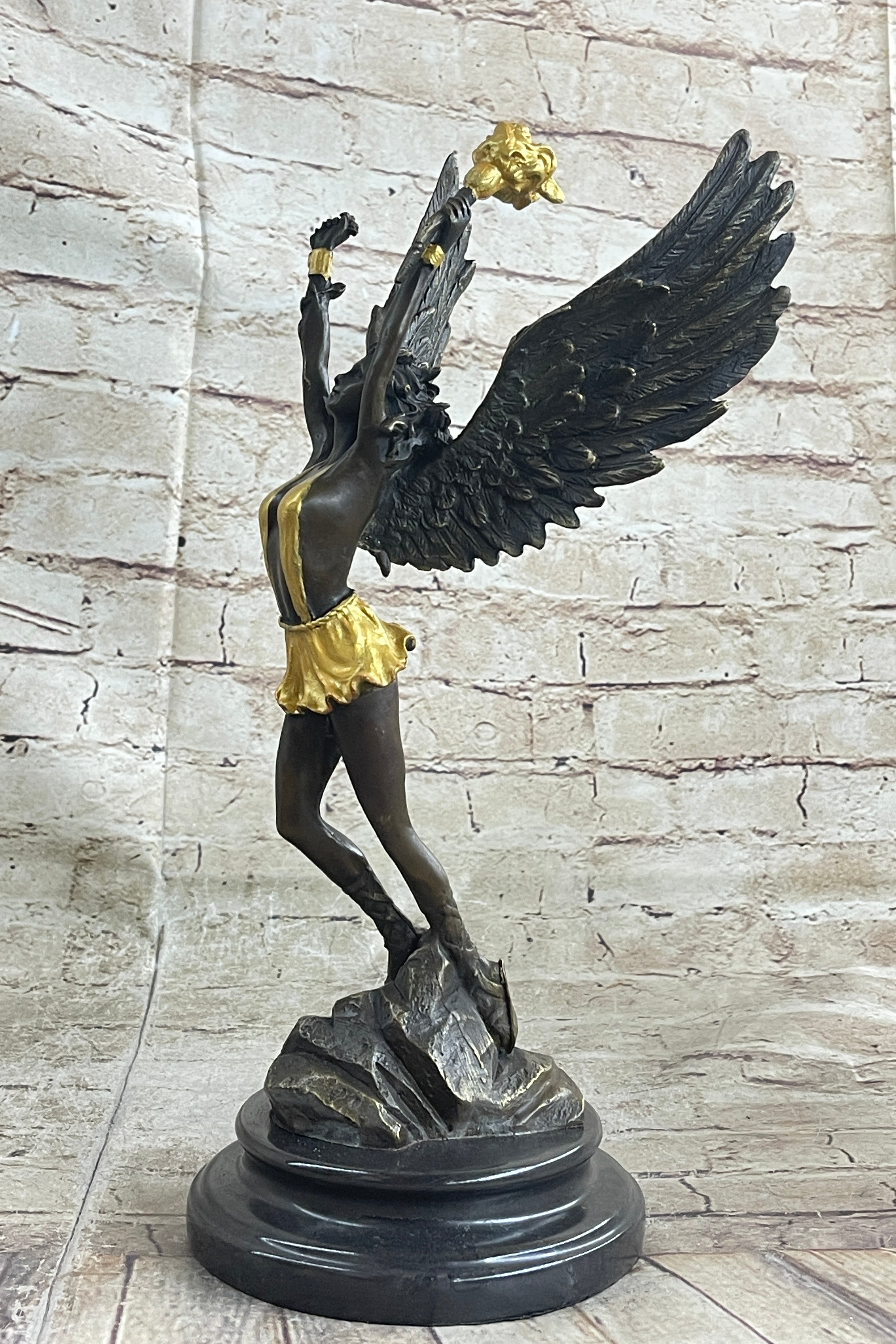 Angel Goddess Holding Victory Torch Hot Cast Bronze Sculpture Statue Art Deco by Moreau