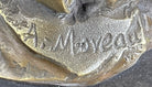 This awe-inspiring artwork bears the signature of the esteemed artist Moreau, underlining its quality and artistic value. Whether displayed in a place of worship, a spiritual sanctuary, or an art collector's home, this bronze sculpture of an angel serves as a powerful reminder of the eternal battle between light and darkness and the divine protection that watches over us. It's a profound and timeless addition that inspires faith and hope in the hearts of those who encounter it.Bronze Dimensions with Marble Base: Height 14" X Width 6.5"