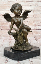 Elevate your space with the celestial presence of the cherubic angel sculpture, a striking embodiment of divine purity and grace that transcends earthly boundaries and beckons the soul to contemplate the infinite mysteries of the celestial realm. Bearing the distinctive signature of the esteemed artist Moreau, this sculpture stands as a testament to the artist's profound ability to capture the essence of spiritual contemplation and celestial beauty, inviting viewers to immerse themselves in a world of enchantment and transcendent wonder. Experience the celestial serenity and timeless allure of this angelic masterpiece, an exquisite addition to any art collection or sacred space, radiating an aura of peace and spiritual enlightenment.Bronze Dimensions with Marble Base: Height 13" X Width 8"