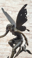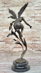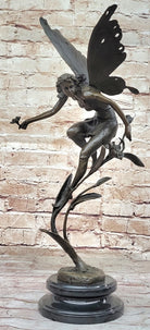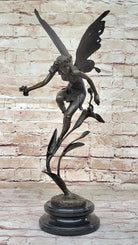 Bronze Fairy Angel Flowers Statue Sculpture Collectible Signed Original 19.5" x 7.5"