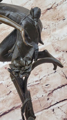 As you gaze upon this otherworldly creation, the artist Cesaro's signature adds a personal touch, affirming the authenticity of this divine masterpiece. Whether displayed as a focal point in your living space or a cherished addition to your art collection, this fairy sculpture transcends the ordinary, inviting you to witness the intersection of the celestial and earthly realms, where beauty and mythology converge.Bronze Dimensions with Marble Base: Height 19.5" X Width 7.5"